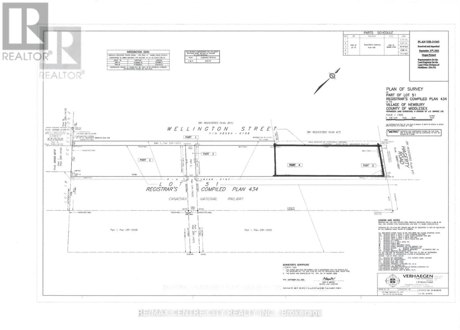 Cross Streets: Wellington Street. ** Directions: Located on the corner of Hagerty Road and Wellington Street. Located in the Village of Newbury at the corner of Hagerty Road and Wellington Street, approximately one acre of development land zoned Commercial-C1. Seller has a proposed retail development of two buildings of 6,261 square feet. Municipal services town water and sanitary sewers have been installed. Property is exempt from development charges. Amenities include Four Counties Middlesex Hospital and the area's largest Home Hardware. The rear portion of the lot, municipally known as 2 Wellington Street, approximately 1.8 acres has been severed and is zoned R1-Residential. See MLS #X12341788 for details. Property taxes are for both properties. Plan of survey, proposed site plan and a list of permitted uses available upon request. (id:27476)