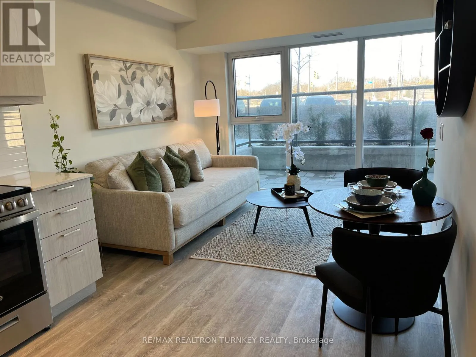 Cross Streets: Yonge St & Davis Dr. ** Directions: Yonge St & Davis Drive. Welcome to The Davis Condos, where Luxury meets Convenience in this Stunning Main Floor Corner Unit. This Rare Opportunity features 2 spacious Bedrooms, each with Double Wall Closets & Floor-to-Ceiling Windows that fill the Space with Natural Light and freshly painted in Aug 2025! The bright Living Room boasts 9' Ceilings and an Upgraded TV package, complete with raised TV conduit and HDMI connections. And a major BONUS - it Opens Directly to your Private, Walk-Out, Ground-level Terrace - Perfect for Outdoor Enjoyment. Immediate Secondary Access to the Outdoors - NO Elevator needed here! The Modern Kitchen is Designed for both Style and Functionality, featuring Quartz Countertops, Chic Subway Tile Backsplash and Upgraded Under-Cabinet Lighting. You'll enjoy Stainless Steel Appliances, including: Fridge, Range Oven, Microwave Hood Vent, and Dishwasher. The Open-Concept Layout Seamlessly connects the Kitchen, Living & Dining areas, creating an Inviting Atmosphere for Family & Entertaining.The Primary Bedroom includes a Luxurious 3-piece Ensuite with a Sleek Walk-in Glass Shower. The Second Bathroom is 4-Piece & Features a Tub-&-Shower Combo for Relaxing Baths. Convenience is Key with In-suite Laundry tucked neatly away near the Entrance. Tenant will also have 1 underground parking spot with the lease. This energy-efficient condo, built with a LEED rating, is ideally located near Yonge Street, the GO station, and Public Transit, providing Easy Access to Upper Canada Mall, Medical Facilities, and the Charming Local Shops of Davis Drive. Building Amenities include beautifully Landscaped Grounds, a 5th-Floor Rooftop Terrace, Guest Suites, a Party Room, Visitor Parking, Gym / Exercise Room, Pet Wash Station, and a Children's Outdoor Play Area. Enjoy a Lifestyle of Comfort & Convenience at The Davis Condos! (id:27476)