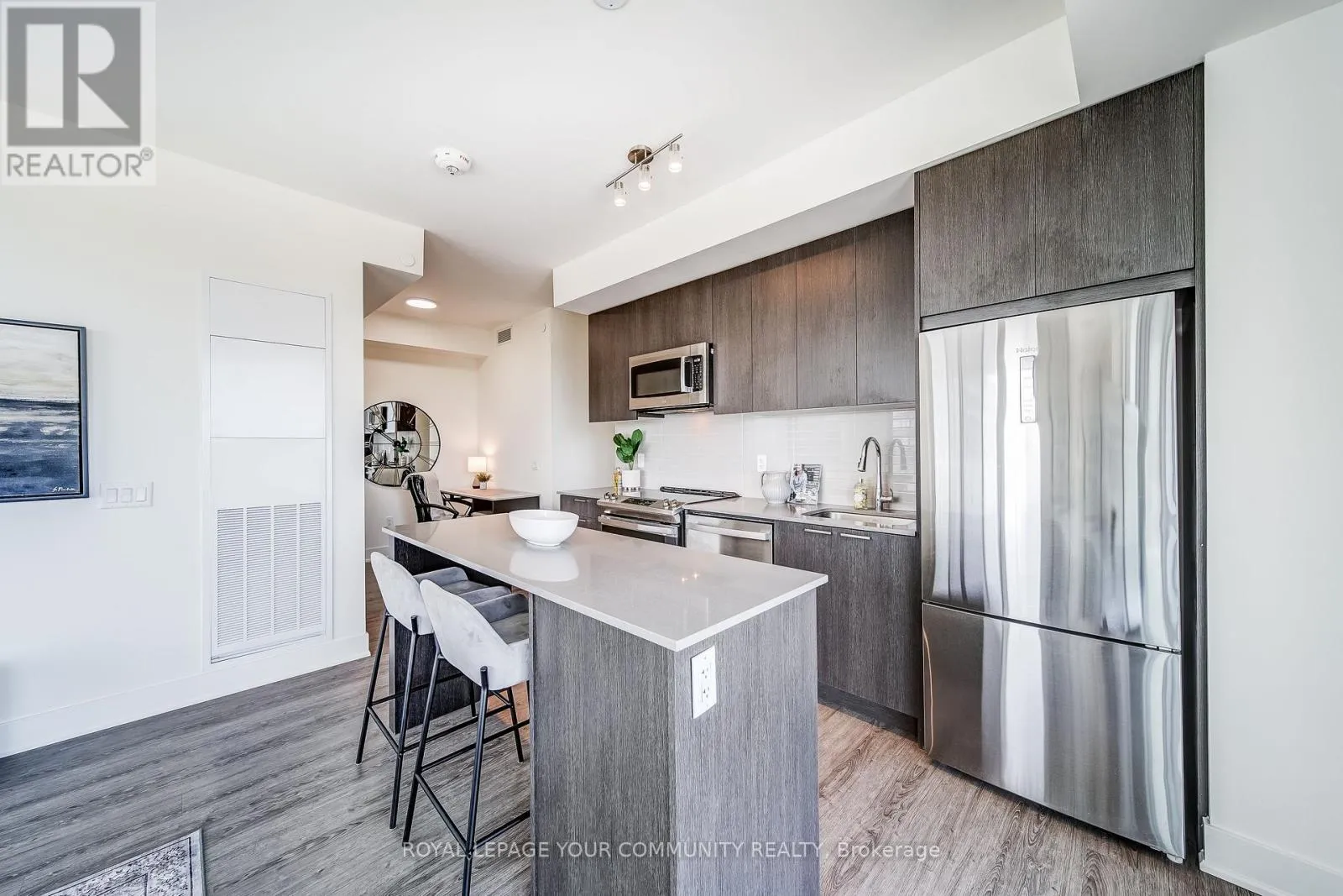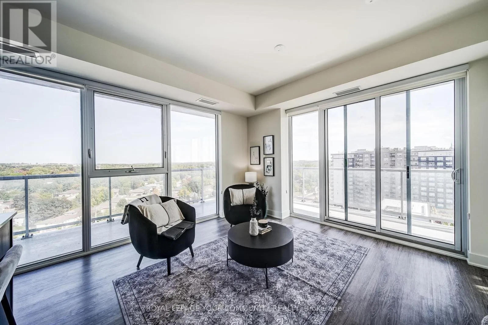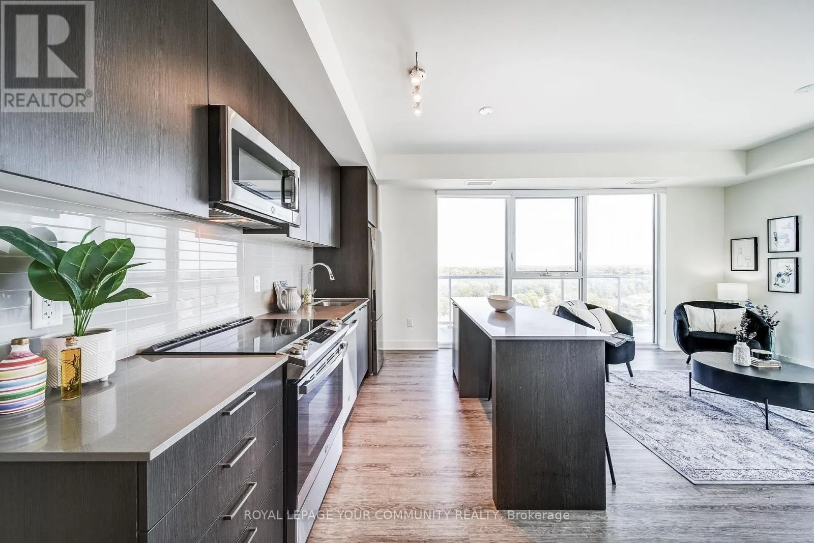 Yonge/Davis Welcome to The Davis Condos! This corner suite with NO side by side neighbours, is the ideal condo layout, with 2 bedrooms, a full size spacious den and 2 full bathrooms. The den adds extra flexibility, ideal as an office, guest room, or even additional storage space. This unit features 9 foot ceilings, over 850 square feet, and a 300+ SF wrap around balcony with clearviews - an exceptional outdoor space for relaxing or entertaining. This modern unit is perfect for those seeking both comfort and style. The open-concept living area features sleek finishes,laminate flooring, a contemporary kitchen with a built in island, stainless steel *FULL SIZE*appliances, and floor to ceiling windows for plenty of natural light throughout. Complete with all the modern amenities, including maintenance fees that cover high-speed internet, making it easy to stay connected and work from home. The building itself offers a wide range of luxurious amenities, such as a fully-equipped fitness centre, party room, a rooftop terrace, a pet spa,games room, and a 24/7 concierge service. Located just minutes from historic Main Street Newmarket and Upper Canada Mall, you'll have access to premier shopping, dining, and entertainment options, all while being close to major highways and public transit with the VIVA right at your doorstep. (id:27476)