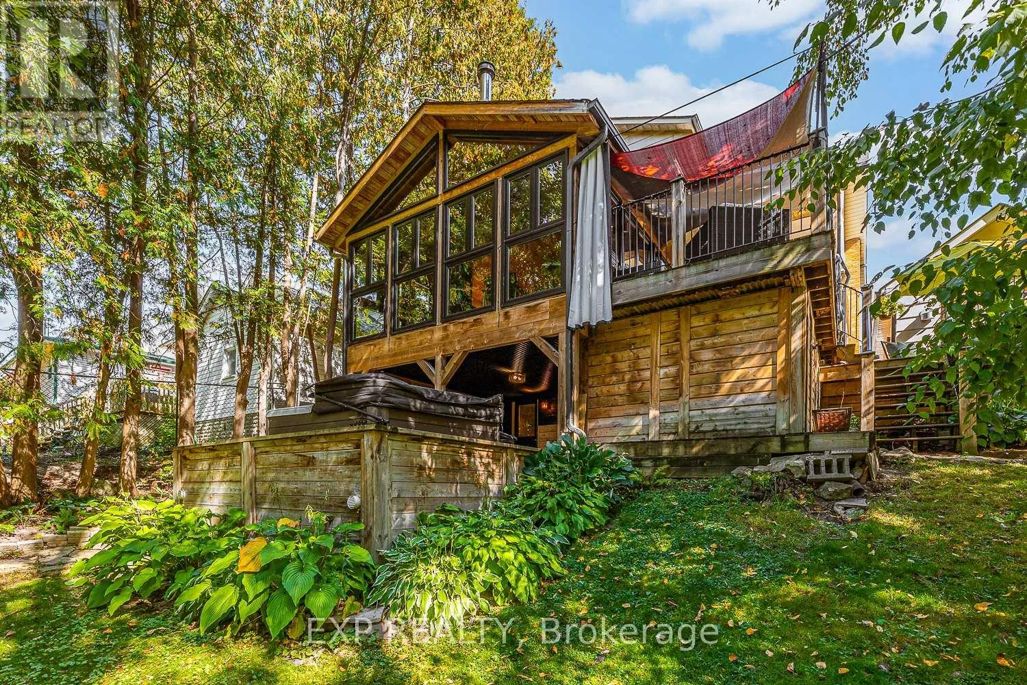 Cross Streets: Eagle and Lorne. ** Directions: Eagle St to Lorne. Old World Charm with Modern Conveniences. A beautiful century home built in 1917 with 21st century modern conveniences. Located in Old Newmarket with main floor family room with wood burning fireplace, hot tub and multi-level decks overlooking gardens, stream, and green space. Perfect location. Walk to school, Main Street, restaurants and bars, Fairy Lake and walking trails. The houses history is evident in the original woodwork, wood floors, leaded windows, and French pocket doors. The modern kitchen features quartz counters, 5 burner gas stove, double ovens, a centre island, a 54" commercial refrigerator and commercial ice maker in the pantry, and a full wall of telescopic patio doors leading to the sunroom. The sunroom is a vision. Wood floors, wood ceiling, 27 windows overlooking the backyard and green space, wood burning Finnish fireplace (WETT certified), and a walkout to a multi-level deck for entertaining. Theres room for an office, an artists studio and a front porch for those relaxing summer evenings. The lower-level houses laundry, a workshop, and an abundance of storage with a separate entrance. Walkout to a covered patio and the hot tub. (id:27476)