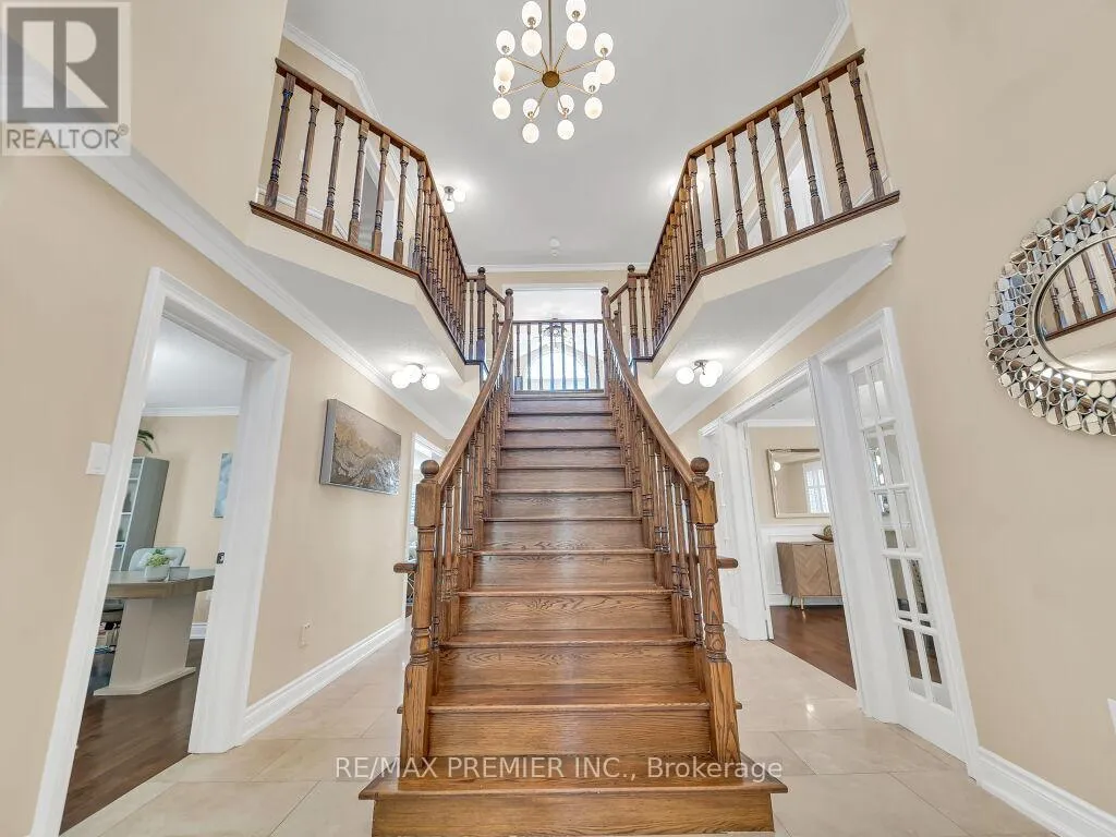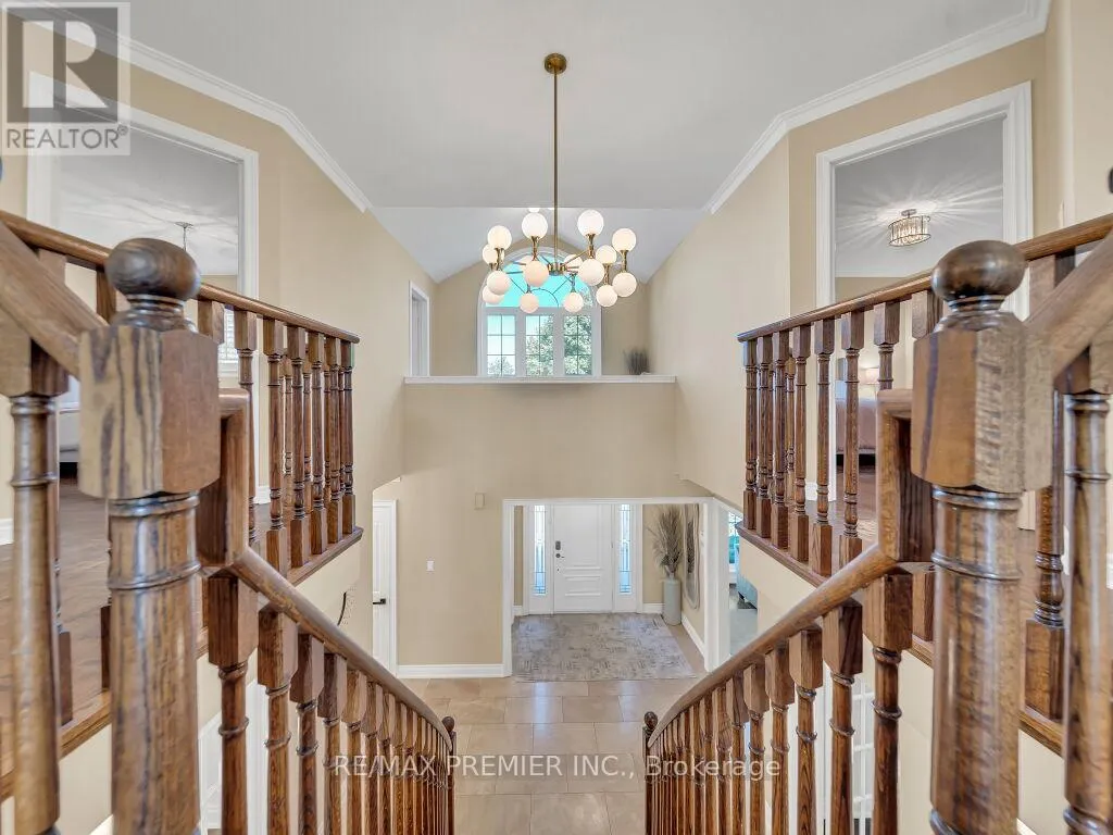 Bayview/North of St. John's Luxury Lifestyle in Prestigious Stonehaven-Wyndham Village! Tucked within an exclusive mature enclave with only one entrance and no through traffic, this executive home combines elegance and comfort at every turn. A sun-filled 2-storey foyer with a sweeping Scarlet O'Hara staircase and gleaming hardwood floors welcomes you inside, opening to an oversized gourmet custom kitchen designed for entertaining, a graceful living room with cathedral ceiling and dramatic 2-storey bay window, and a stylish family room framed by a large picture window that fills the space with natural light. A formal dining room, main floor office, and newer laundry room add both beauty and function. Upstairs, the second bedroom offers access to a private indoor sitting area/balcony, creating a retreat unlike any other. California shutters, crown molding, upgraded bathroom countertops with chic bowl sinks, and designer light fixtures elevate the home throughout. Outside, enjoy a fenced yard with a deck, a custom front entrance, and an extended interlocked driveway - all in one of Newmarket's most prestigious neighborhoods. (id:27476)