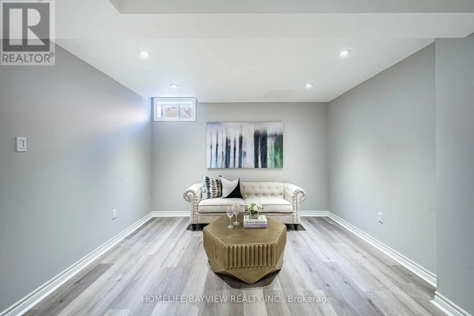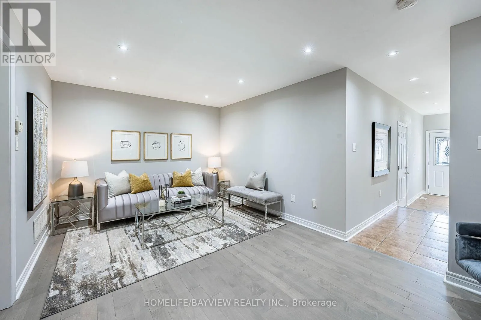 Cross Streets: Green Lane / Woodspring Ave. ** Directions: South of Green Ln and East of Woodspring Ave. Immaculate, sun-filled, and thoughtfully enhanced, this semi-detached gem offers over 2500 sq ft of total living space, including 1826 sq ft above grade and an additional approximately 700 sq ft in the professionally finished basement. A striking double entrance door welcomes you into a refined interior featuring elegant grey-stained maple hardwood floors on the main level, perfectly matched to the staircase for a seamless, contemporary look. All bedrooms are generously sized, providing comfort and flexibility for families or professionals alike. The chef-inspired kitchen showcases sleek quartz countertops, stainless steel appliances, and a ceramic backsplash, with quartz surfaces also featured in all bathrooms for a cohesive upscale finish. Energy-efficient LED pot lights brighten both the main floor and basement, where you'll find brand new wide 6-inch plank vinyl flooring and new vinyl stairs, creating a stylish and durable extension of the living space. Enjoy the convenience of an upstairs laundry and a walk-out from the family room to a private deck-perfect for relaxing or entertaining. Located within walking distance to Upper Canada Mall, Costco, Service Canada, top-rated schools, public transit, and all essential amenities, this freshly painted home blends comfort, elegance, and unbeatable convenience. (id:27476)