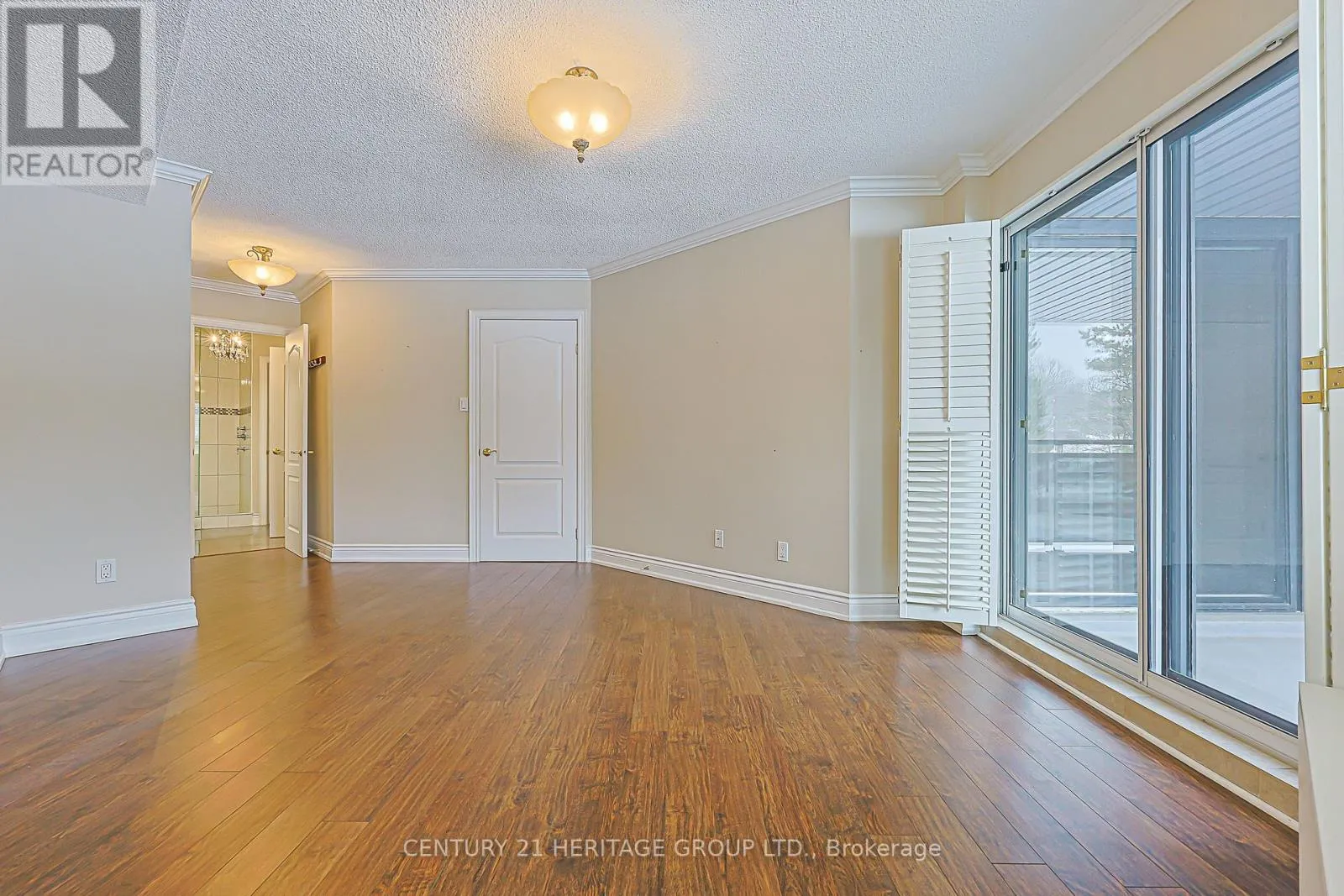 Davis & Main Welcome home to Heritage North! This spacious, upgraded 1 bedroom unit features a west-facing covered balcony with entrances from both the living room and the bedroom, a true rarity in this building. Gorgeous open concept and updates throughout make this unit truly stand out! The modern kitchen features a built-in oven, cooktop, stone backsplash and modern cabinets. The spa-like bathroom has a heated floor, and simply gleams with mosaic tile, glass shower enclosure, porcelain tile and granite counter, as well as a huge linen closet. The large bedroom has double closets and California shutters. With upgraded high baseboards and trim, warm laminate flooring and crown moulding throughout, this condo is immaculate! The in-suite laundry room with ceramic floor is simply massive - no need for a storage locker! The building is pristine and well maintained, with recent investments in new exterior balconies and railings. A close-knit community welcomes you with all the amenities: main floor reception room, games room with billiards and shuffleboard, library, gym, sauna, party room and barbecue patio, all situated on almost 10 acres of green space. The grounds feature a playground, sports courts and expansive grounds close to local community gardens, incredible trail networks, transit, and of course, all the downtown amenities and services. (id:27476)