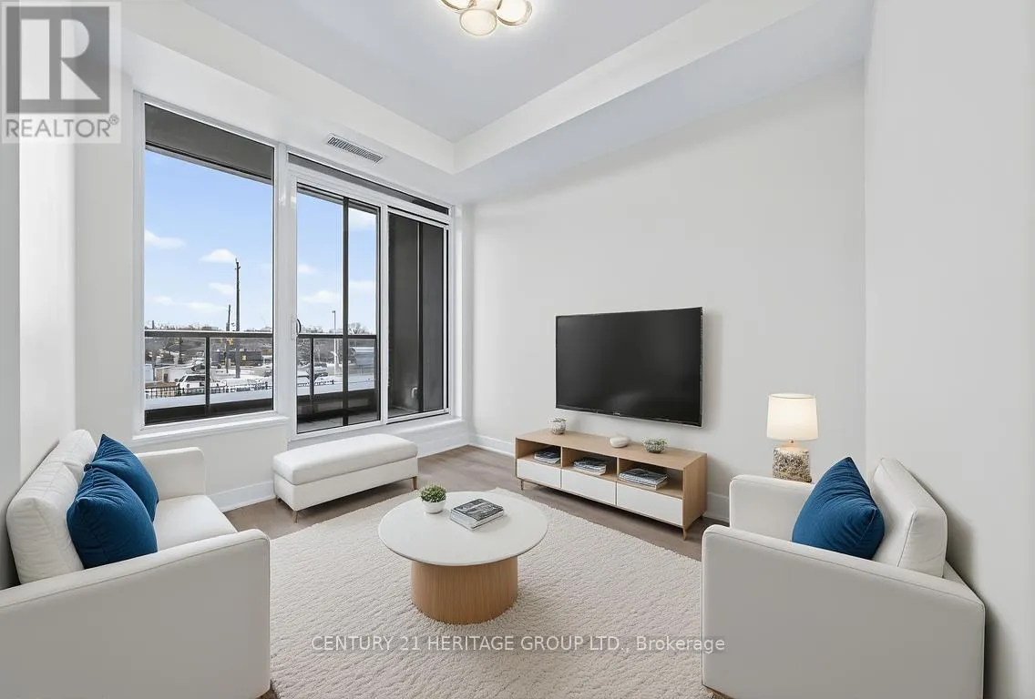 Cross Streets: Yonge/Davis. ** Directions: Davis/Parkside/Deerfield. Welcome To 185 Deerfield Road, Suite 116 - A Stylish And Contemporary Condominium Perfectly Situated In The Heart Of Newmarket * Built In 2024, This Beautifully Appointed One-Bedroom Suite + A Versatile Den, Offers An Exceptional Blend Of Modern Design, Functional Living, And Everyday Convenience * Included is an Underground Parking Spot & a Locker Unit * Ideal For Investors, First-Time Buyers Or Those Looking To Downsize Without Compromising On Style Or Comfort * Freshly Painted And Thoughtfully Designed, This Suite Features A Bright Open-Concept Layout Enhanced By Sleek Finishes Throughout * The Modern Kitchen Showcases Built-In Stainless Steel Appliances, Quartz Countertops, And Seamless Integration With The Dining Area - Perfect For Everyday Living And Entertaining * The Adjoining Living Room Is Filled With Natural Light And Offers Floor-To-Ceiling Windows With A Walk-Out To The Private Balcony, Providing Unobstructed Views Over Davis Drive * The Primary Bedroom Is A Peaceful Retreat With Ample Closet Space, While The Den Offers Flexibility For A Home Office, 2nd Bedroom, Reading Nook, Or Guest Area * Enjoy An Impressive Selection Of Building Amenities Including Concierge Service, A Fully Equipped Fitness Centre, Party Room, Guest Suites, Visitor Parking, And A Rooftop Patio * Ideally Located Just Minutes From Upper Canada Mall, Main Street Newmarket Shops And Restaurants, Public Transit, And Highway 404 - This Is Urban Living At Its Finest In A Prime Newmarket Location! Kindly Note: That Some Photos Have Been Virtually Staged (id:27476)