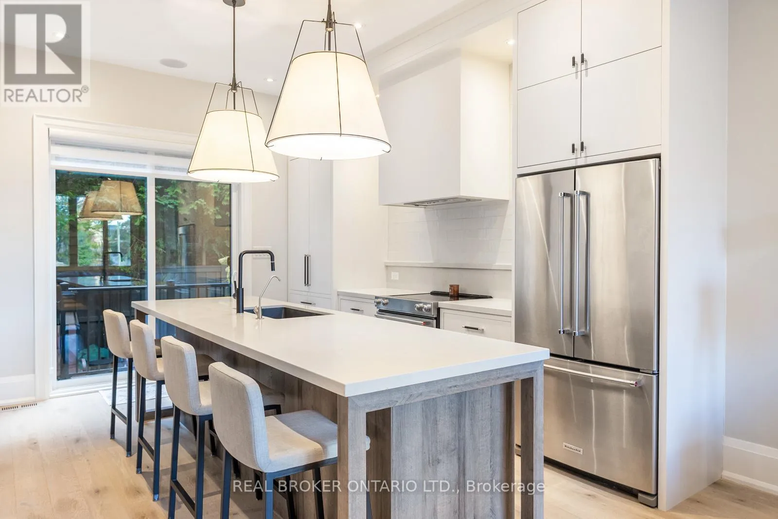 Park Avenue & Victoria Street A rare opportunity to own a stunning, fully custom duplex offering two completely self-contained, modern residences ideal as a multi-generational home or an exceptional investment property. Each side boasts thoughtfully designed living spaces with 10-foot ceilings on the main and second floors, and 9-foot ceilings in the finished basements, creating a bright and airy atmosphere throughout. Enjoy hardwood flooring, oversized windows, and custom built-in closets that elevate everyday living.The heart of each home is the chef-inspired kitchen, complete with feature islands, built-in stainless steel appliances, and sleek finishes that blend style with functionality. Upstairs, you'll find 2 spacious bedrooms and 2 full bathrooms on each side, while the finished basements offer large, versatile open rooms perfect as a 3rd bedroom, guest suite, or additional living space plus beautifully designed bathrooms and custom laundry rooms. Step outside to your private oasis with a professionally landscaped yard, ideal for relaxing or entertaining. Located just steps from historic Main Street, enjoy unparalleled access to local cafes, restaurants, walking trails, boutique hotels, and vibrant seasonal events. Whether you're looking for a forever home, multigenerational living, or a turnkey investment, this duplex delivers unmatched flexibility, quality, and location. *Seller's can provide fence between sides prior to closing if requested* (id:27476)