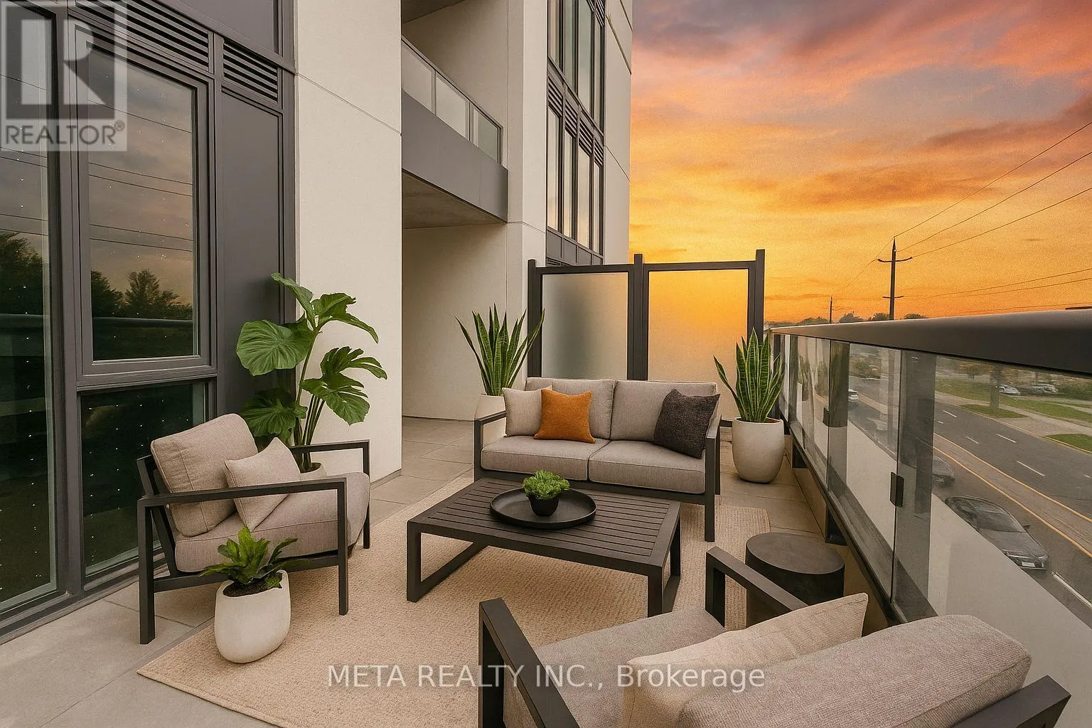 Cross Streets: Davis Drive & Patterson. ** Directions: Westbound on Davis Drive, turn right into building parking lot before Patterson St. This is the most elegant building in all of Newmarket! Not only is it new and never lived in but its designed with class and sophistication. Let me save you some time on your search with highlights of this 1 bed 1 bath unit. The lucky working professional or couple who will reside in this unit gets the luxury of a terrace triple the size of the balconies unique to only the 4th floor. Additionally the rooftop lounge and is also on the 4th floor for easy accessibility. The primary is a true fully enclosed bedroom with solid walls (no glass partitions) for complete privacy and quiet comfort. Furthermore it has 3 windows composing of floor to ceiling natural light and option for fresh air (save on utilities), along with a large double closet. The layout is functional giving space for a freestanding island if you wanted, a good size couch/sectional with a dedicated Tv wall in the living area, all without taking away space from the kitchen. This unit comes with 1 parking space and 1 locker. Building amenities include: Gym, 24 Hr Concierge, Rooftop Terrace and lounge, Meeting Room, Multipurpose room, Guest Suites, Pet Exercise Area, Bike Storage and Visitor Parking. Close to Southlake Hospital, the GO Station, Costco, Upper Canada Mall, shops, restaurants, and with easy access to Highway 404. (id:27476)