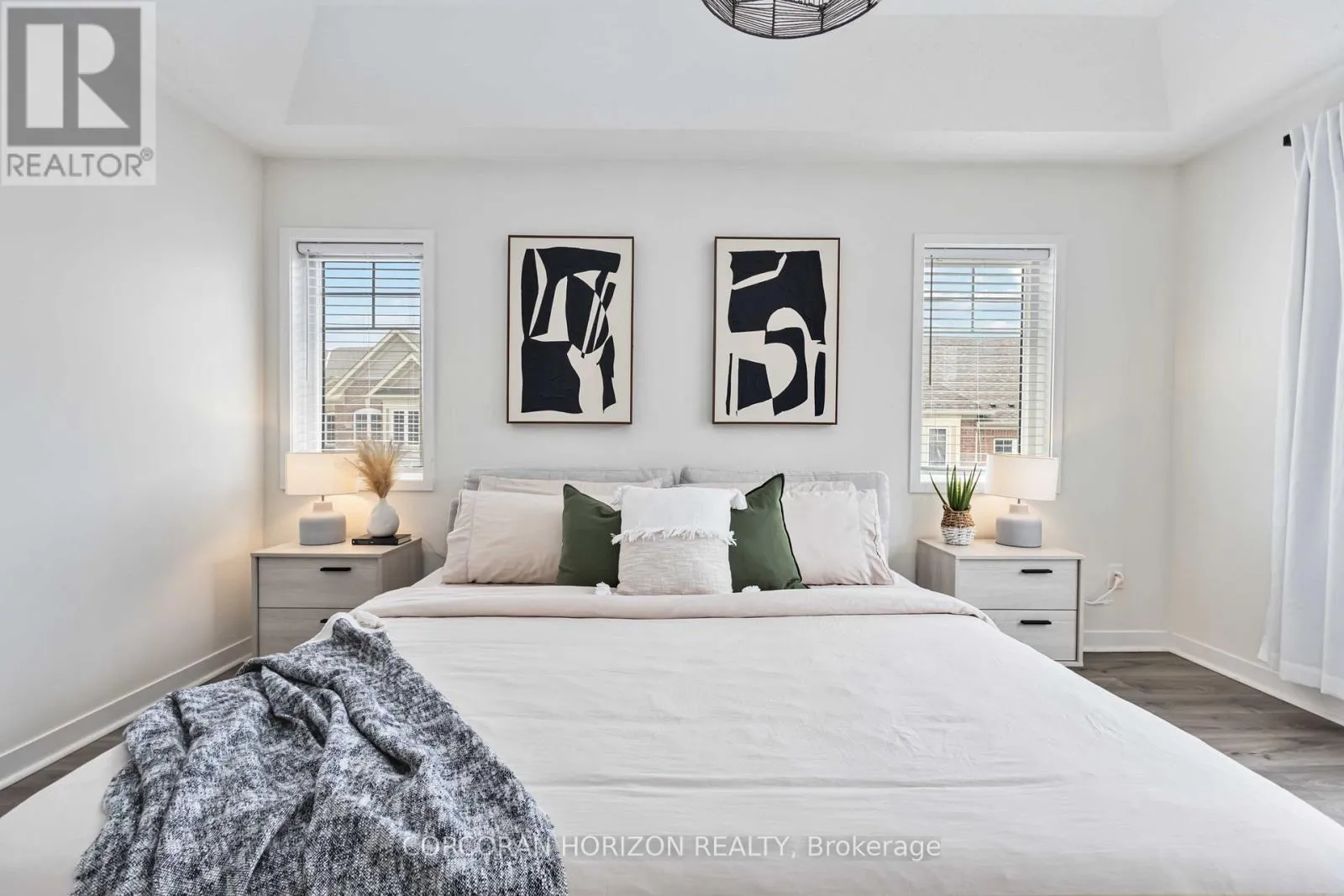 Davis Dr and Mitchell Pl Freehold Corner Townhome - Like a Semi! Perfect for Growing Families or Downsizers Alike.-- Flooded with natural light from the best 3 exposures --South, East, and West, this 4-bedroom + main-floor office home blends style and function effortlessly. Nearly 2,000 sq. ft. with a boho-beach vibe, featuring unobstructed sunset views from both the living room and primary bedroom. The exterior has been fully upgraded with $50K in interlocking, a grand wrap-around entrance, landscaped gardens, and 2 side-by-side parking spots + garage. Inside, enjoy carpet-free living with upgraded hardware throughout, professionally designed custom paneling and closets, chic light fixtures, and newer upgraded stainless steel appliances. The convenient second-floor laundry room adds extra functionality. The fully fenced backyard is designed for balance--half professionally interlocked, half green space--perfect for entertaining or relaxing. The basement offers in-law suite or rental income potential, adding long-term value. **Location, location, location.** Steps to top-rated schools, community centre, trails, parks, and all amenities including Upper Canada Mall, Costco, the GO Station, and both HWYs 400 and 404! ** BUYER INCENTIVE AVAILABLE To Save Buyer Thousands! ** (id:27476)