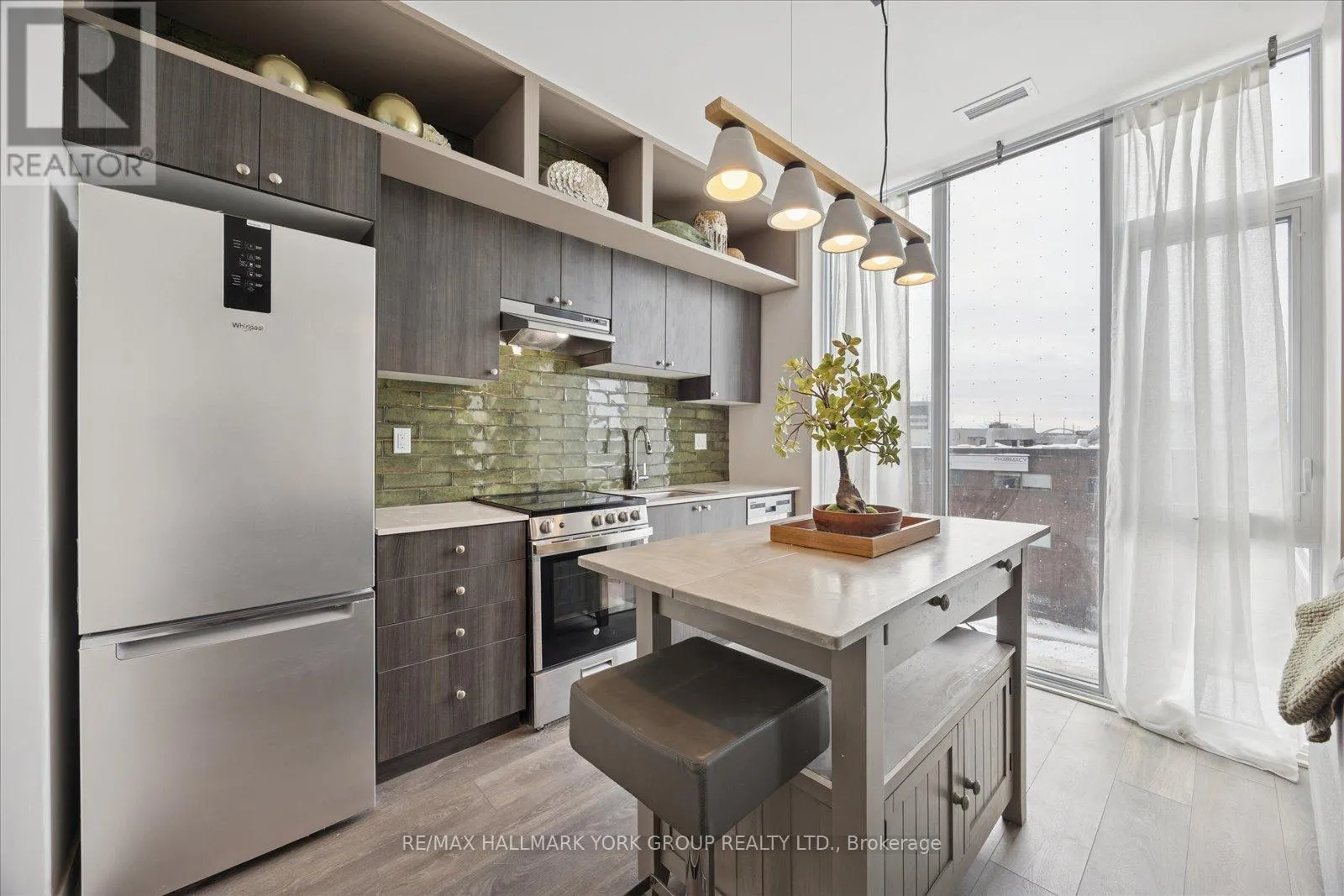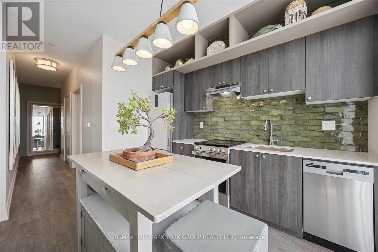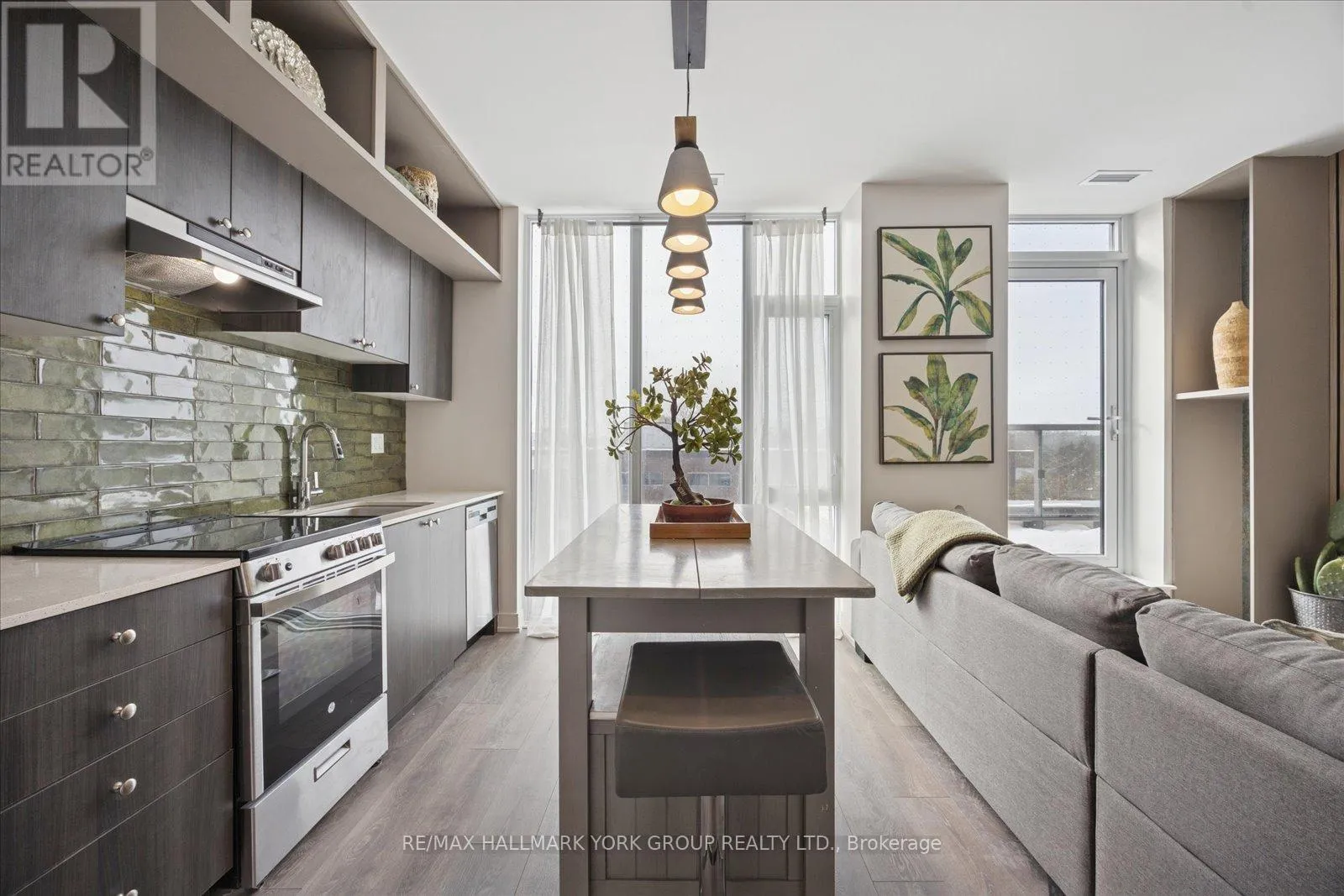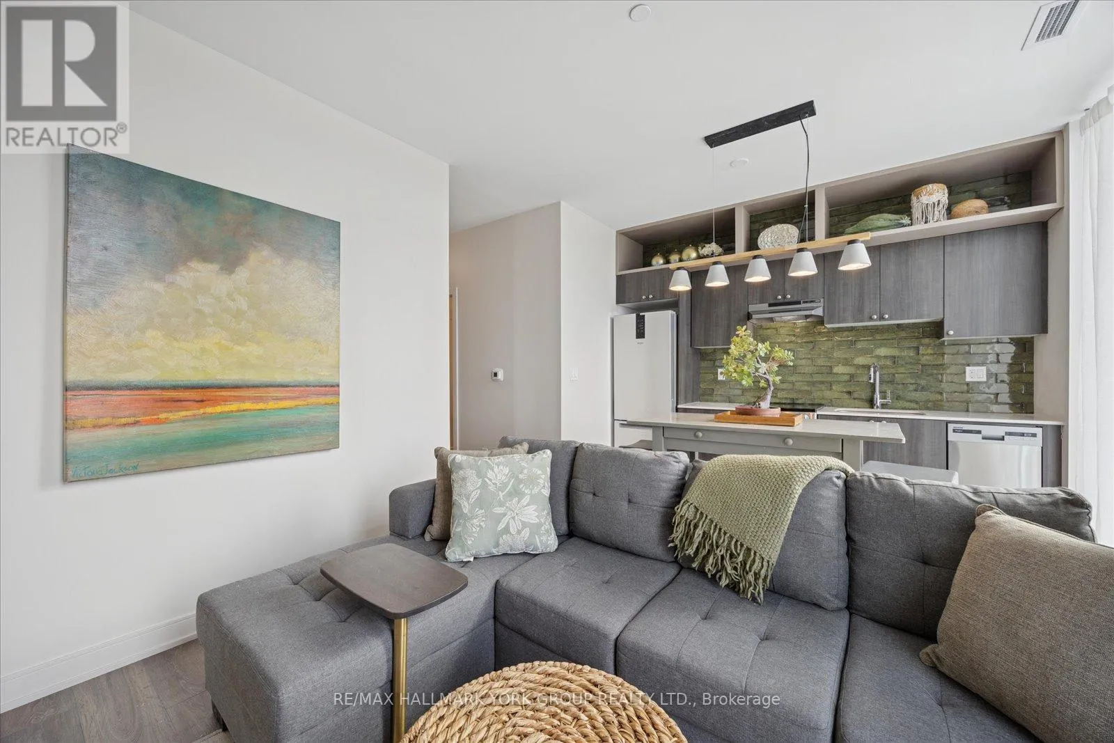 Davis Drive & Patterson Street Welcome To Kingsley Square! This Well-Designed 1 Bedroom, 1 Bathroom Condo Offers Approximately 529 Sq Ft Of Interior Living Space Plus A 51 Sq Ft Private Balcony, Ideal For Modern Condo Living.The Open-Concept Kitchen, Living, And Dining Area Creates A Seamless Flow, Perfect For Entertaining Or Relaxing At Home. The Kitchen Features Stainless Steel Appliances, Sheer Privacy Window Coverings, And Extensive 24" Deep Custom Storage Added Across The Entire Wall With Integrated LED Lighting And A Striking Emerald Backsplash. The Living Area Provides Direct Access To The Private Balcony, Extending Your Living Space Outdoors And Offering Western Exposure With City Views And Beautiful Sunset. The Family Room Has Been Thoughtfully Upgraded With Custom Acoustic Fluting For Sound Insulation To The Bedroom, A Built-In Custom Cabinet With Turquoise Stone Backing, A Widened Wall Between The Kitchen And Stair Area To Better Accommodate A Sofa, And Additional Electrical Outlets Including A Second TV Wall Option For Flexible Layouts.The Separate Bedroom Is Comfortably Sized And Tucked Away For Added Privacy, Featuring Electrical For A Wall-Mounted TV, Double Hanging Closet Rods To Maximize Storage, A Custom Closet Cabinet With Three Drawers, A Custom Fluted Accent Wall, And Professionally Installed Draperies.The Foyer Includes In-Suite Stackable Laundry And A Well-Appointed 4-Piece Bathroom With An Upgraded LED Mirror. Parking Is Included, And The Building Is Pet-Friendly.Residents Of Kingsley Square Enjoy An Impressive Selection Of Amenities Including Concierge/Security, Fitness Room, Media Room, Rooftop Deck & Garden, Community BBQ Area, And Visitor Parking. Ideally Located Steps To Public Transit, Parks, Schools, Hospital, Library, And Recreation Centre, This Is A Fantastic Opportunity To Enjoy A Low-Maintenance Lifestyle In A Well-Managed, Amenity-Rich Building. Furnishings Available For An Additional $200 Per Month, Offering A Flexible And Turn-Key Option. (id:27476)