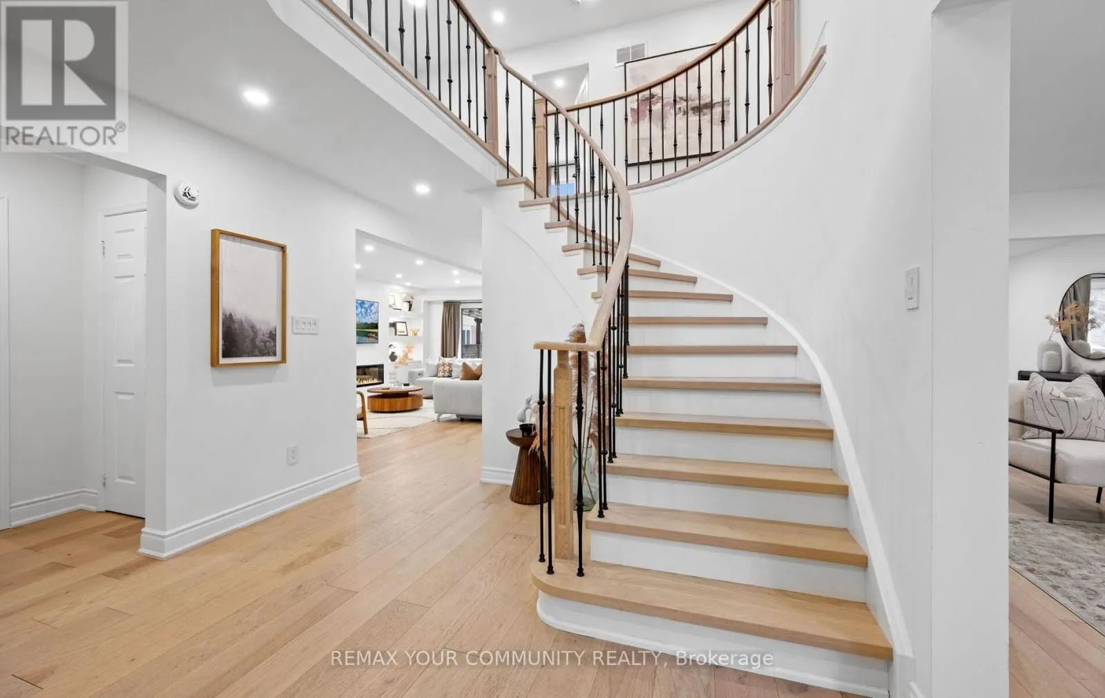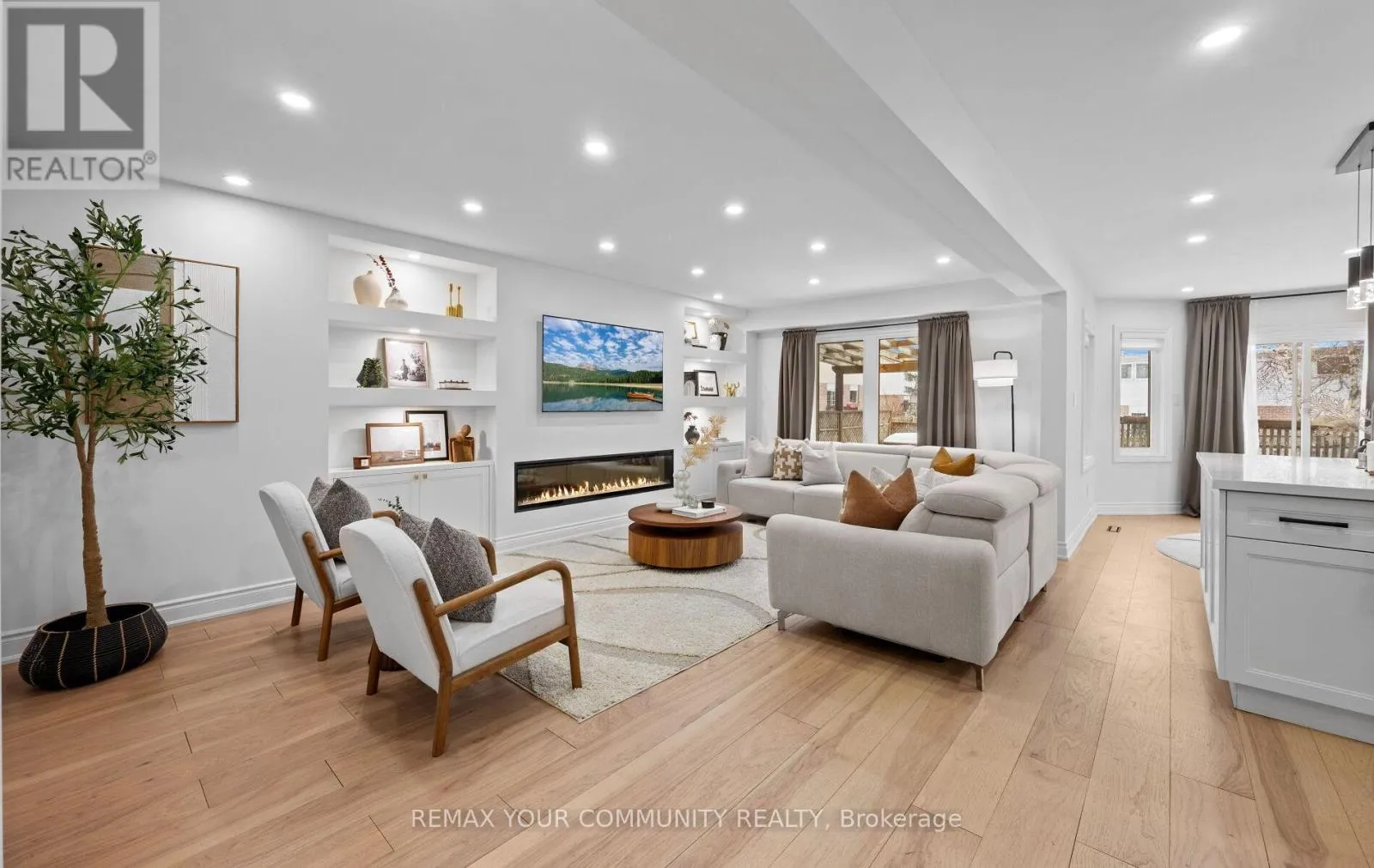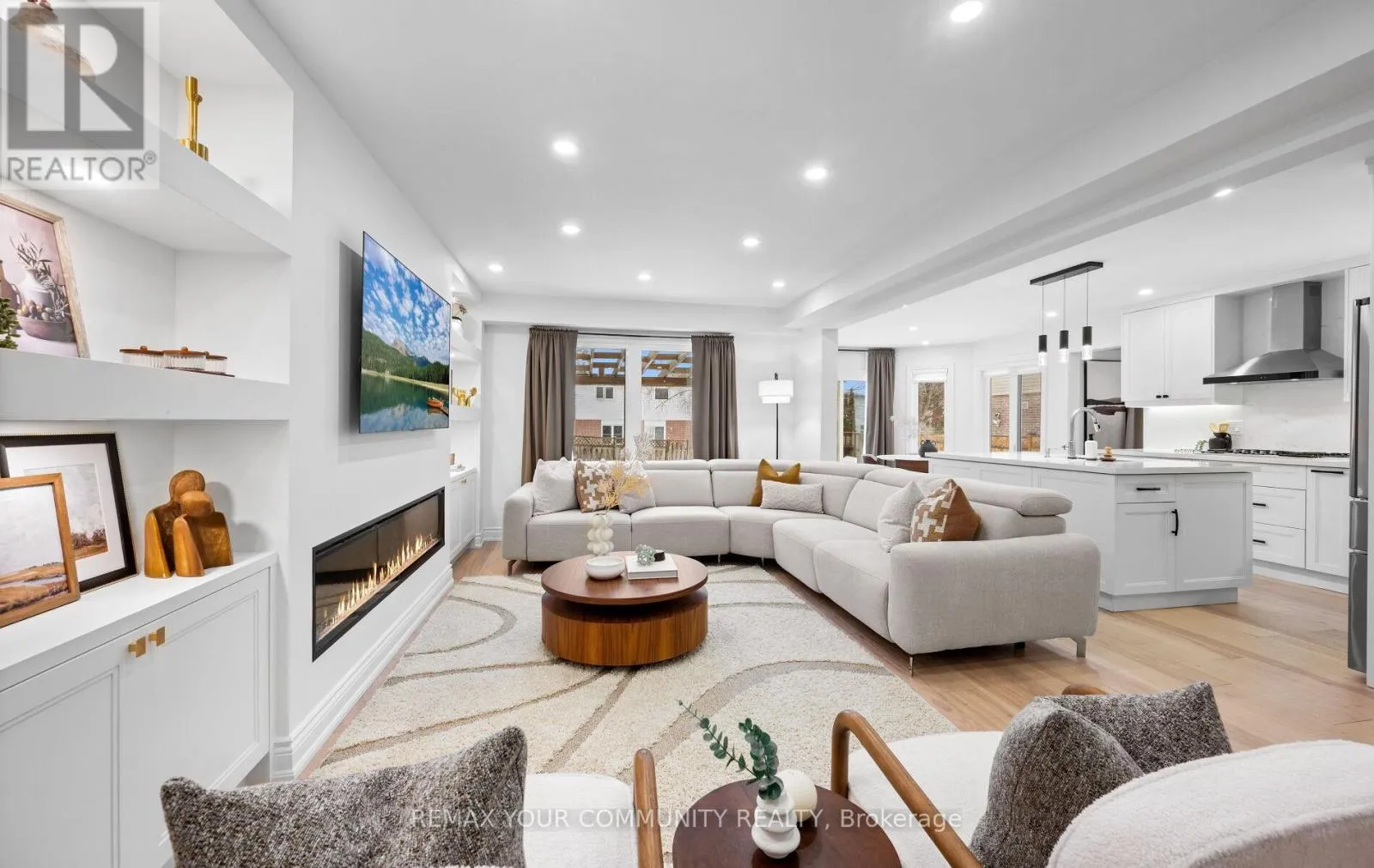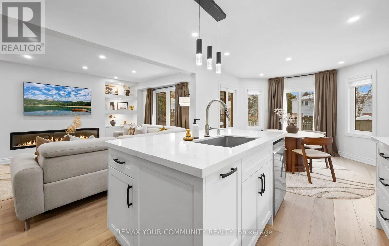 Yonge & Bristol This impeccably renovated 4-bedroom residence perfectly balances contemporary design with functional luxury. The open-concept design is anchored by stunning white oak engineered hardwood and a striking wood staircase with wrought iron accents. The heart of the home is a chef-inspired kitchen featuring a centre island, quartz counters and built-in appliances. Step from the breakfast room onto a spacious deck to enjoy sunny South and West views - perfect for sunset entertaining. The family room serves as a modern retreat with custom built-in display shelves and a sleek linear fireplace, while the more formal living and dining areas accommodate large family gatherings. Upstairs, find four generous bedrooms including a primary suite with a custom walk-in closet & 3pc ensuite. With a main-floor laundry, direct double-garage access, and an unspoiled basement ready for your personal touch, this home is truly "move-in ready" with room to grow. (id:27476)