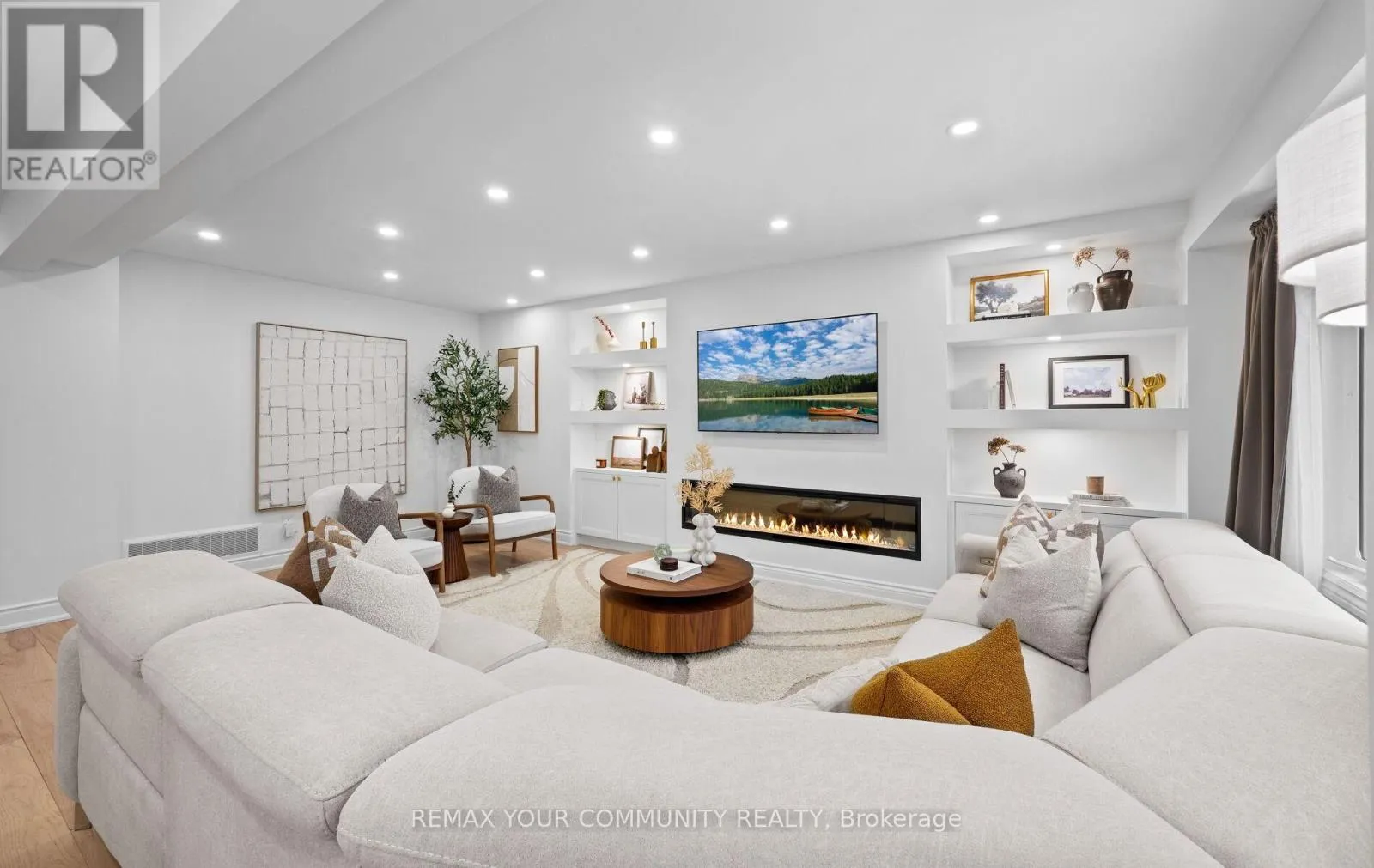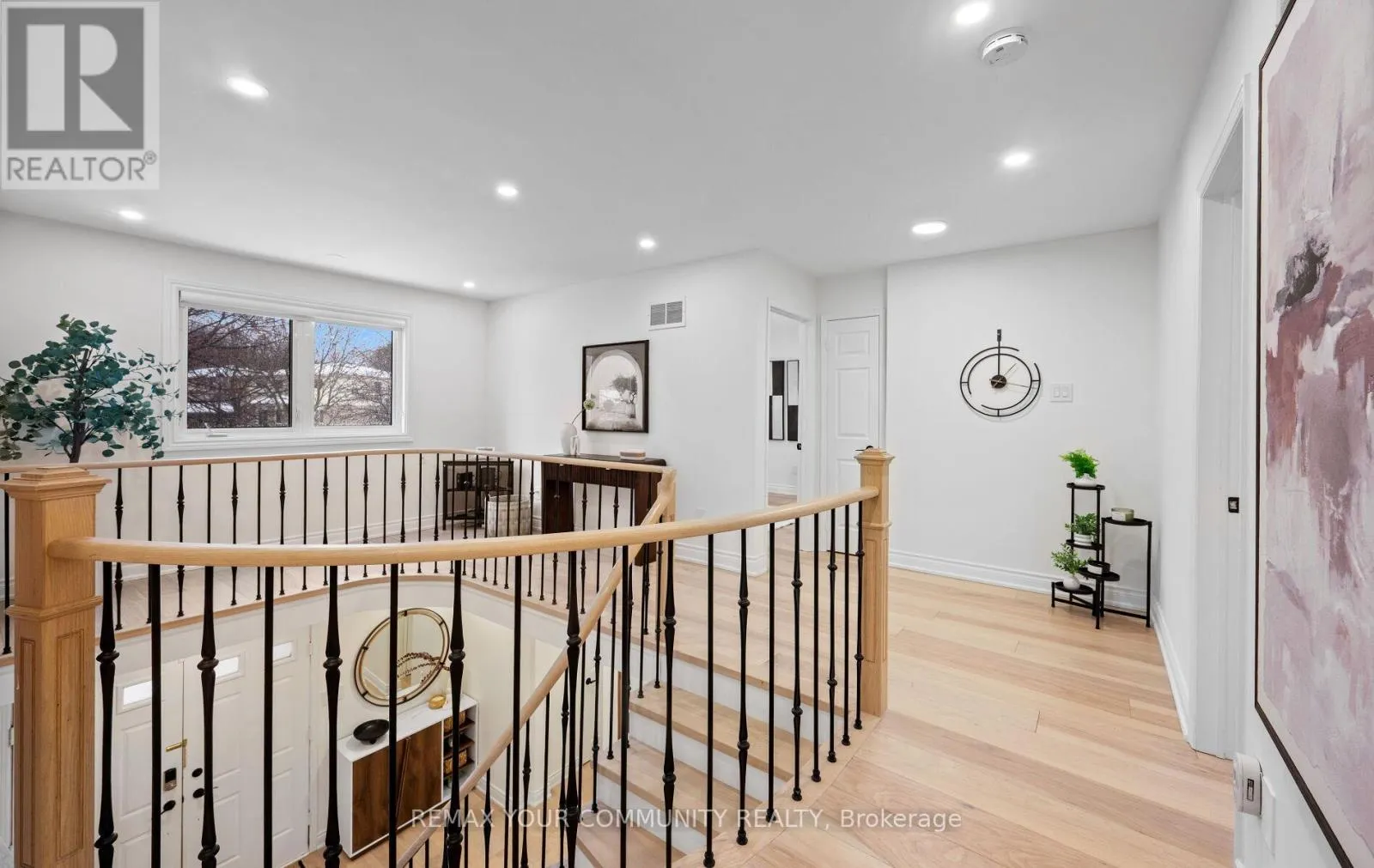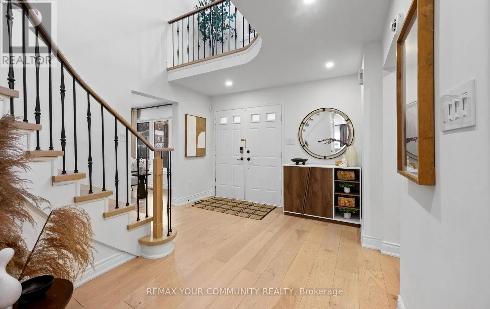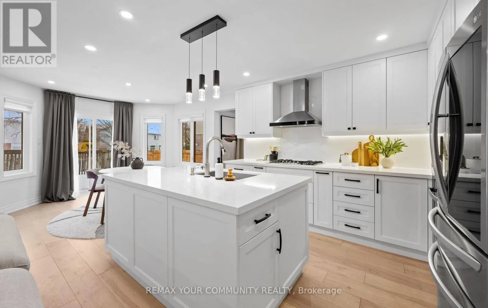 Yonge & Bristol This impeccably renovated 4-bedroom residence perfectly balances contemporary design with functional luxury. The open-concept design is anchored by stunning white oak engineered hardwood and a striking wood staircase with wrought iron accents. The heart of the home is a chef-inspired kitchen featuring a centre island, quartz counters and built-in appliances. Step from the breakfast room onto a spacious deck to enjoy sunny South and West views - perfect for sunset entertaining. The family room serves as a modern retreat with custom built-in display shelves and a sleek linear fireplace, while the more formal living and dining areas accommodate large family gatherings. Upstairs, find four generous bedrooms including a primary suite with a custom walk-in closet & 3pc ensuite. With a main-floor laundry, direct double-garage access, and an unspoiled basement ready for your personal touch, this home is truly "move-in ready" with room to grow. (id:27476)