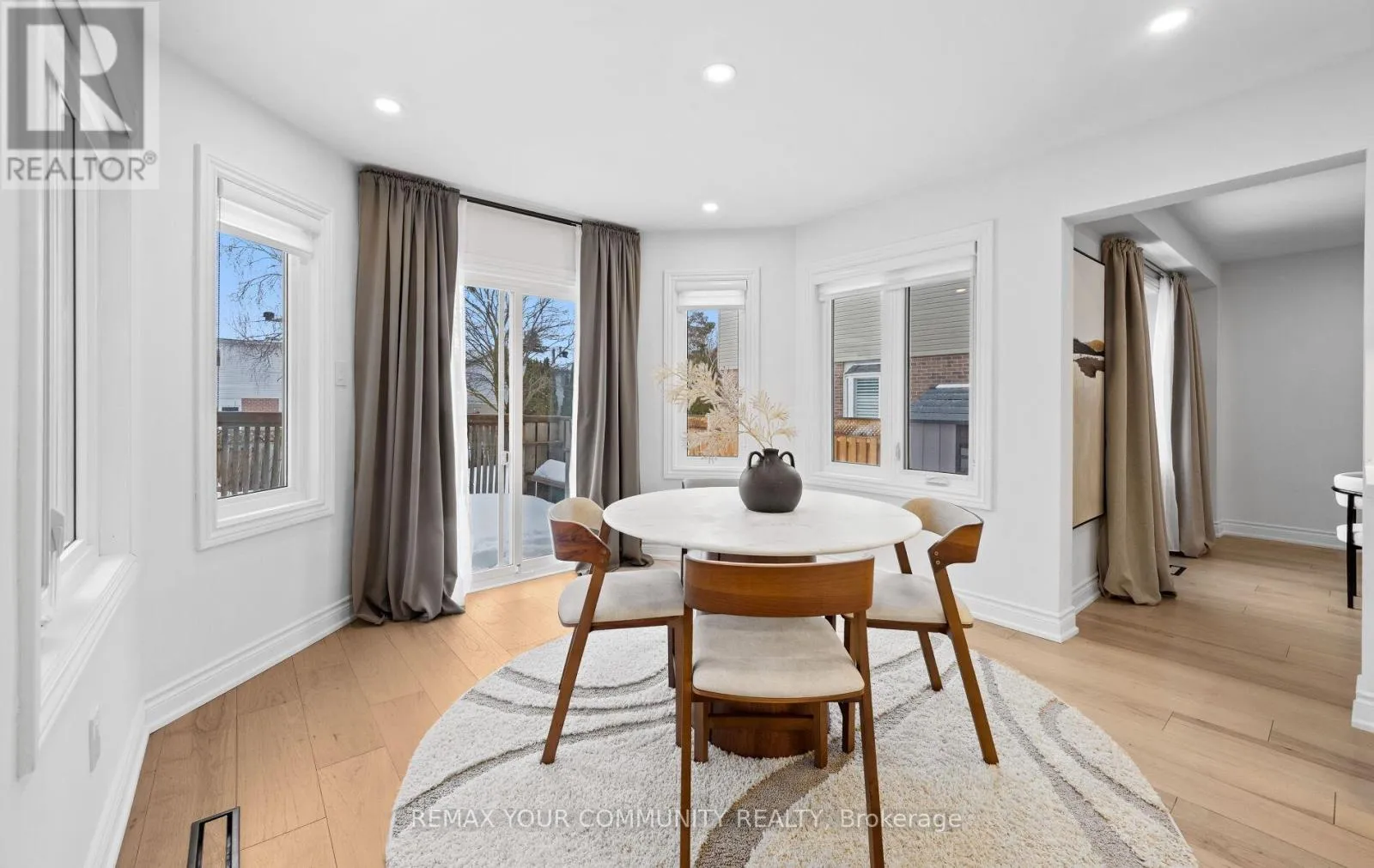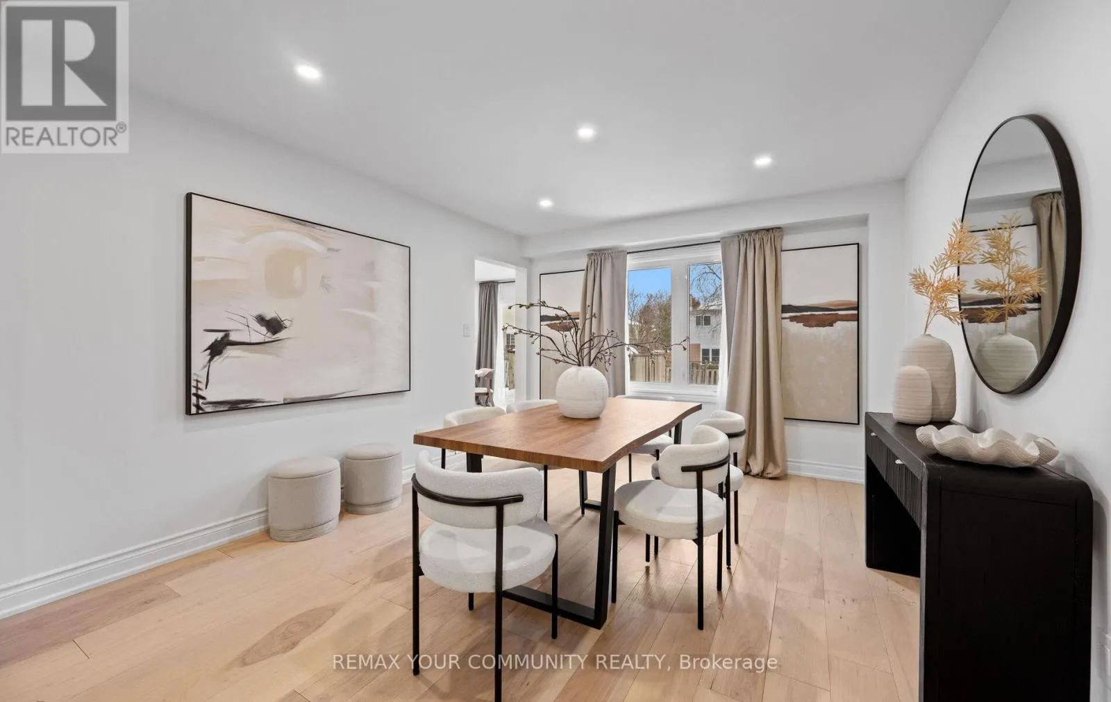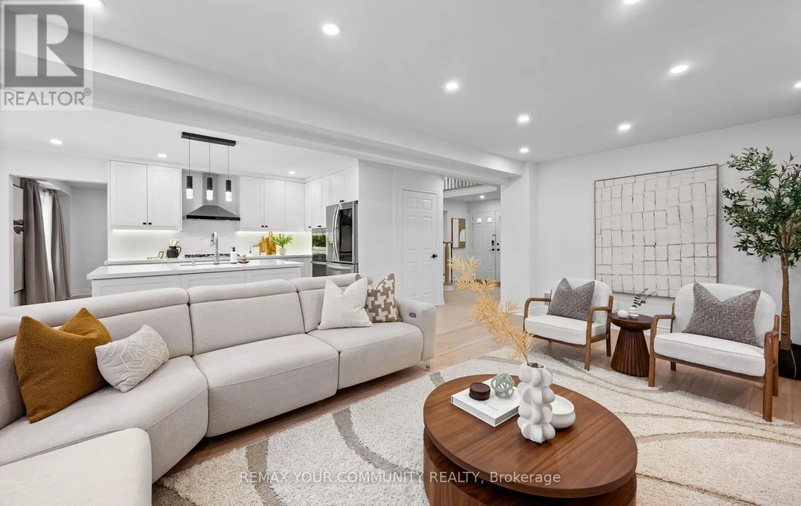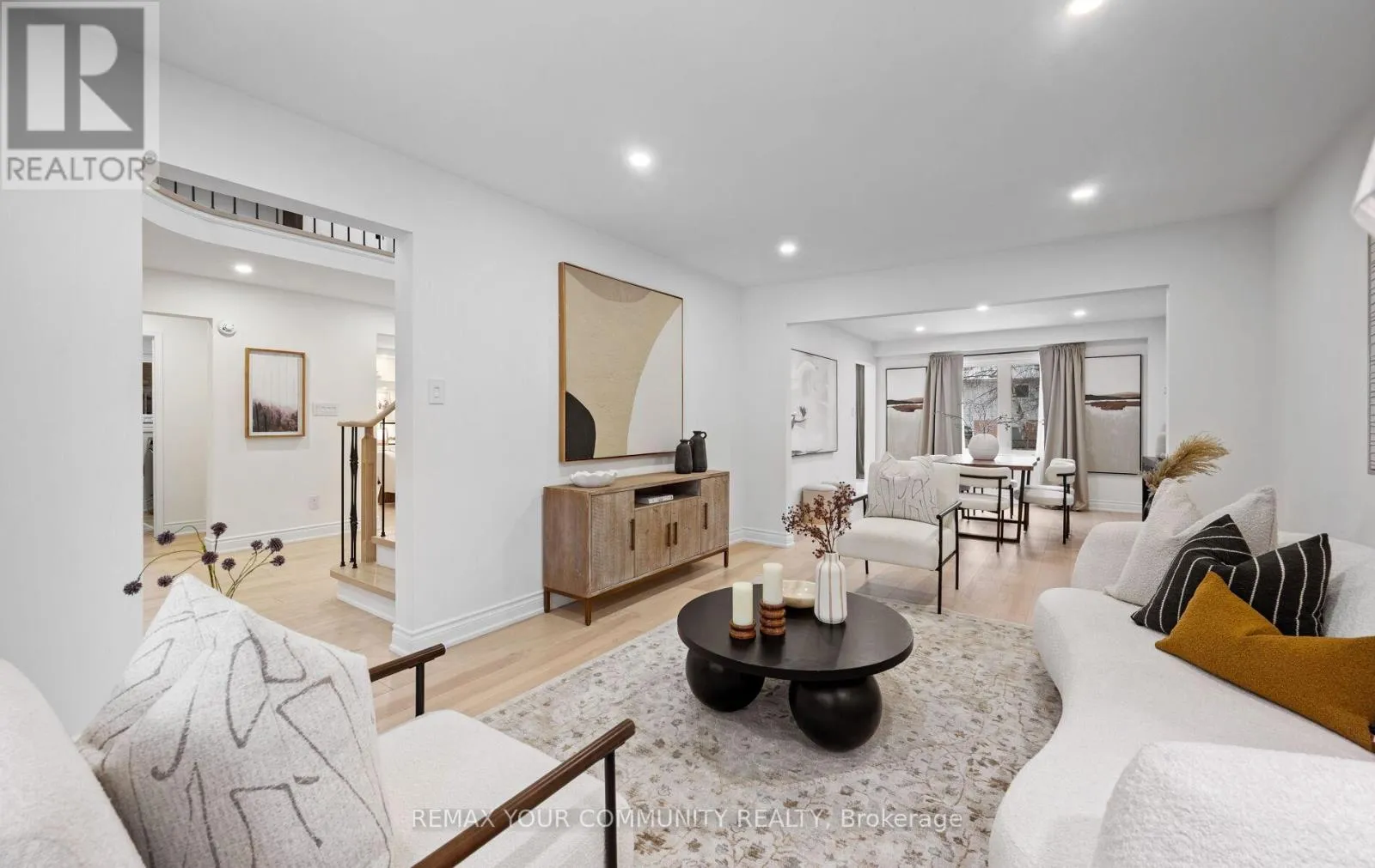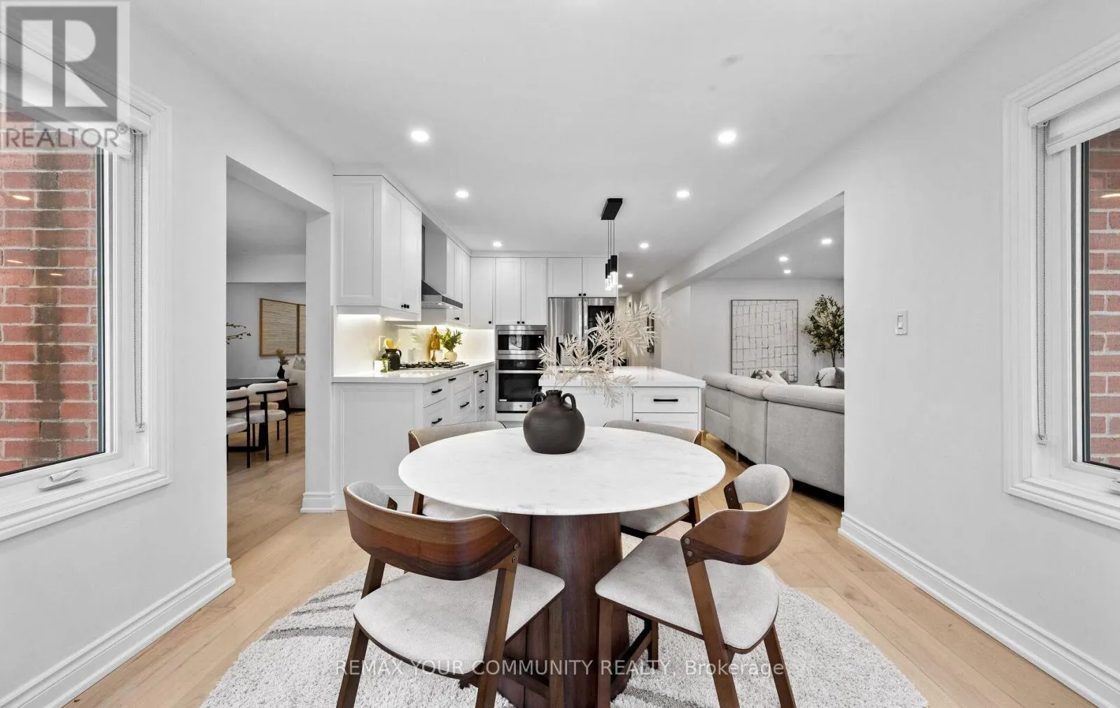 Yonge & Bristol This impeccably renovated 4-bedroom residence perfectly balances contemporary design with functional luxury. The open-concept design is anchored by stunning white oak engineered hardwood and a striking wood staircase with wrought iron accents. The heart of the home is a chef-inspired kitchen featuring a centre island, quartz counters and built-in appliances. Step from the breakfast room onto a spacious deck to enjoy sunny South and West views - perfect for sunset entertaining. The family room serves as a modern retreat with custom built-in display shelves and a sleek linear fireplace, while the more formal living and dining areas accommodate large family gatherings. Upstairs, find four generous bedrooms including a primary suite with a custom walk-in closet & 3pc ensuite. With a main-floor laundry, direct double-garage access, and an unspoiled basement ready for your personal touch, this home is truly "move-in ready" with room to grow. (id:27476)