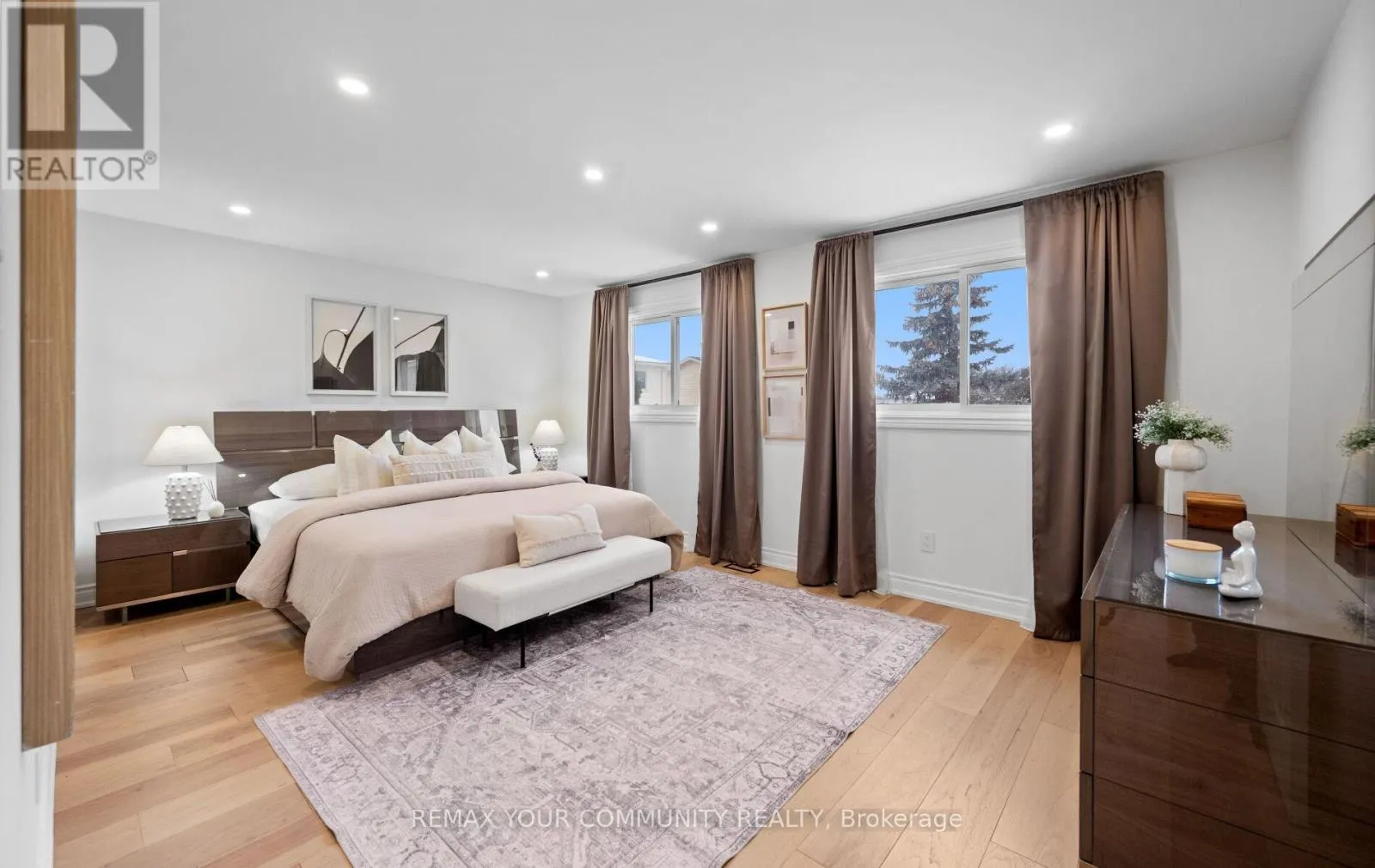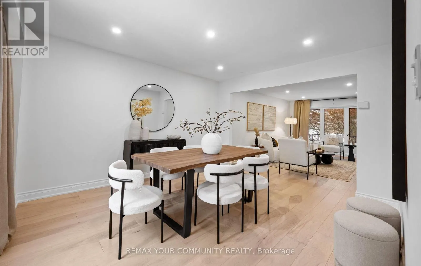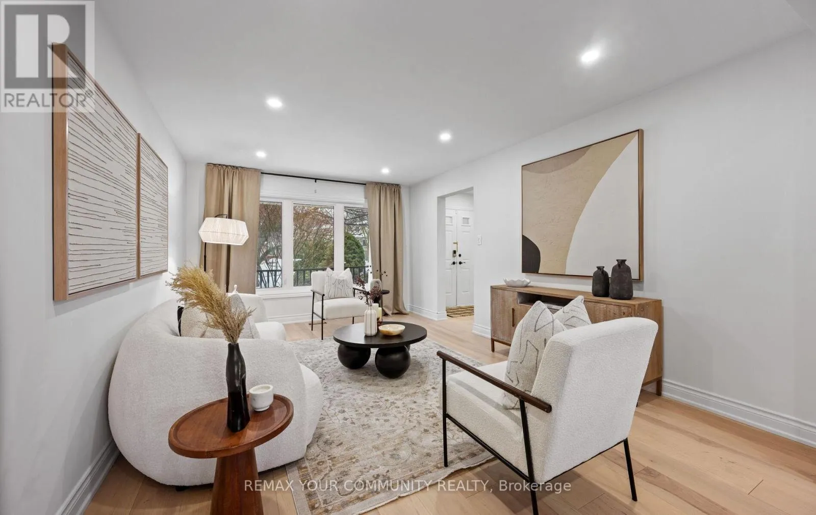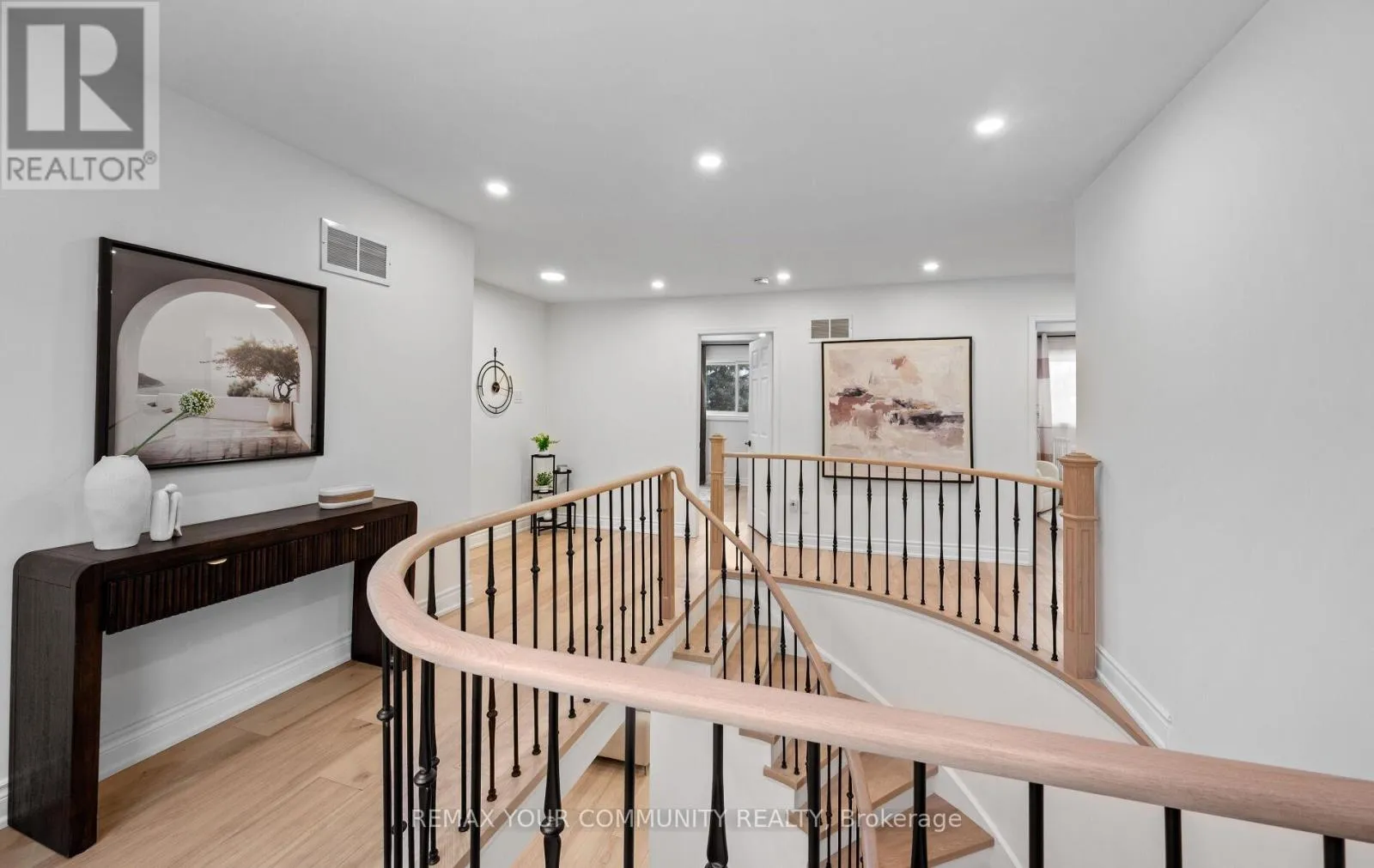 Yonge & Bristol This impeccably renovated 4-bedroom residence perfectly balances contemporary design with functional luxury. The open-concept design is anchored by stunning white oak engineered hardwood and a striking wood staircase with wrought iron accents. The heart of the home is a chef-inspired kitchen featuring a centre island, quartz counters and built-in appliances. Step from the breakfast room onto a spacious deck to enjoy sunny South and West views - perfect for sunset entertaining. The family room serves as a modern retreat with custom built-in display shelves and a sleek linear fireplace, while the more formal living and dining areas accommodate large family gatherings. Upstairs, find four generous bedrooms including a primary suite with a custom walk-in closet & 3pc ensuite. With a main-floor laundry, direct double-garage access, and an unspoiled basement ready for your personal touch, this home is truly "move-in ready" with room to grow. (id:27476)