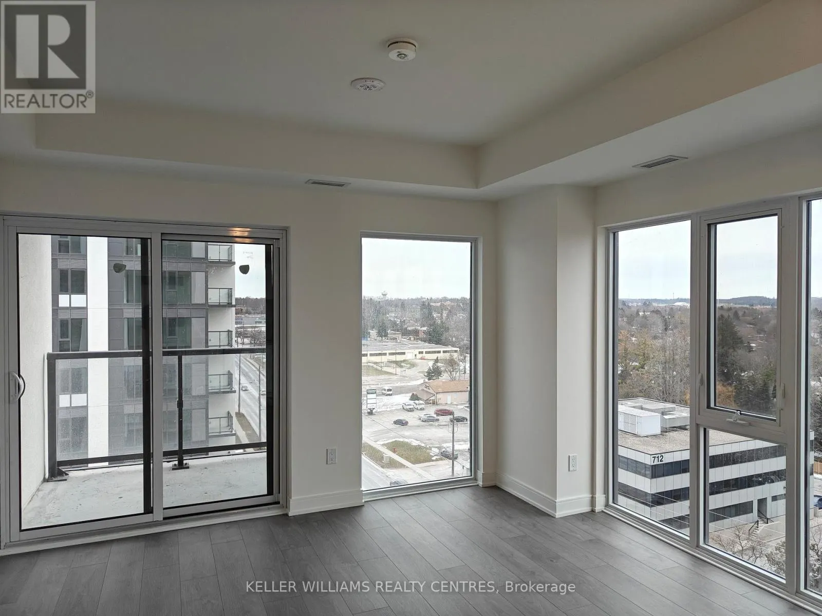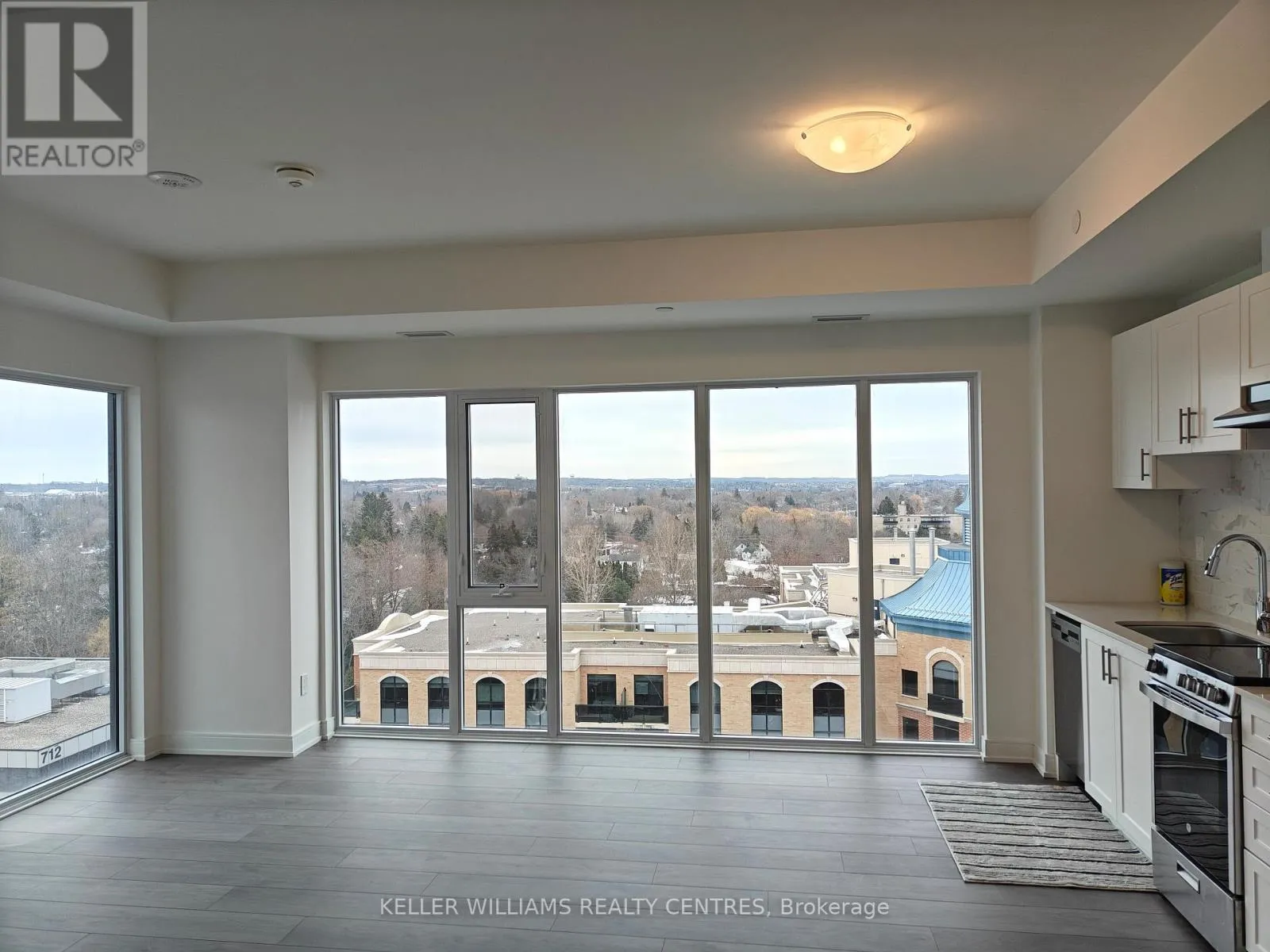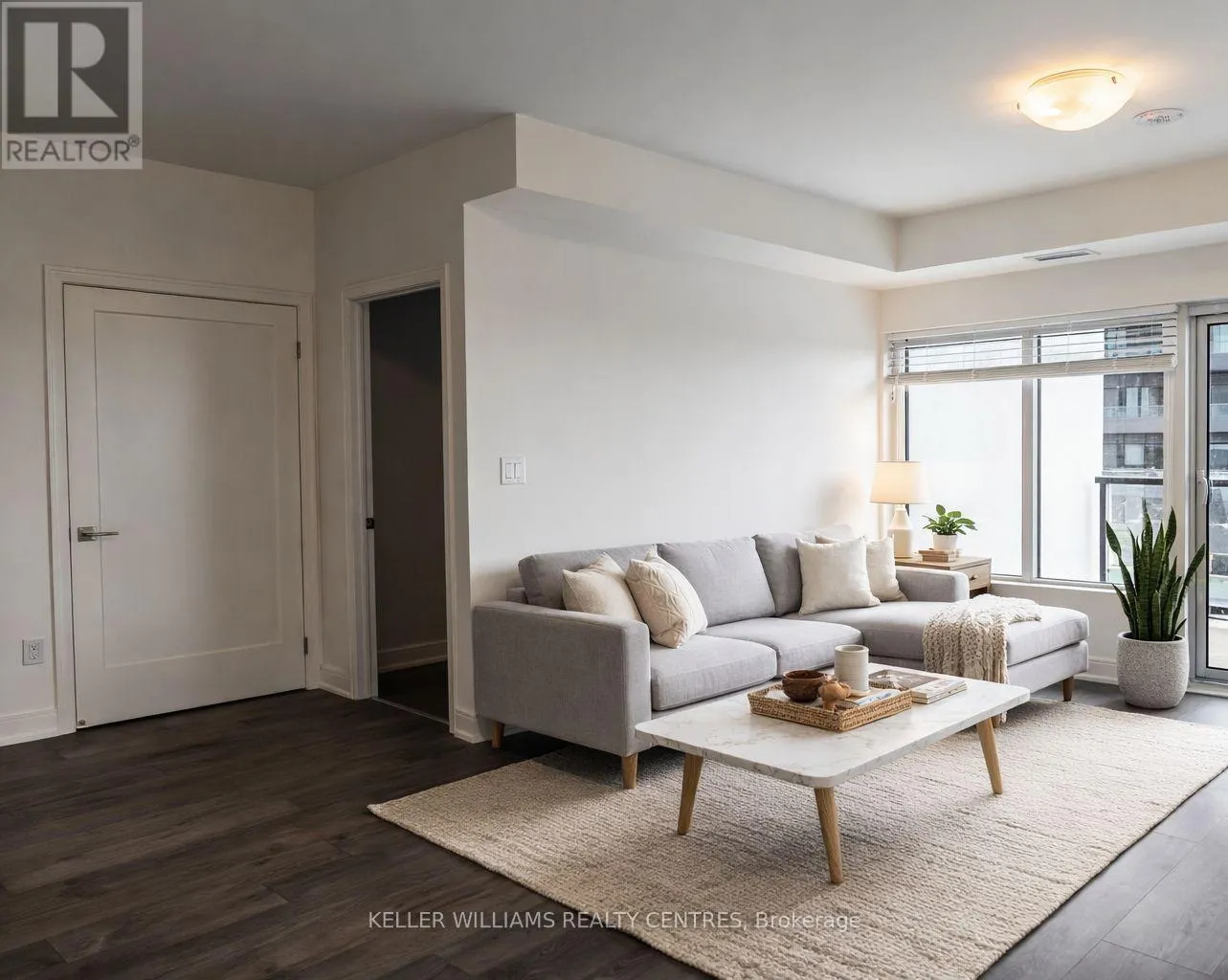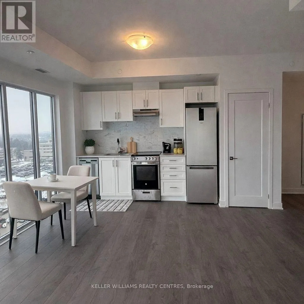 Cross Streets: Davis & Patterson. ** Directions: NE corner of Davis Dr & Patterson St. Bright southeast-facing corner suite at Kingsley Square Condos by Briarwood Developments! This brand-new, never-occupied 1-bedroom condo showcases a thoughtfully designed open-concept layout, flooded with natural light from expansive floor-to-ceiling windows and a dramatic window wall. Designed for modern living, the unit features seamless laminate flooring throughout (no carpet), soaring 9-foot smooth ceilings, and a stylish kitchen equipped with quartz surfaces, stainless steel appliances, a contemporary tile backsplash, and soft-close cabinetry. The thoughtfully designed, accessible bathroom door enhances comfort and ease of use. The suite also includes in-suite laundry, one underground parking space, and a dedicated storage locker. Residents enjoy full benefits of upscale amenities, including 24-hour concierge service, a fully equipped gym, yoga studio, entertainment and meeting spaces, rooftop terrace with BBQs, guest accommodations, a pet wash station, and visitor parking. Conveniently positioned near Upper Canada Mall, Main Street Newmarket, Costco, GO Transit, Viva, Highway 404, and Southlake Regional Health Centre - you'll have shopping, transit, healthcare, dining, and recreation just moments away. An ideal choice for professionals or couples seeking contemporary comfort with everyday convenience. Some photos virtually staged. (id:27476)
