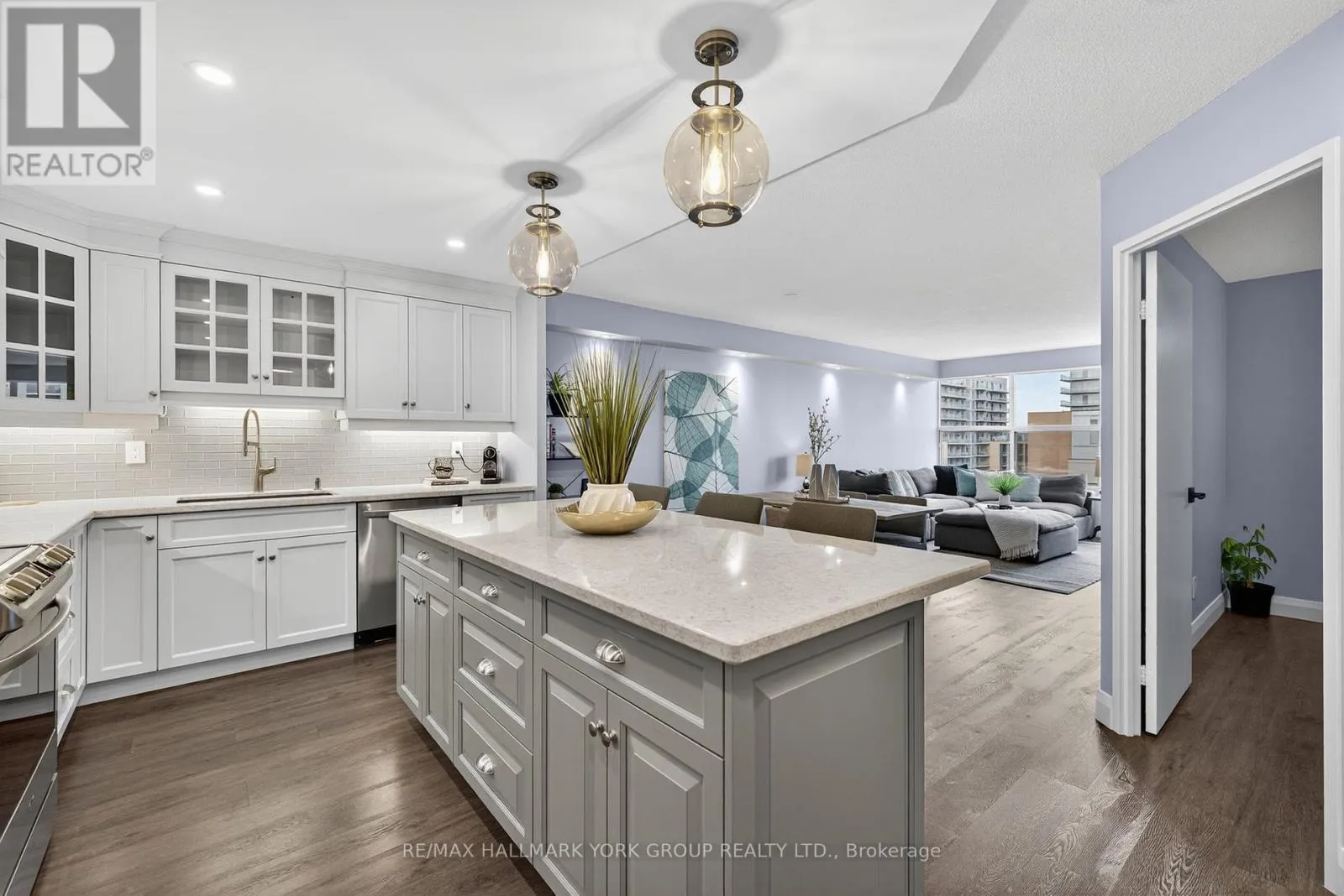 Cross Streets: Davis/Lorne. ** Directions: East or West On Davis Drive, South On Lorne Avenue, West On Calgain Road. Absolutely Stunning 2 + 1 Bed/2 Bath Condo In Central Newmarket! Renovated Throughout, This Fabulous Unit Boasts Over 1100 Square Feet With A Sensational Chef's Kitchen With Quartz Counters, Stainless Steel Appliances, Chic Tile Backsplash & Huge Centre Island/Breakfast Bar. Bright Living/Dining Rooms With Pot Lights. Spacious Bedrooms Including Generously Sized Primary Bedroom With Walk-In Closet & Updated 3-Piece Bathroom Plus Additional Den/Office Space. Other Features Include Updated Main Bath & Light Fixtures Throughout, Ensuite Laundry, Locker & 1 Underground Parking Space. Conveniently Located To All Newmarket Has To Offer Including Main Street, Upper Canada Mall, Transit, Restaurants, Schools, Parks & So Much More! (id:27476)