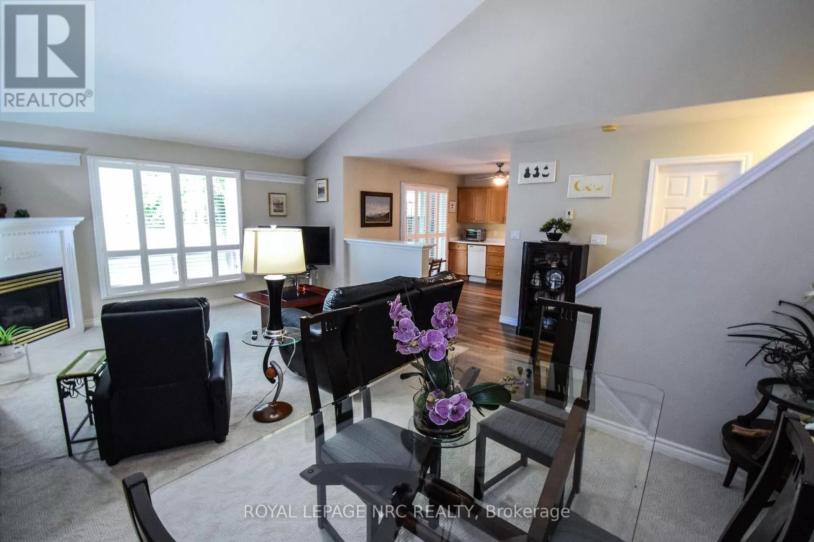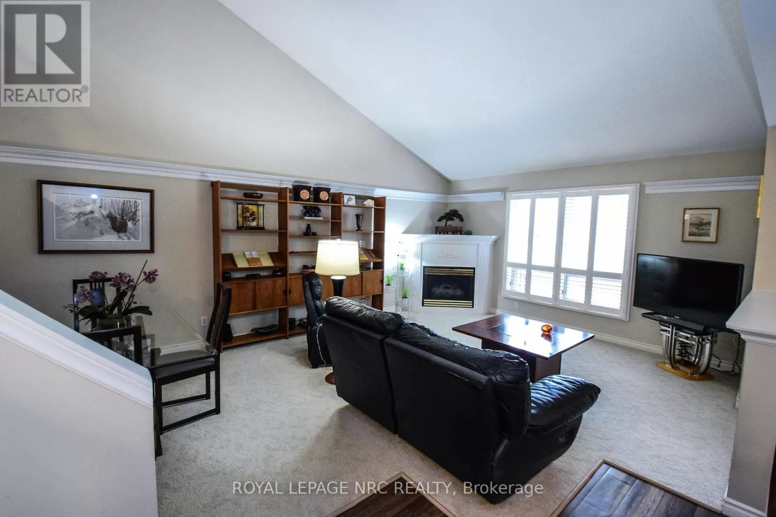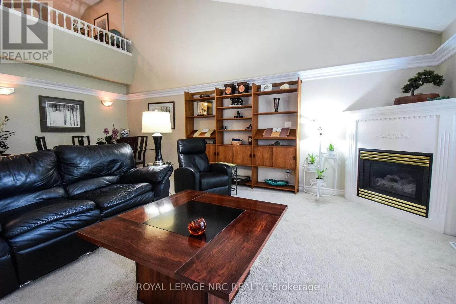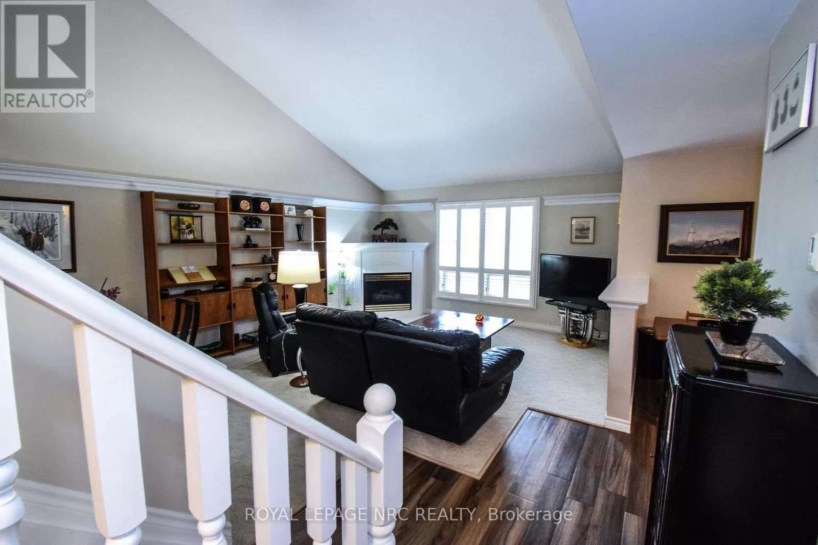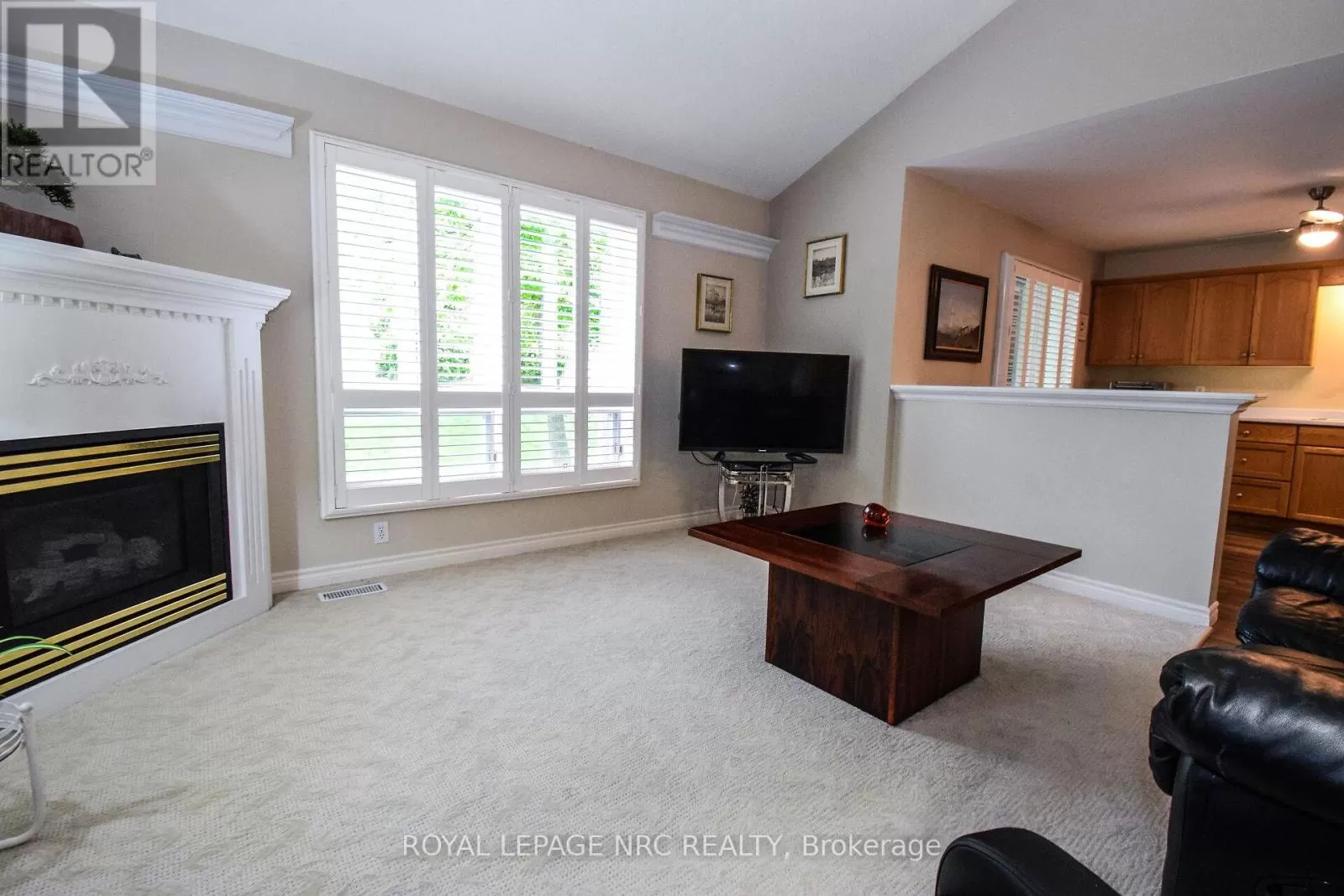 Cross Streets: Montrose Rd and Cardinal Dr or Monastery Dr. ** Directions: Montrose Rd to Cardinal Dr onto Monastery Dr. Welcome to Victoria Meadows! This charming bungaloft townhome is nestled in a quiet, well-maintained community in the highly sought-after Mount Carmel neighbourhood of Niagara Falls. Enjoy the convenience of an attached single-car garage with direct interior access. The main floor features a thoughtfully designed layout, including a spacious bedroom with a walk-in closet and a 4-piece bathroom with laundry hook-up (laundry currently located in the basement for added space). The kitchen boasts beautifully maintained oak cabinetry and opens onto a private backyard patio with a gazebo backing onto a treed area ideal for relaxing or entertaining. California shutters throughout add a touch of elegance while providing excellent light control. The open-concept living and dining area is bright and welcoming, featuring vaulted ceilings and a cozy corner fireplace that brings warmth and charm to the space. Upstairs, a versatile loft offers the perfect setting for a home office, den, or reading nook. The partially finished basement includes a large multipurpose room currently used for storage and equipped with its own dedicated breaker. This space could easily be transformed into a workshop, hobby room, or additional bedroom. The basement also features a designated hobby area, laundry area, and a rough-in for a future bathroom offering excellent potential to expand and customize to suit your needs. Owners are permitted up to two pets. Don't miss the opportunity to own a low-maintenance home in one of Niagara Falls most desirable neighbourhoods close to parks, shopping, and transit. (id:27476)