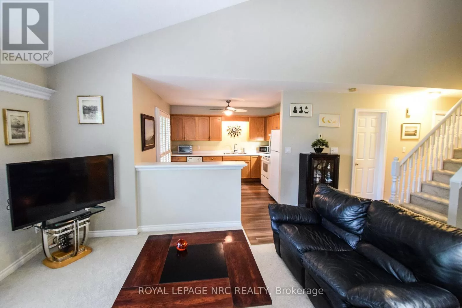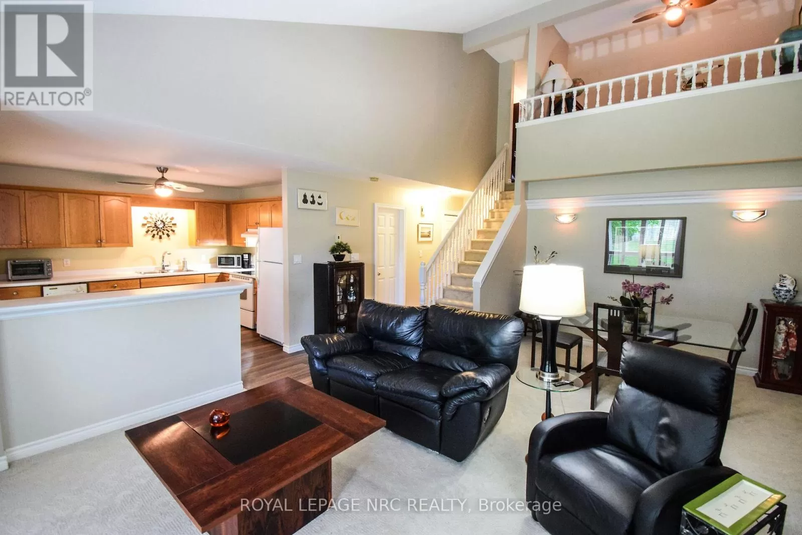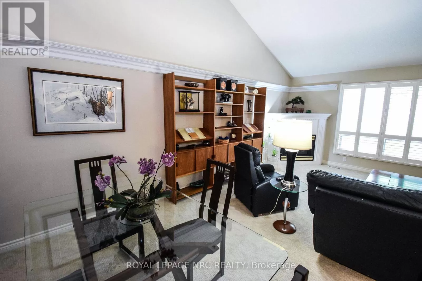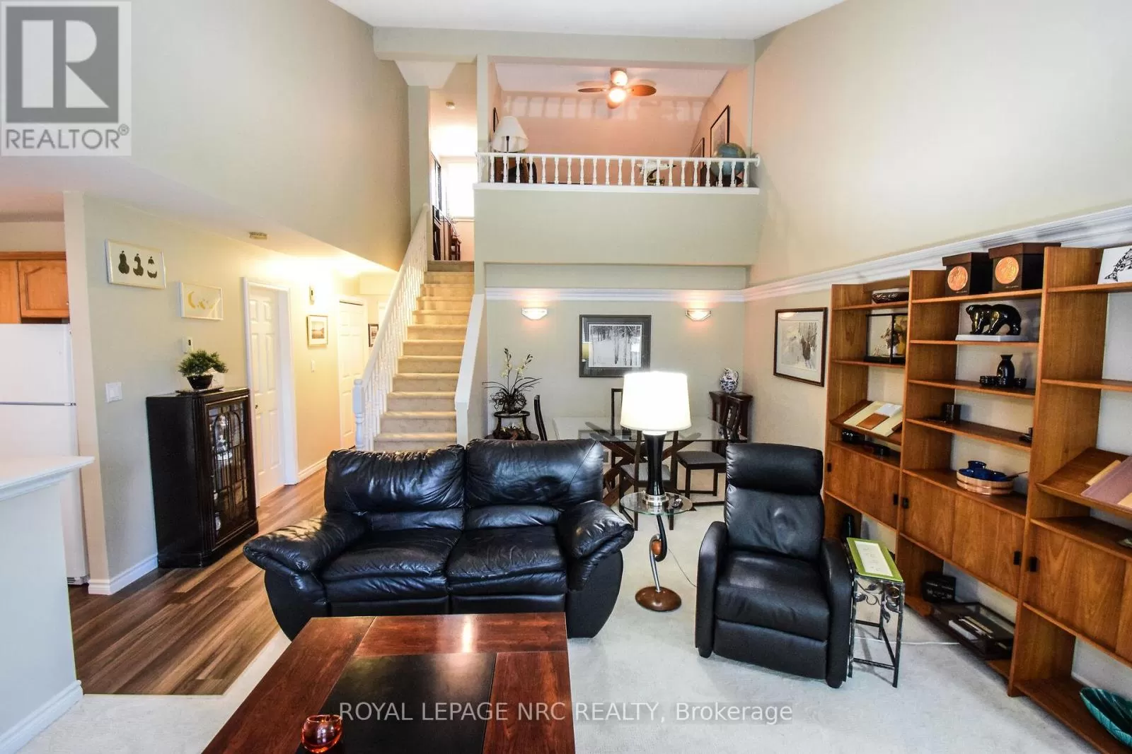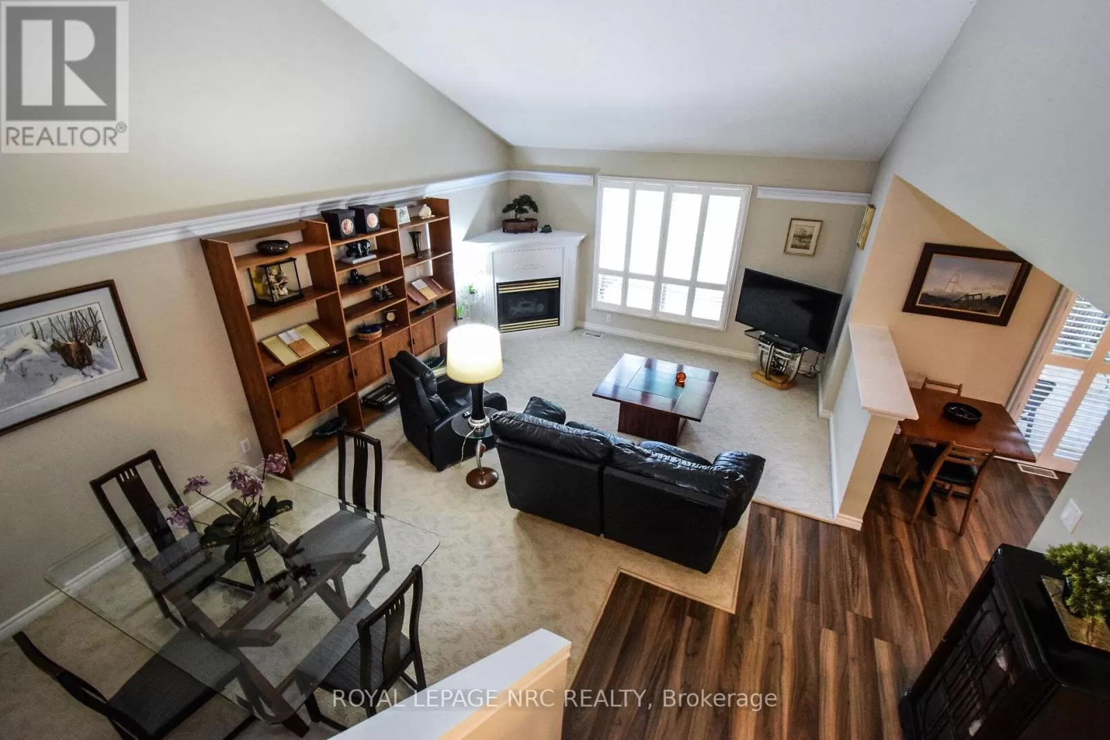 Cross Streets: Montrose Rd and Cardinal Dr or Monastery Dr. ** Directions: Montrose Rd to Cardinal Dr onto Monastery Dr. Welcome to Victoria Meadows! This charming bungaloft townhome is nestled in a quiet, well-maintained community in the highly sought-after Mount Carmel neighbourhood of Niagara Falls. Enjoy the convenience of an attached single-car garage with direct interior access. The main floor features a thoughtfully designed layout, including a spacious bedroom with a walk-in closet and a 4-piece bathroom with laundry hook-up (laundry currently located in the basement for added space). The kitchen boasts beautifully maintained oak cabinetry and opens onto a private backyard patio with a gazebo backing onto a treed area ideal for relaxing or entertaining. California shutters throughout add a touch of elegance while providing excellent light control. The open-concept living and dining area is bright and welcoming, featuring vaulted ceilings and a cozy corner fireplace that brings warmth and charm to the space. Upstairs, a versatile loft offers the perfect setting for a home office, den, or reading nook. The partially finished basement includes a large multipurpose room currently used for storage and equipped with its own dedicated breaker. This space could easily be transformed into a workshop, hobby room, or additional bedroom. The basement also features a designated hobby area, laundry area, and a rough-in for a future bathroom offering excellent potential to expand and customize to suit your needs. Owners are permitted up to two pets. Don't miss the opportunity to own a low-maintenance home in one of Niagara Falls most desirable neighbourhoods close to parks, shopping, and transit. (id:27476)