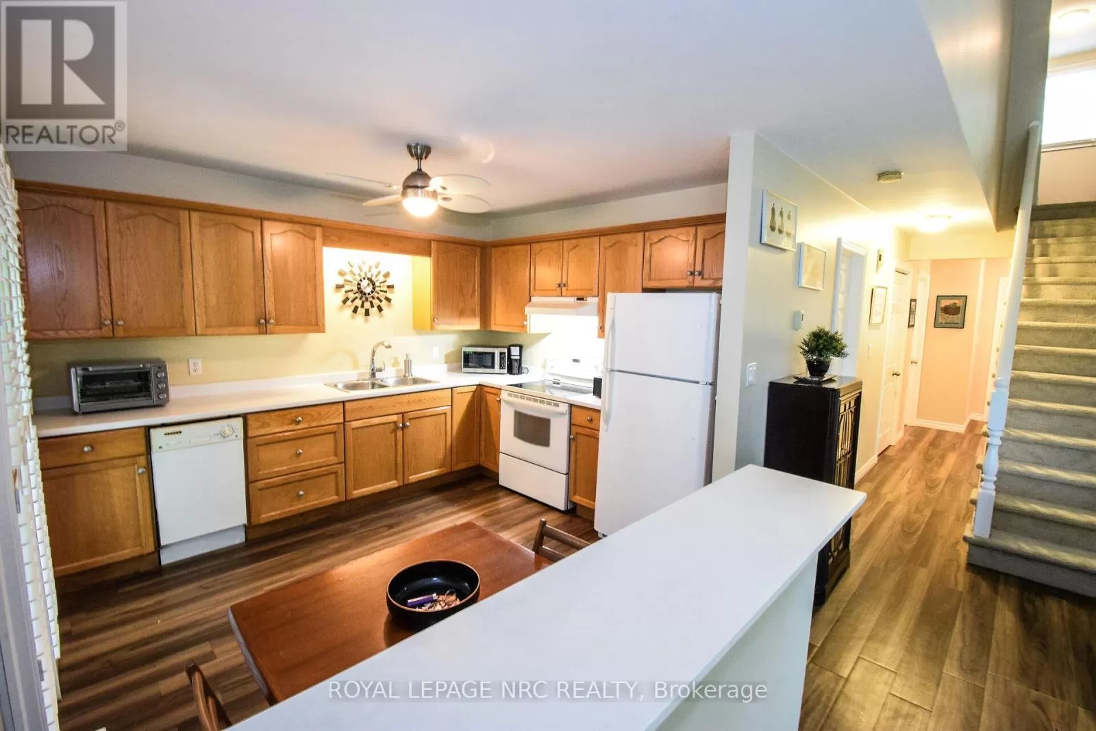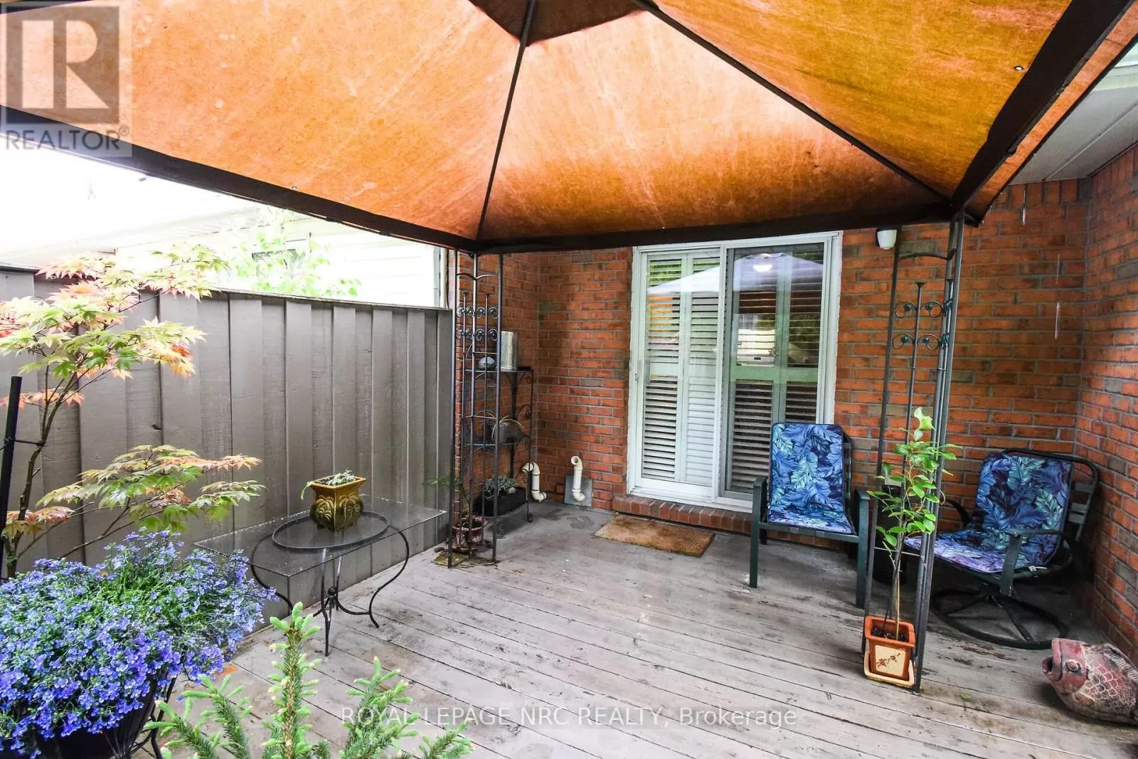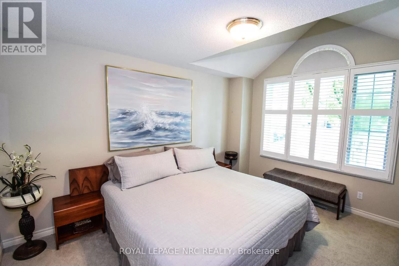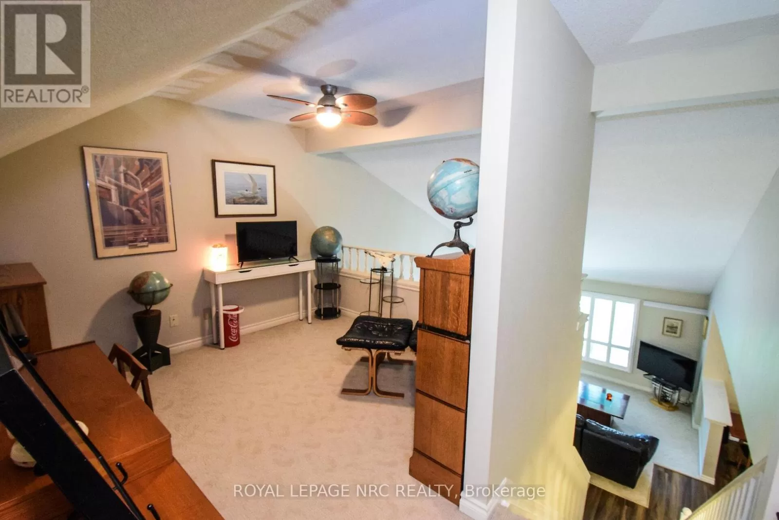 Cross Streets: Montrose Rd and Cardinal Dr or Monastery Dr. ** Directions: Montrose Rd to Cardinal Dr onto Monastery Dr. Welcome to Victoria Meadows! This charming bungaloft townhome is nestled in a quiet, well-maintained community in the highly sought-after Mount Carmel neighbourhood of Niagara Falls. Enjoy the convenience of an attached single-car garage with direct interior access. The main floor features a thoughtfully designed layout, including a spacious bedroom with a walk-in closet and a 4-piece bathroom with laundry hook-up (laundry currently located in the basement for added space). The kitchen boasts beautifully maintained oak cabinetry and opens onto a private backyard patio with a gazebo backing onto a treed area ideal for relaxing or entertaining. California shutters throughout add a touch of elegance while providing excellent light control. The open-concept living and dining area is bright and welcoming, featuring vaulted ceilings and a cozy corner fireplace that brings warmth and charm to the space. Upstairs, a versatile loft offers the perfect setting for a home office, den, or reading nook. The partially finished basement includes a large multipurpose room currently used for storage and equipped with its own dedicated breaker. This space could easily be transformed into a workshop, hobby room, or additional bedroom. The basement also features a designated hobby area, laundry area, and a rough-in for a future bathroom offering excellent potential to expand and customize to suit your needs. Owners are permitted up to two pets. Don't miss the opportunity to own a low-maintenance home in one of Niagara Falls most desirable neighbourhoods close to parks, shopping, and transit. (id:27476)