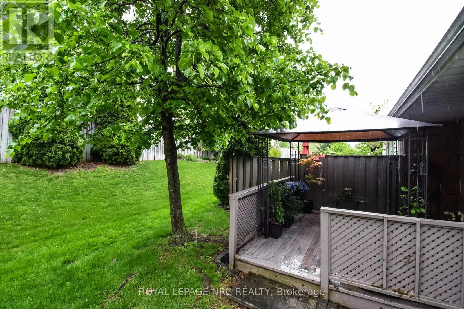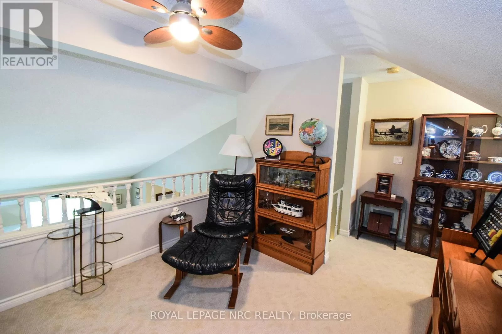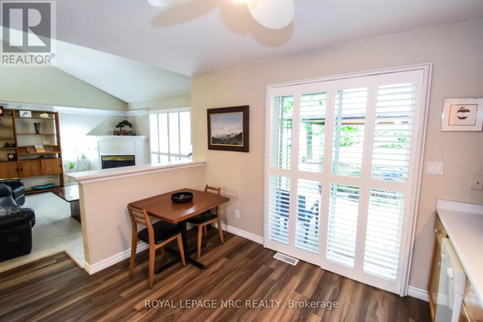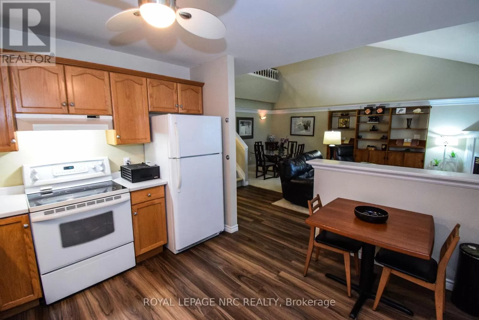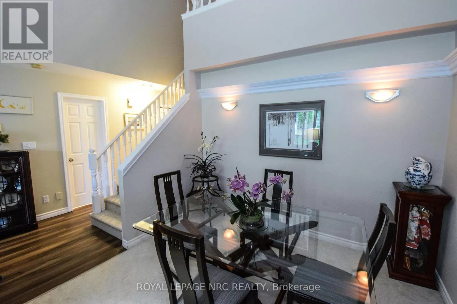 Cross Streets: Montrose Rd and Cardinal Dr or Monastery Dr. ** Directions: Montrose Rd to Cardinal Dr onto Monastery Dr. Welcome to Victoria Meadows! This charming bungaloft townhome is nestled in a quiet, well-maintained community in the highly sought-after Mount Carmel neighbourhood of Niagara Falls. Enjoy the convenience of an attached single-car garage with direct interior access. The main floor features a thoughtfully designed layout, including a spacious bedroom with a walk-in closet and a 4-piece bathroom with laundry hook-up (laundry currently located in the basement for added space). The kitchen boasts beautifully maintained oak cabinetry and opens onto a private backyard patio with a gazebo backing onto a treed area ideal for relaxing or entertaining. California shutters throughout add a touch of elegance while providing excellent light control. The open-concept living and dining area is bright and welcoming, featuring vaulted ceilings and a cozy corner fireplace that brings warmth and charm to the space. Upstairs, a versatile loft offers the perfect setting for a home office, den, or reading nook. The partially finished basement includes a large multipurpose room currently used for storage and equipped with its own dedicated breaker. This space could easily be transformed into a workshop, hobby room, or additional bedroom. The basement also features a designated hobby area, laundry area, and a rough-in for a future bathroom offering excellent potential to expand and customize to suit your needs. Owners are permitted up to two pets. Don't miss the opportunity to own a low-maintenance home in one of Niagara Falls most desirable neighbourhoods close to parks, shopping, and transit. (id:27476)