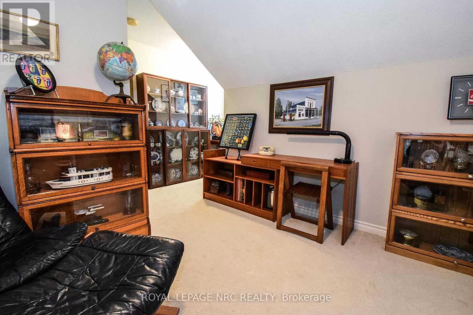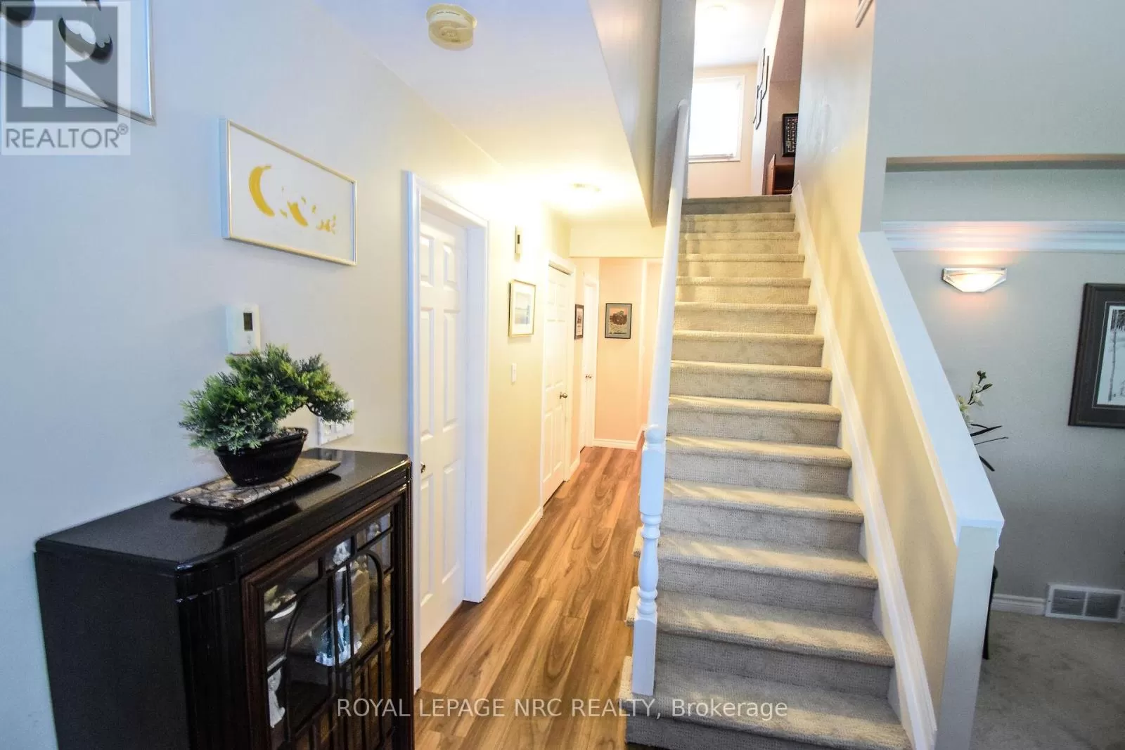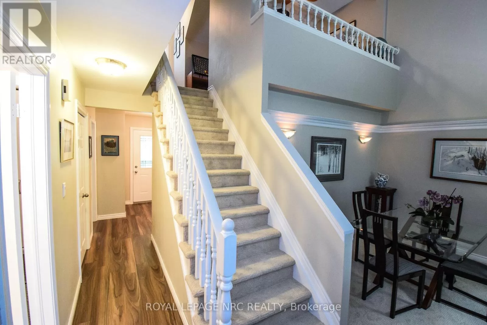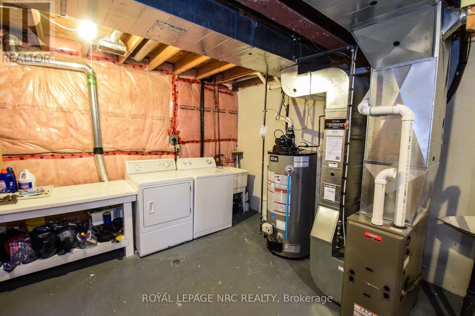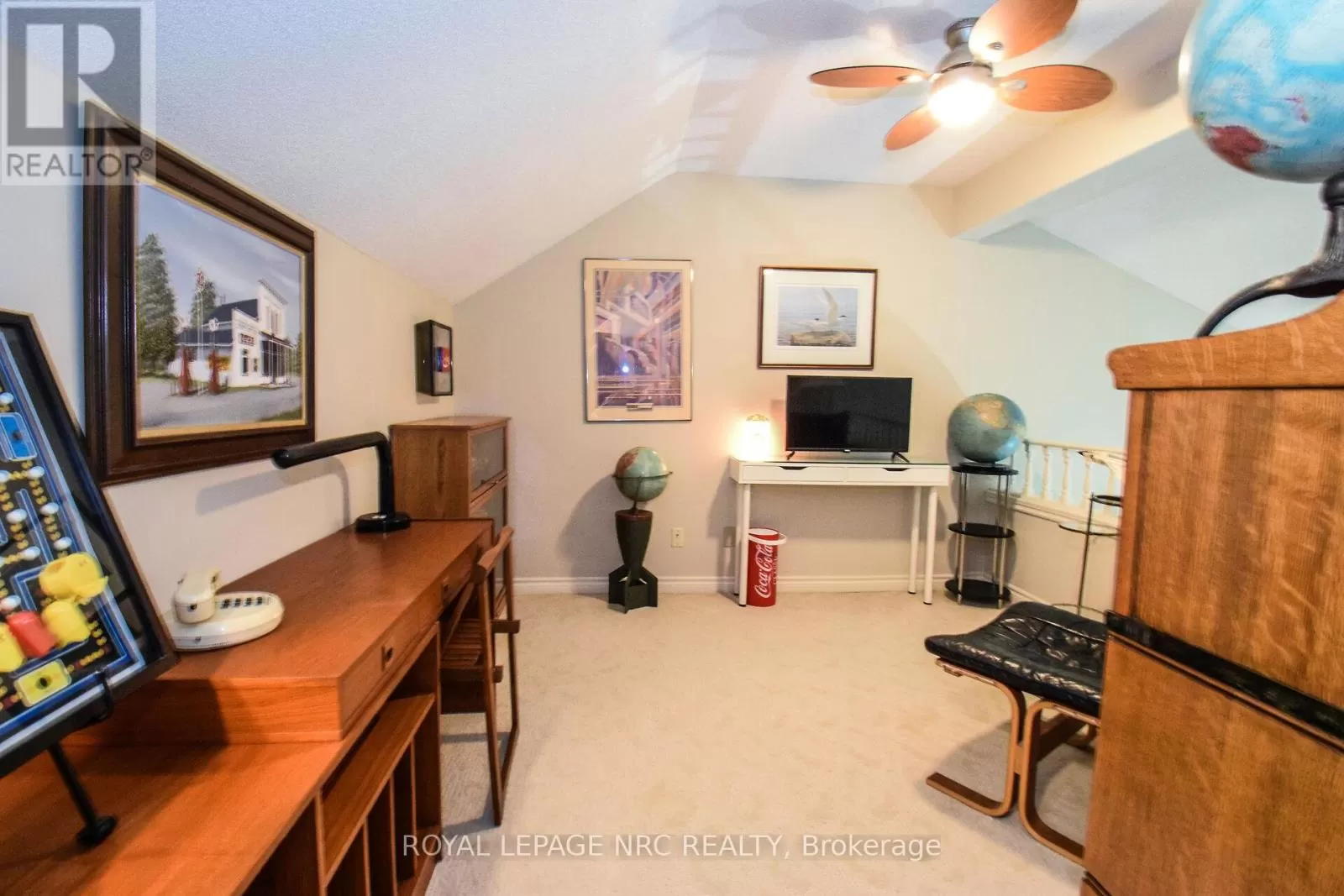 Cross Streets: Montrose Rd and Cardinal Dr or Monastery Dr. ** Directions: Montrose Rd to Cardinal Dr onto Monastery Dr. Welcome to Victoria Meadows! This charming bungaloft townhome is nestled in a quiet, well-maintained community in the highly sought-after Mount Carmel neighbourhood of Niagara Falls. Enjoy the convenience of an attached single-car garage with direct interior access. The main floor features a thoughtfully designed layout, including a spacious bedroom with a walk-in closet and a 4-piece bathroom with laundry hook-up (laundry currently located in the basement for added space). The kitchen boasts beautifully maintained oak cabinetry and opens onto a private backyard patio with a gazebo backing onto a treed area ideal for relaxing or entertaining. California shutters throughout add a touch of elegance while providing excellent light control. The open-concept living and dining area is bright and welcoming, featuring vaulted ceilings and a cozy corner fireplace that brings warmth and charm to the space. Upstairs, a versatile loft offers the perfect setting for a home office, den, or reading nook. The partially finished basement includes a large multipurpose room currently used for storage and equipped with its own dedicated breaker. This space could easily be transformed into a workshop, hobby room, or additional bedroom. The basement also features a designated hobby area, laundry area, and a rough-in for a future bathroom offering excellent potential to expand and customize to suit your needs. Owners are permitted up to two pets. Don't miss the opportunity to own a low-maintenance home in one of Niagara Falls most desirable neighbourhoods close to parks, shopping, and transit. (id:27476)