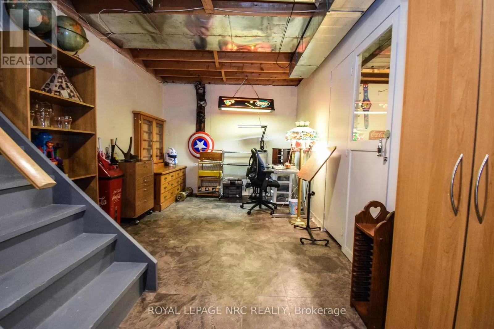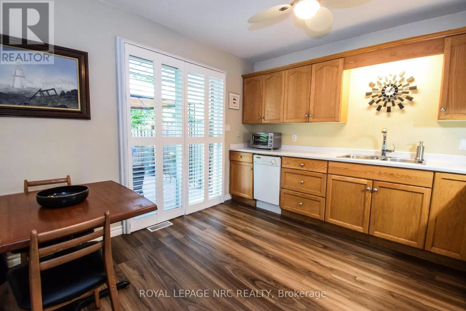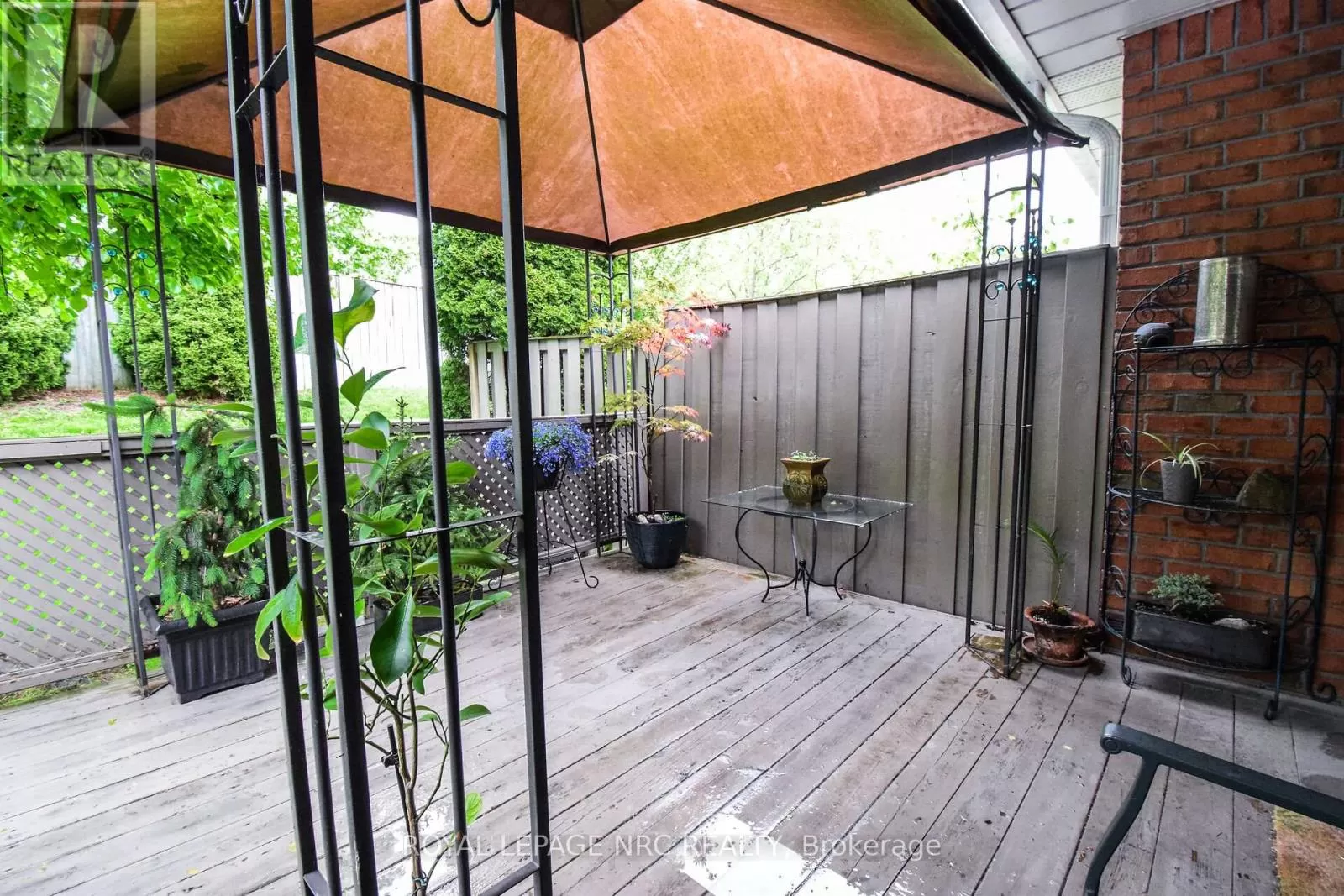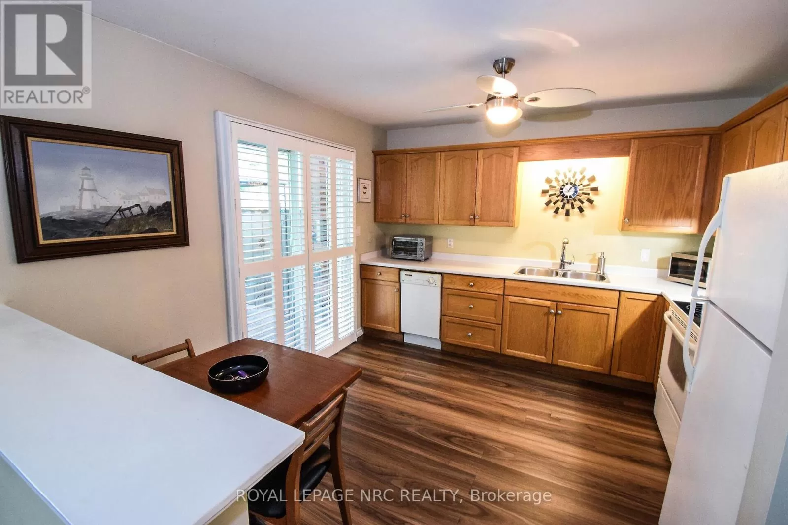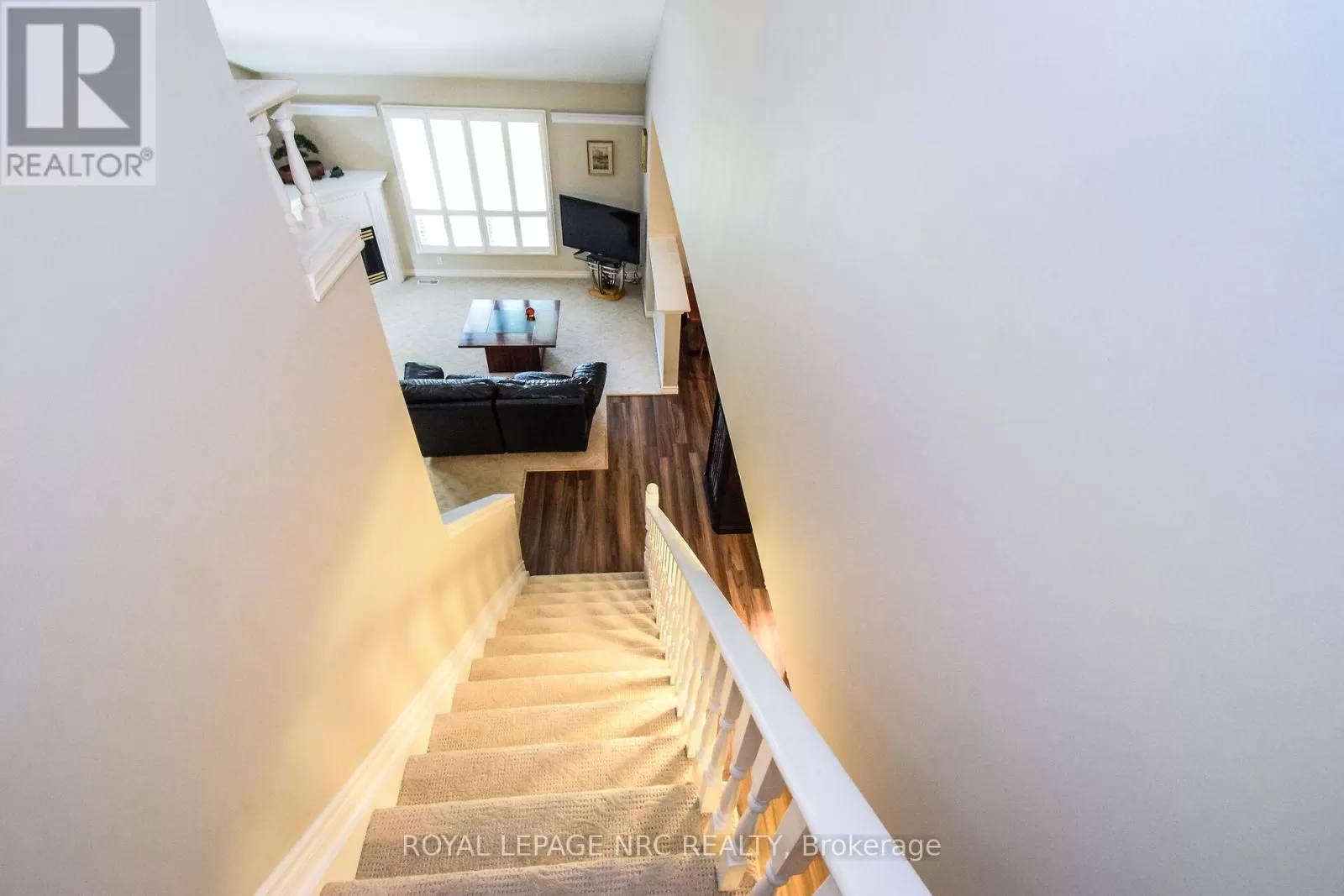 Cross Streets: Montrose Rd and Cardinal Dr or Monastery Dr. ** Directions: Montrose Rd to Cardinal Dr onto Monastery Dr. Welcome to Victoria Meadows! This charming bungaloft townhome is nestled in a quiet, well-maintained community in the highly sought-after Mount Carmel neighbourhood of Niagara Falls. Enjoy the convenience of an attached single-car garage with direct interior access. The main floor features a thoughtfully designed layout, including a spacious bedroom with a walk-in closet and a 4-piece bathroom with laundry hook-up (laundry currently located in the basement for added space). The kitchen boasts beautifully maintained oak cabinetry and opens onto a private backyard patio with a gazebo backing onto a treed area ideal for relaxing or entertaining. California shutters throughout add a touch of elegance while providing excellent light control. The open-concept living and dining area is bright and welcoming, featuring vaulted ceilings and a cozy corner fireplace that brings warmth and charm to the space. Upstairs, a versatile loft offers the perfect setting for a home office, den, or reading nook. The partially finished basement includes a large multipurpose room currently used for storage and equipped with its own dedicated breaker. This space could easily be transformed into a workshop, hobby room, or additional bedroom. The basement also features a designated hobby area, laundry area, and a rough-in for a future bathroom offering excellent potential to expand and customize to suit your needs. Owners are permitted up to two pets. Don't miss the opportunity to own a low-maintenance home in one of Niagara Falls most desirable neighbourhoods close to parks, shopping, and transit. (id:27476)