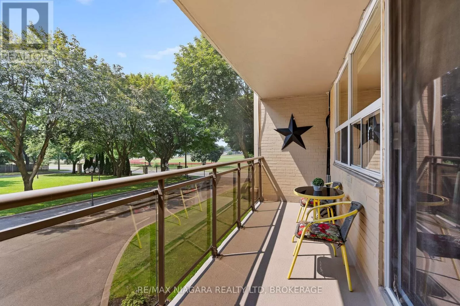 Cross Streets: THOROLD STONE & DORCHESTER. ** Directions: DORCHESTER TO HUGGINS. Welcome to one of the most desirable units at the highly sought-after Stamford Place condos in the heart of Stamford Centre, Niagara Falls. This updated second-floor unit offers 2 bedrooms, in-unit laundry, modern flooring throughout, and an eat-in kitchen with a convenient breakfast bar and space for bar stools. The layout is bright and comfortable, featuring a recently resurfaced balcony with peaceful views of mature trees and the A.N. Myer Secondary School field, along with ductless A/C for year-round comfort. A rare bonus, this unit includes two owned side-by-side parking spots. Located in one of Niagara Falls most vibrant and established neighbourhoods, Stamford Centre offers the perfect blend of convenience, community, and culture. Just steps from your door, you'll find grocery stores, banks, cafés, and essential services, as well as Stamford Lions Park, Firemen's Park, and the beautifully renovated Stamford Centre Library. Families will love the proximity to top-rated schools including A.N. Myer, Stamford Collegiate, and Saint Michael Catholic High School. You're also just minutes from wine country, with world-renowned wineries, vineyards, and scenic drives a short trip away. The area boasts easy access to public transit, the QEW, and some of Niagara's best shopping, dining, and cultural destinations including the Niagara Falls Art Gallery, the Convention Centre, and the Clifton Hill tourist district. Whether you're looking to downsize or invest, this is more than just a condo, its a lifestyle in one of Niagara's most connected and community-focused locations. (id:27476)