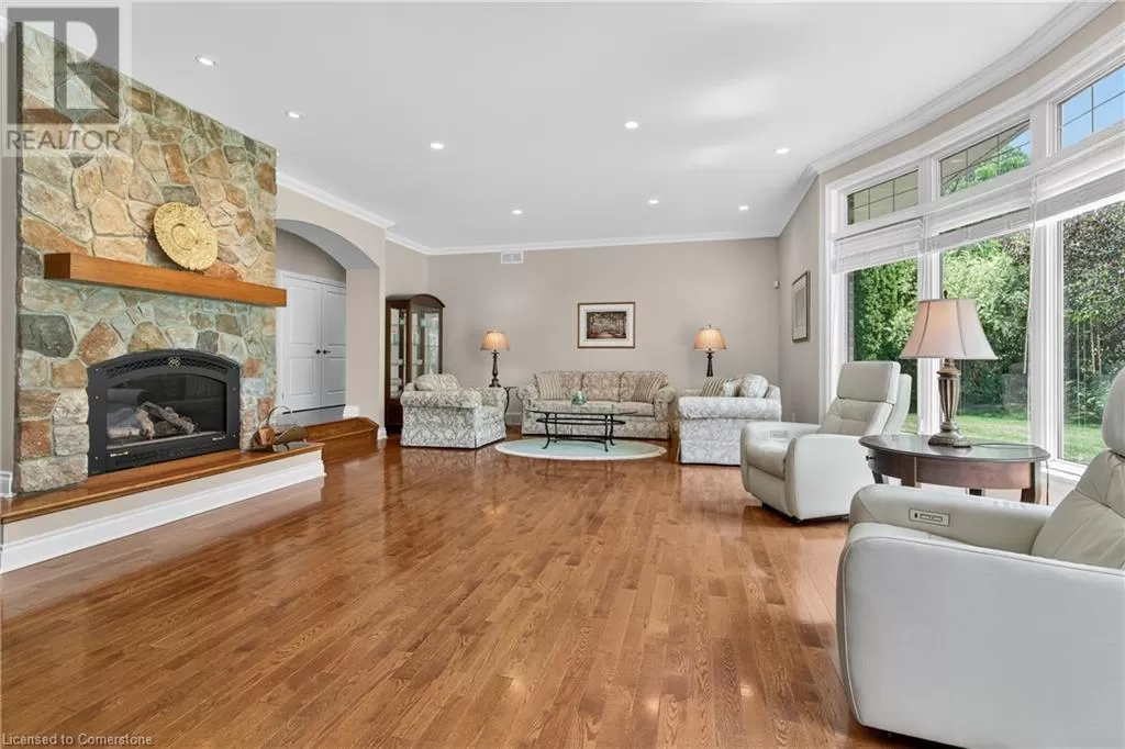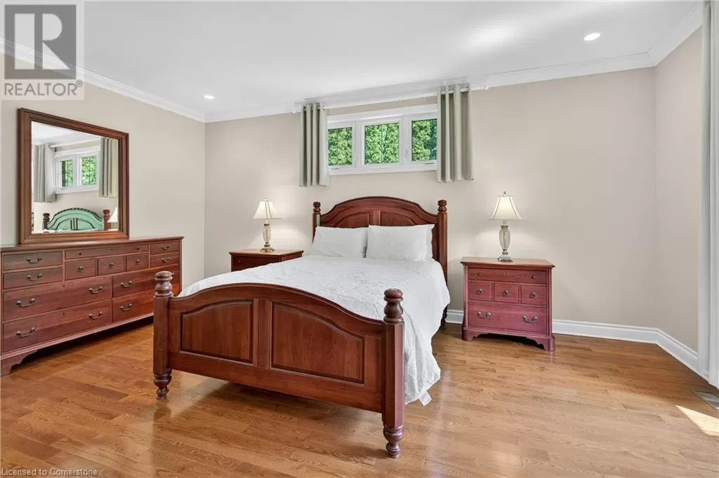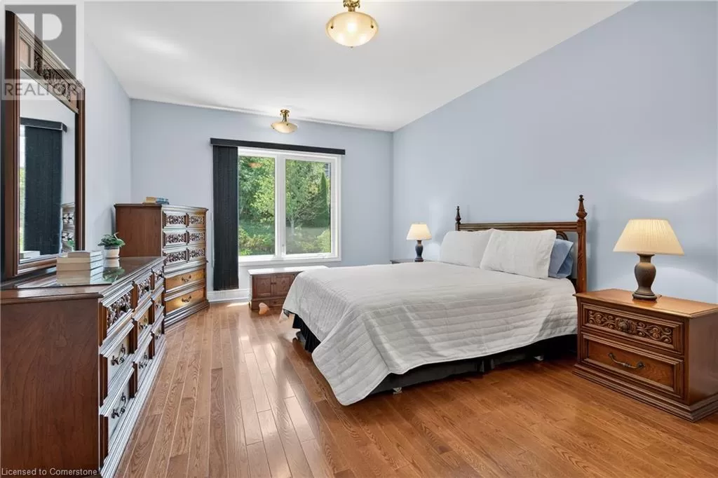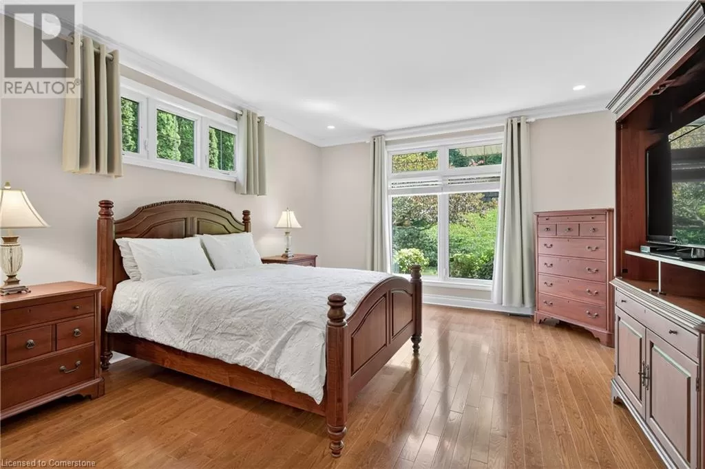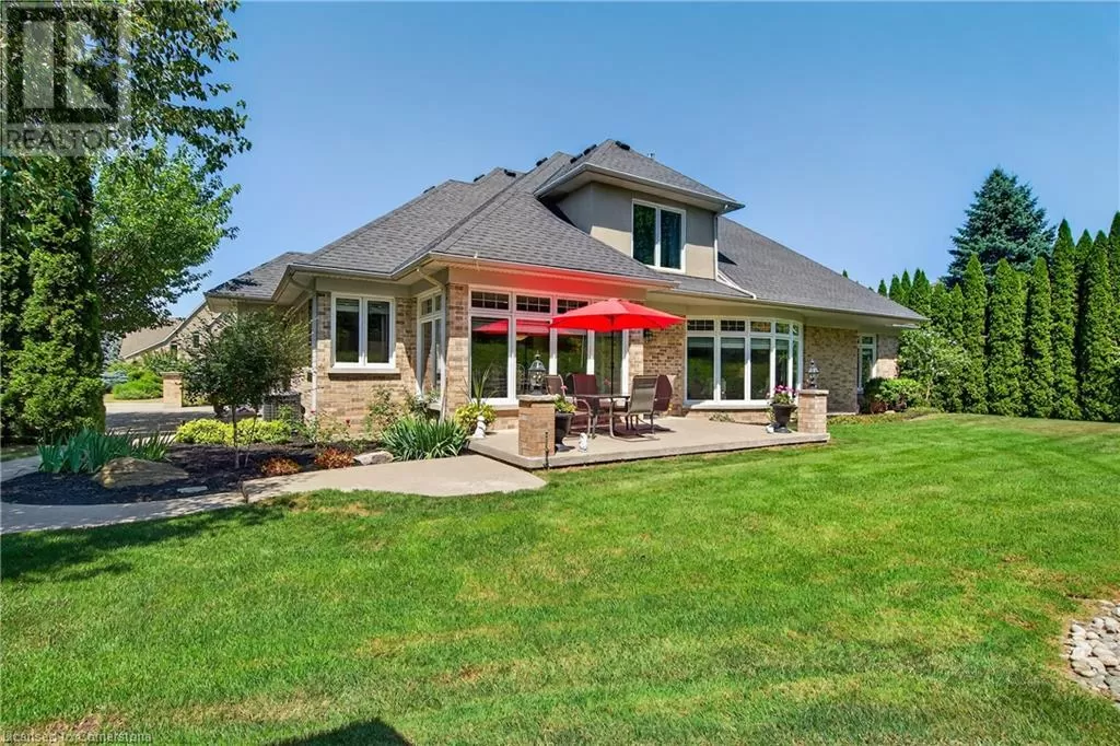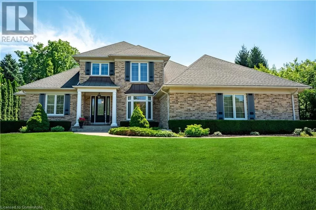 Mountain Rd to January Dr to Calaguiro to Christine Crt Tucked away on a quiet court in Niagara Falls' Calaguiro Estates neighbourhood, this timeless estate offers elegance, comfort, and natural beauty in equal measure. From the moment you step inside, youâre greeted by beautiful hardwood floors, expansive bay windows that flood the space with natural light, and a striking feature stone fireplace that anchors the cozy family room. The main-floor boasts a luxurious primary suite complete with a spa-inspired 6 piece ensuite bath â your personal sanctuary. The spacious kitchen is ideal for the home chef, offering ample counter space, generous cabinetry, and a charming breakfast nook surrounded by oversized windows with views of your private backyard retreat. Enjoy the ease of a large main floor laundry room with plenty of built-in storage. Upstairs, youâll find and additional 3 generously sized bedrooms. The open-concept, partially finished basement features large windows and offers endless potential for additional living space, entertainment, or home office use. Step outside into your beautifully landscaped backyard oasis, backing onto a wooded area that provides privacy, tranquility, and a connection to nature rarely found within city limits. This is a rare opportunity to own a classic, well-appointed home in a serene setting â just minutes from local amenities, top-rated schools, and the scenic wonders of Niagara. (id:27476)