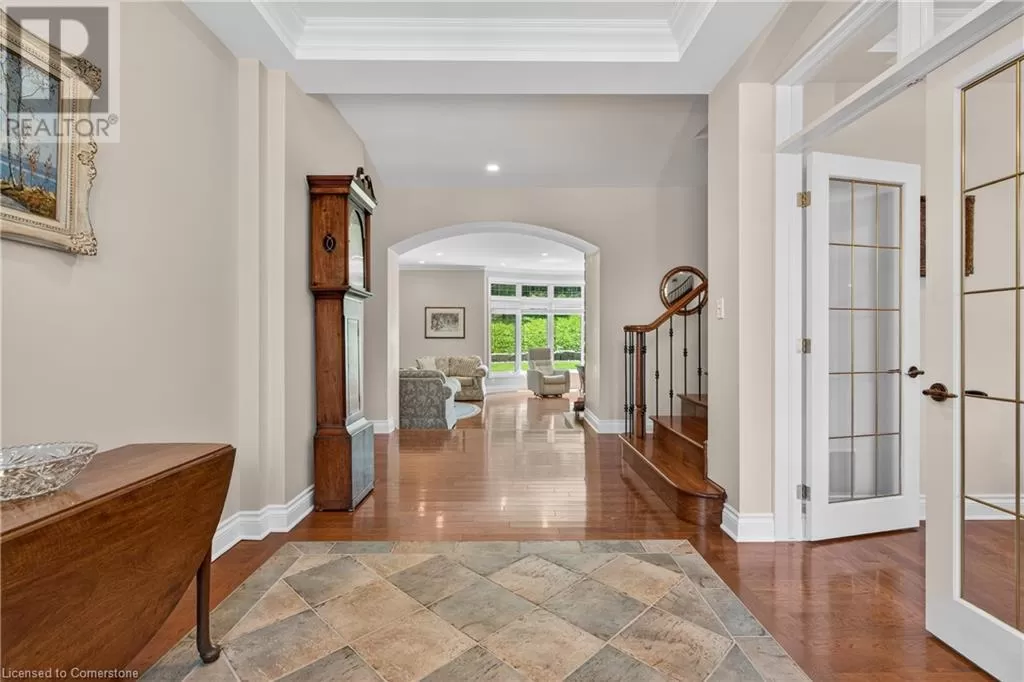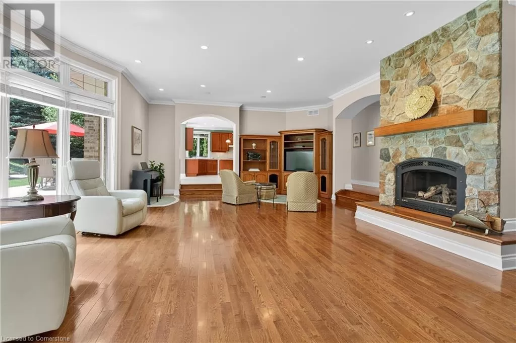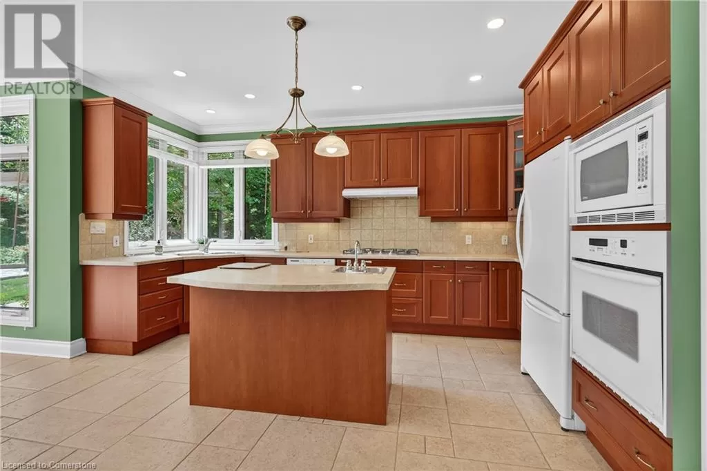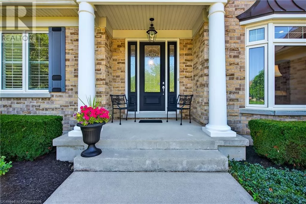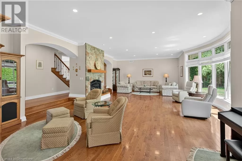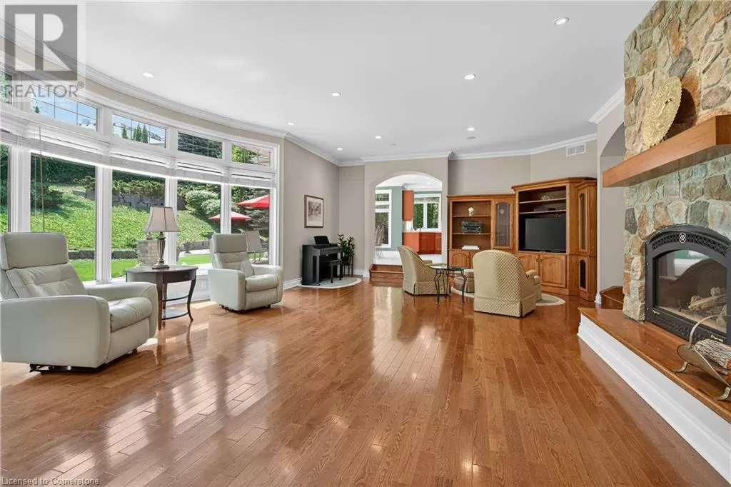 Mountain Rd to January Dr to Calaguiro to Christine Crt Tucked away on a quiet court in Niagara Falls' Calaguiro Estates neighbourhood, this timeless estate offers elegance, comfort, and natural beauty in equal measure. From the moment you step inside, youâre greeted by beautiful hardwood floors, expansive bay windows that flood the space with natural light, and a striking feature stone fireplace that anchors the cozy family room. The main-floor boasts a luxurious primary suite complete with a spa-inspired 6 piece ensuite bath â your personal sanctuary. The spacious kitchen is ideal for the home chef, offering ample counter space, generous cabinetry, and a charming breakfast nook surrounded by oversized windows with views of your private backyard retreat. Enjoy the ease of a large main floor laundry room with plenty of built-in storage. Upstairs, youâll find and additional 3 generously sized bedrooms. The open-concept, partially finished basement features large windows and offers endless potential for additional living space, entertainment, or home office use. Step outside into your beautifully landscaped backyard oasis, backing onto a wooded area that provides privacy, tranquility, and a connection to nature rarely found within city limits. This is a rare opportunity to own a classic, well-appointed home in a serene setting â just minutes from local amenities, top-rated schools, and the scenic wonders of Niagara. (id:27476)