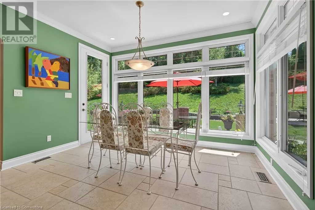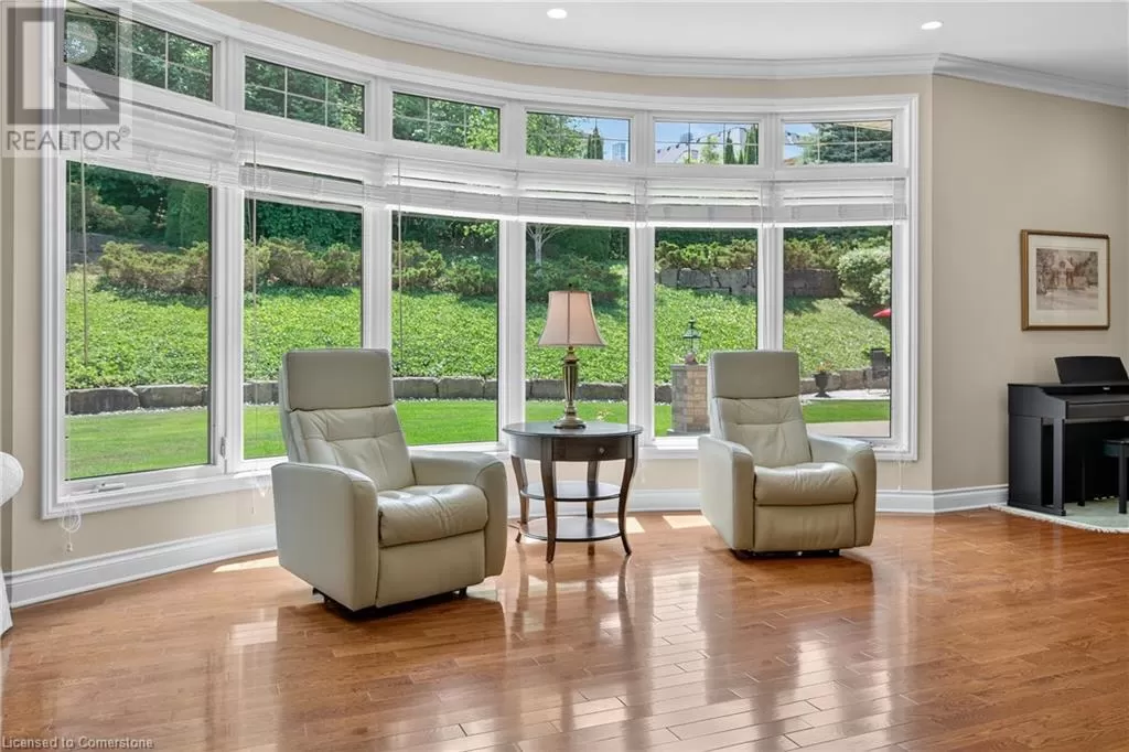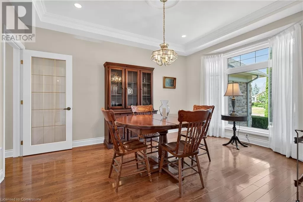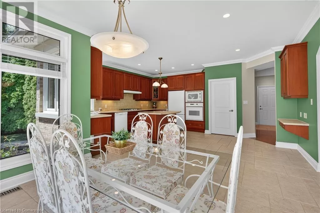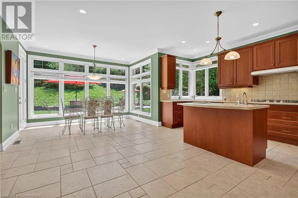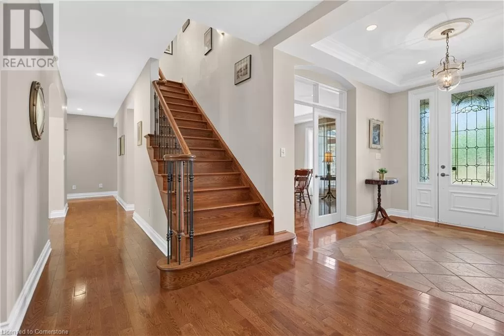 Mountain Rd to January Dr to Calaguiro to Christine Crt Tucked away on a quiet court in Niagara Falls' Calaguiro Estates neighbourhood, this timeless estate offers elegance, comfort, and natural beauty in equal measure. From the moment you step inside, youâre greeted by beautiful hardwood floors, expansive bay windows that flood the space with natural light, and a striking feature stone fireplace that anchors the cozy family room. The main-floor boasts a luxurious primary suite complete with a spa-inspired 6 piece ensuite bath â your personal sanctuary. The spacious kitchen is ideal for the home chef, offering ample counter space, generous cabinetry, and a charming breakfast nook surrounded by oversized windows with views of your private backyard retreat. Enjoy the ease of a large main floor laundry room with plenty of built-in storage. Upstairs, youâll find and additional 3 generously sized bedrooms. The open-concept, partially finished basement features large windows and offers endless potential for additional living space, entertainment, or home office use. Step outside into your beautifully landscaped backyard oasis, backing onto a wooded area that provides privacy, tranquility, and a connection to nature rarely found within city limits. This is a rare opportunity to own a classic, well-appointed home in a serene setting â just minutes from local amenities, top-rated schools, and the scenic wonders of Niagara. (id:27476)