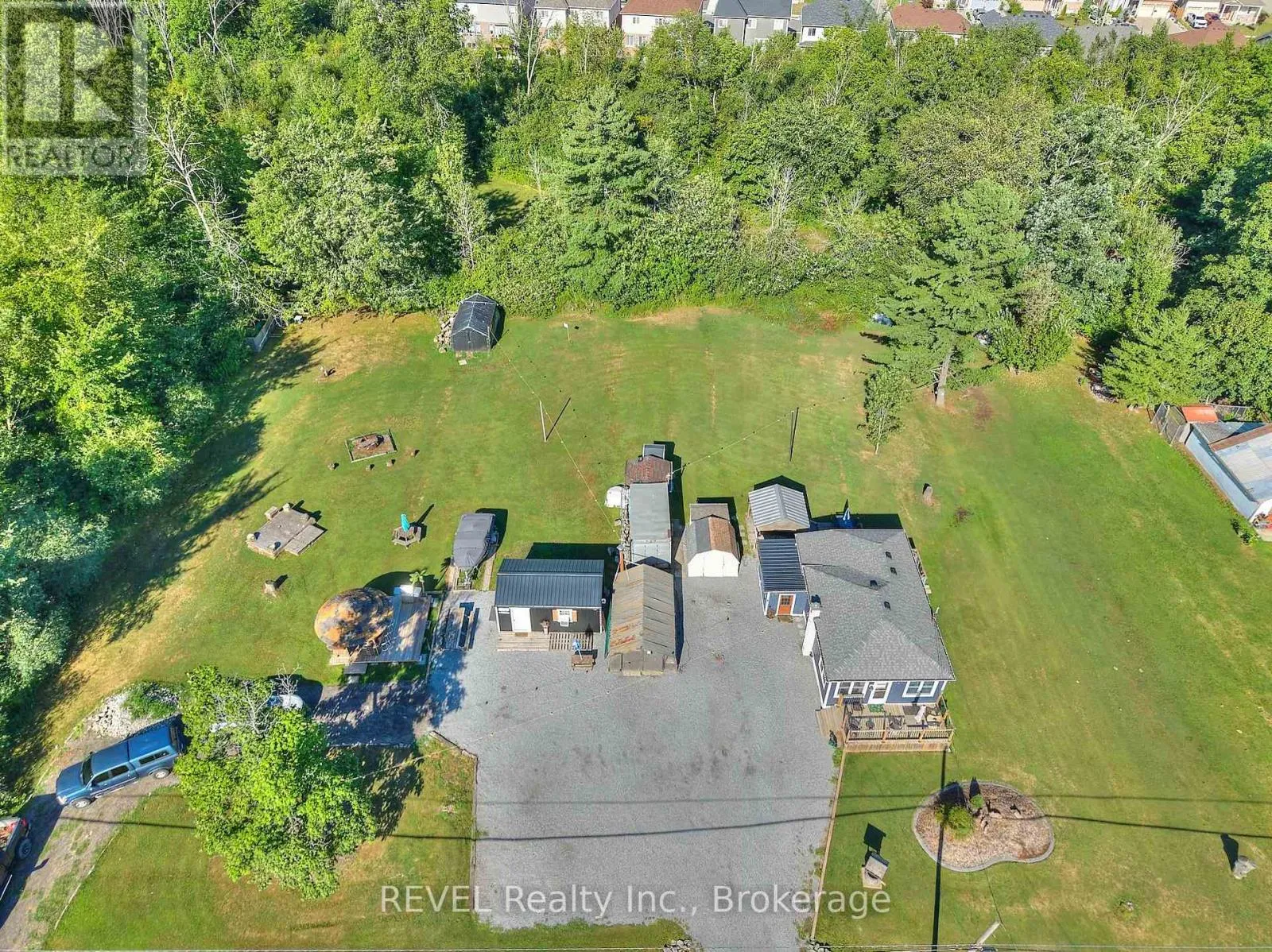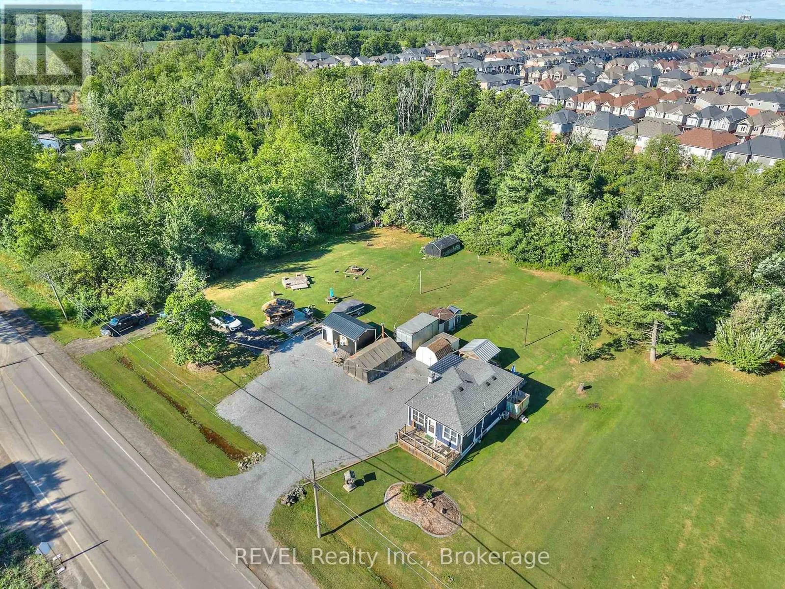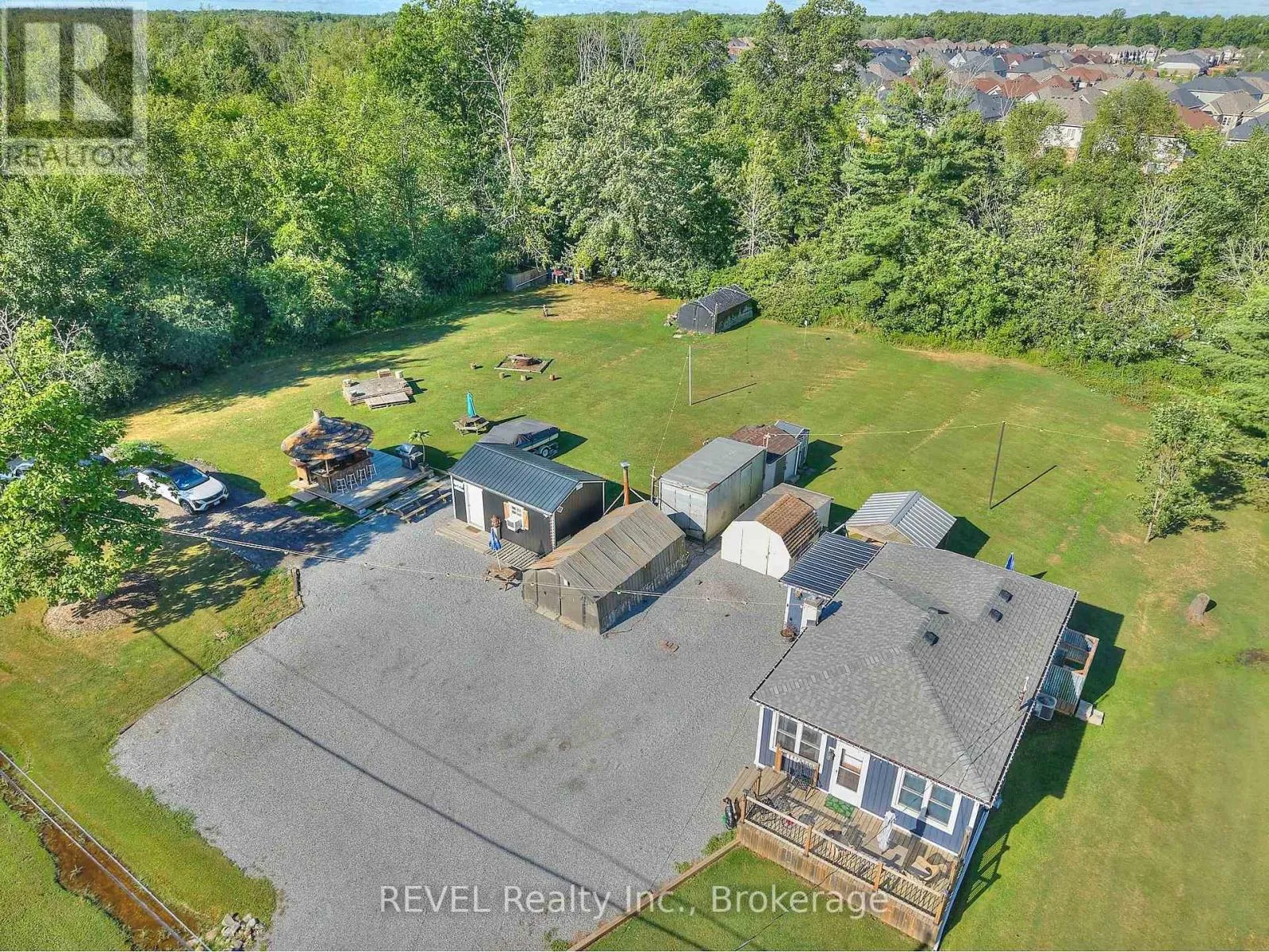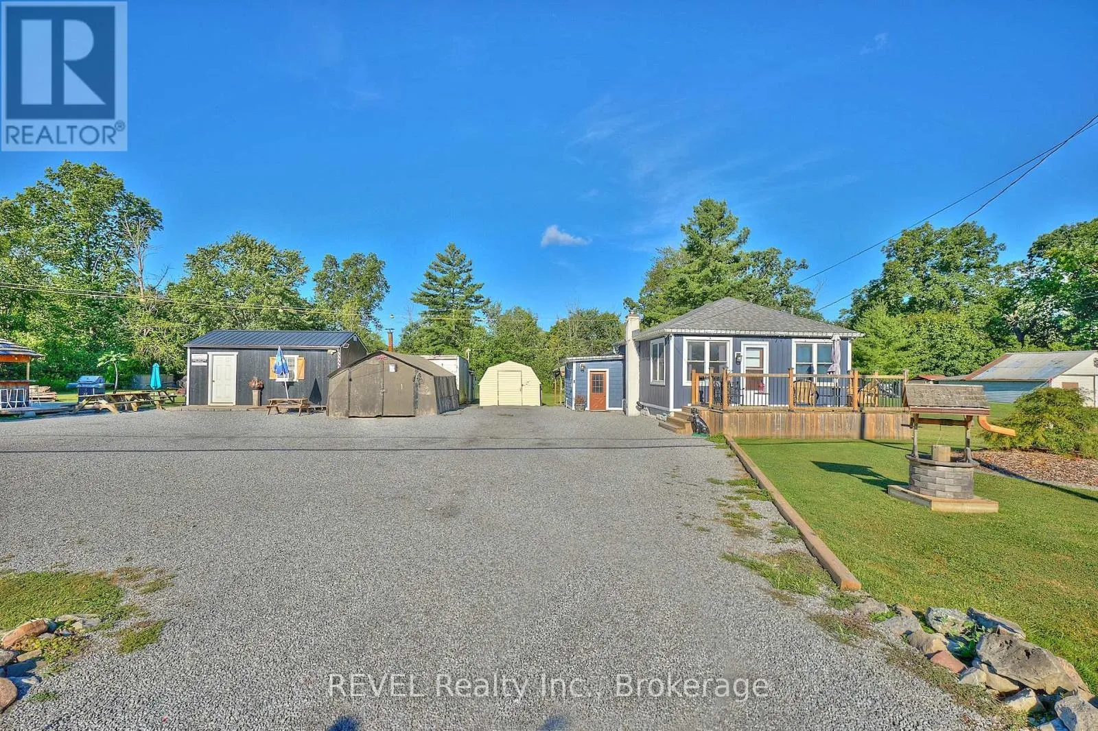 Cross Streets: Lyon's Creek and Sodom. ** Directions: Exit Lyon's Creek Rd from the QEW, turn east. Turn south on Sodom Rd. Welcome to 9197 Sodom Road, Niagara Falls a versatile property just shy of 1 acre in Chippawa. This 2-bedroom bungalow features a kitchen with a live edge countertop and walkout to the patio, a convenient mudroom entry, and an exterior shower. A separate office building with A/C provides additional workspace, complemented by 4 sheds and a shipping container for storage or hobby use. One of the sheds even includes a wood fireplace. Located near new developments, including the upcoming arena expansion and beautiful new homes sub-division, this property offers excellent potential for a builder, business owner, or anyone seeking more space. Chippawa Creek and boat launch are nearby. Property is being sold as is. Buyer to perform due diligence. (id:27476)