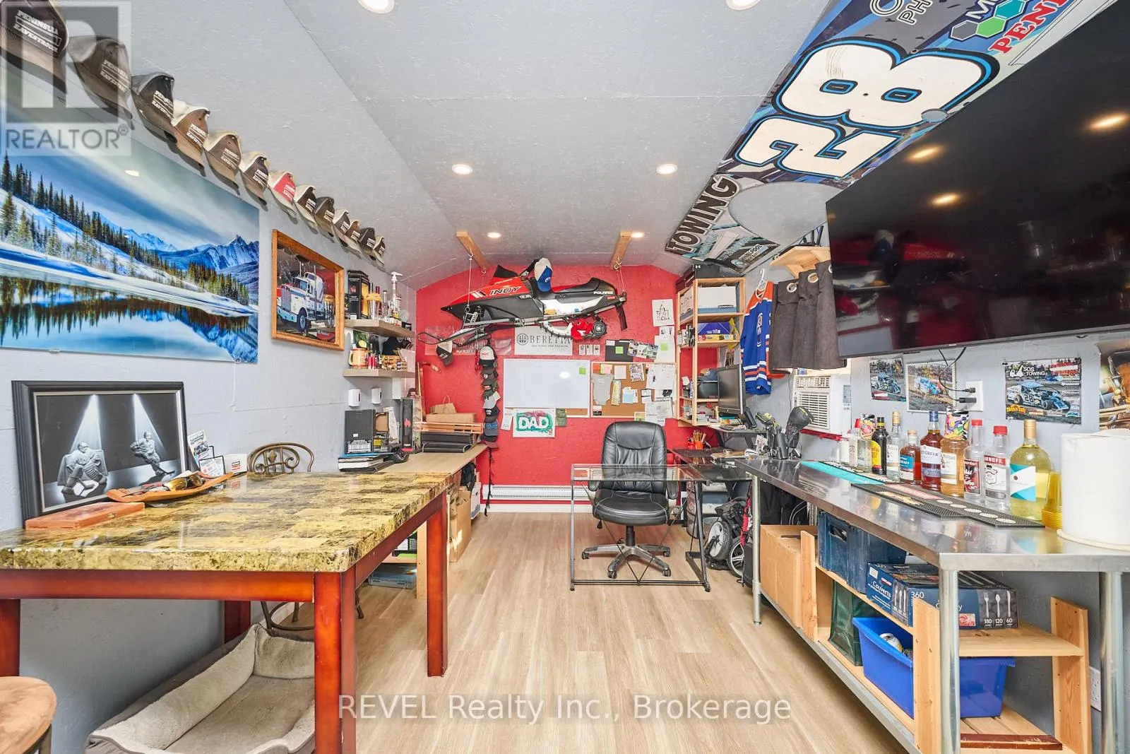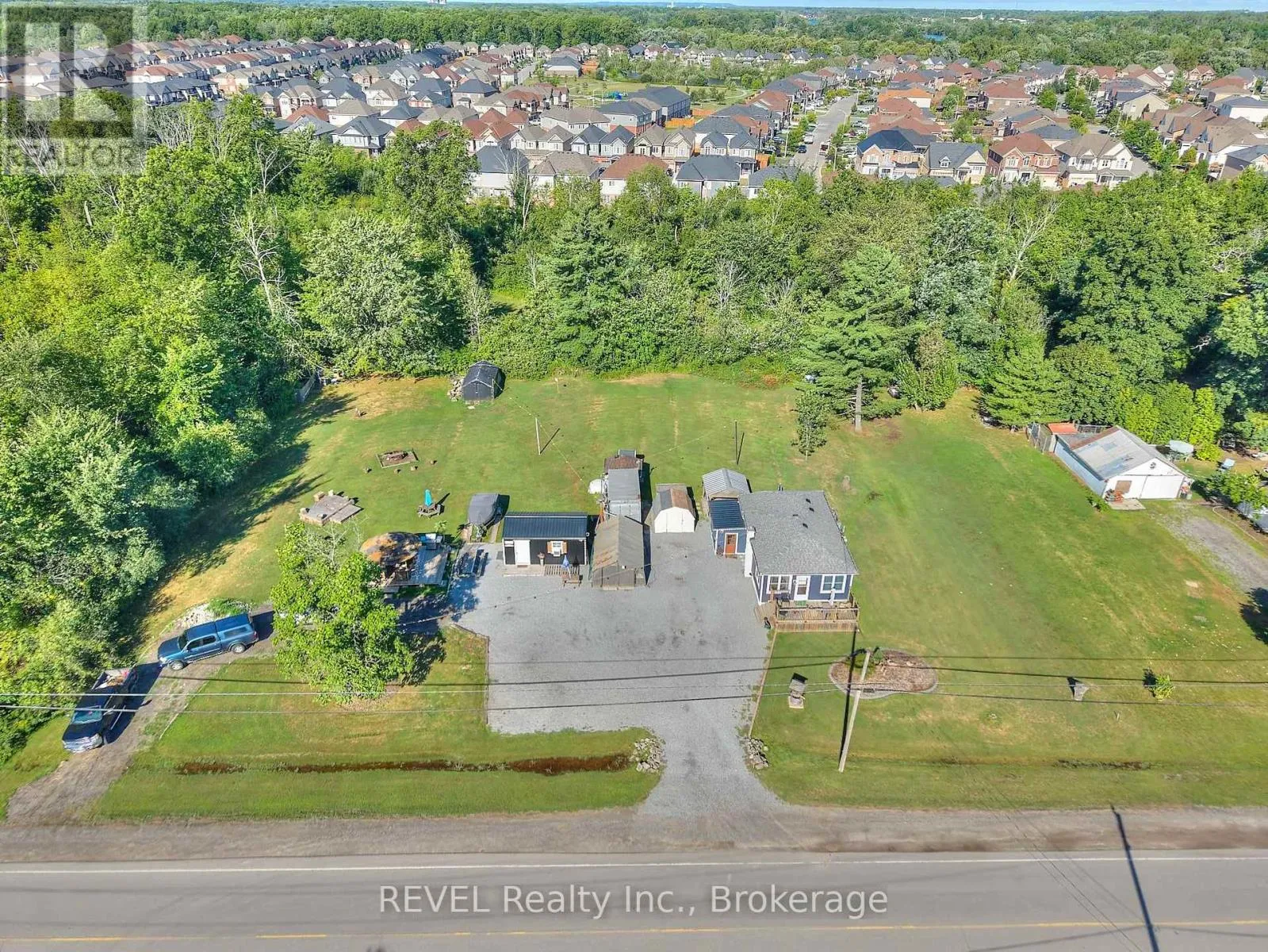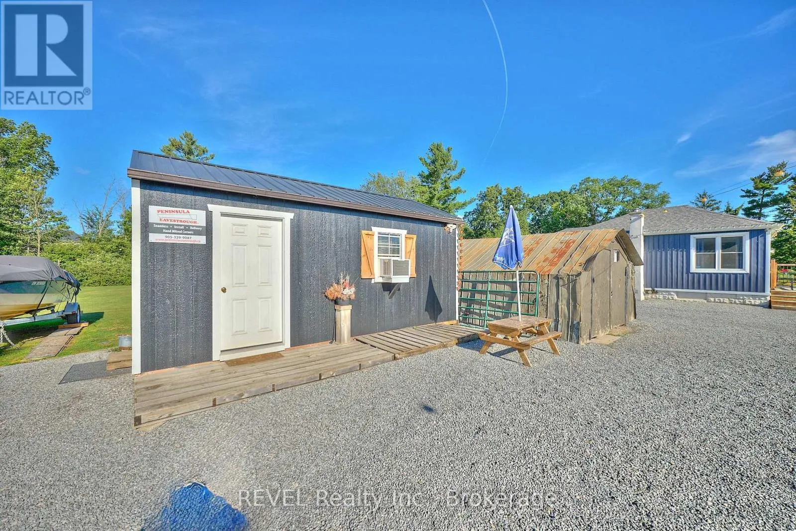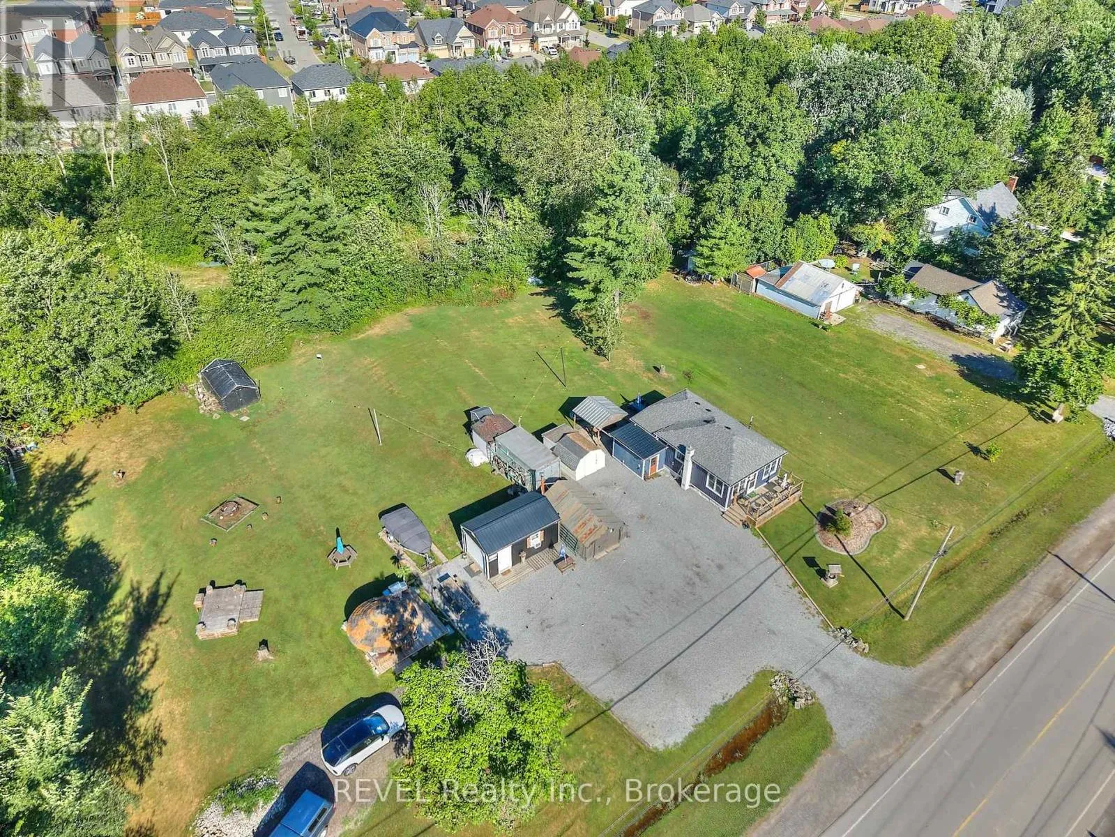 Cross Streets: Lyon's Creek and Sodom. ** Directions: Exit Lyon's Creek Rd from the QEW, turn east. Turn south on Sodom Rd. Welcome to 9197 Sodom Road, Niagara Falls a versatile property just shy of 1 acre in Chippawa. This 2-bedroom bungalow features a kitchen with a live edge countertop and walkout to the patio, a convenient mudroom entry, and an exterior shower. A separate office building with A/C provides additional workspace, complemented by 4 sheds and a shipping container for storage or hobby use. One of the sheds even includes a wood fireplace. Located near new developments, including the upcoming arena expansion and beautiful new homes sub-division, this property offers excellent potential for a builder, business owner, or anyone seeking more space. Chippawa Creek and boat launch are nearby. Property is being sold as is. Buyer to perform due diligence. (id:27476)