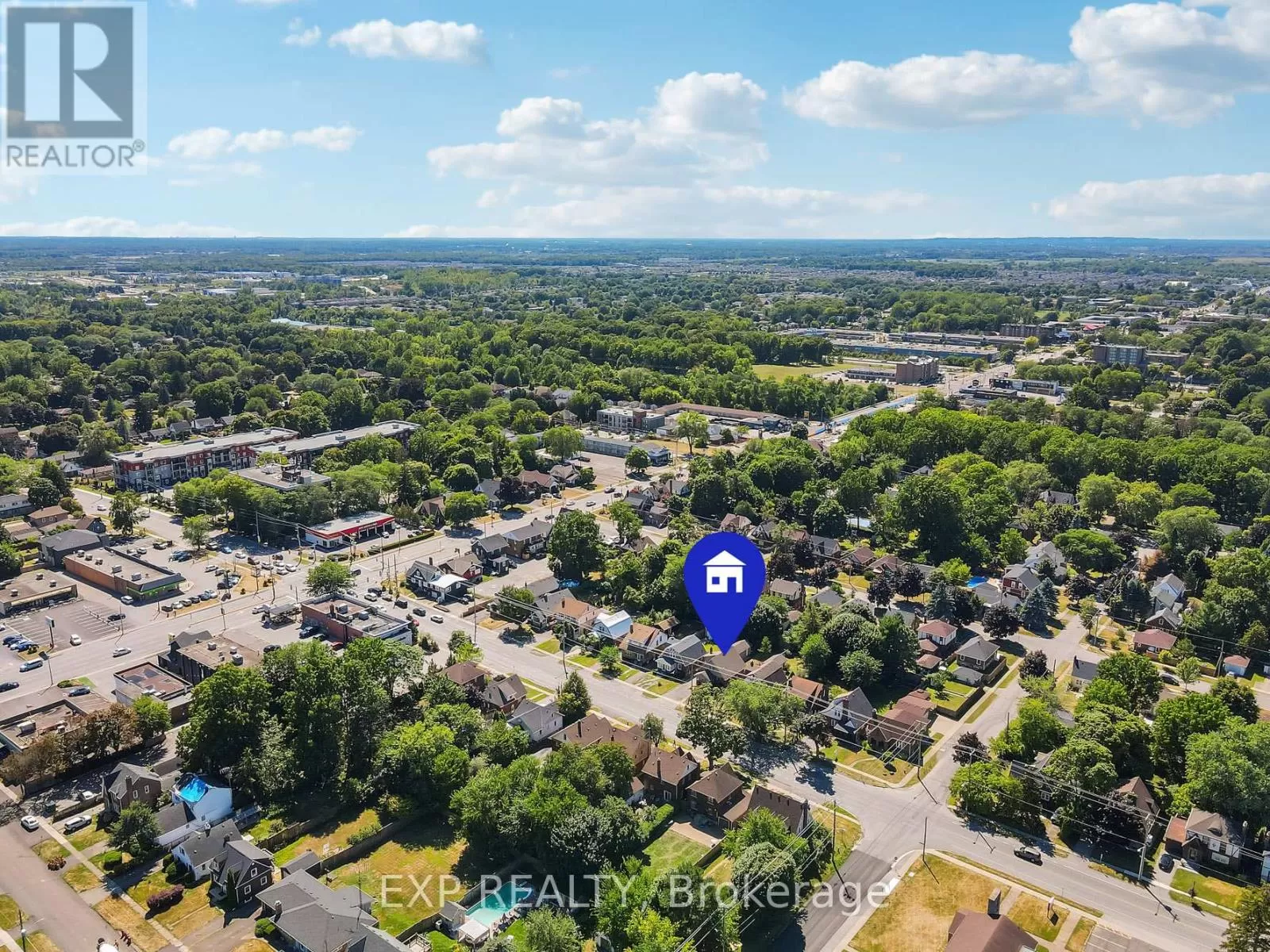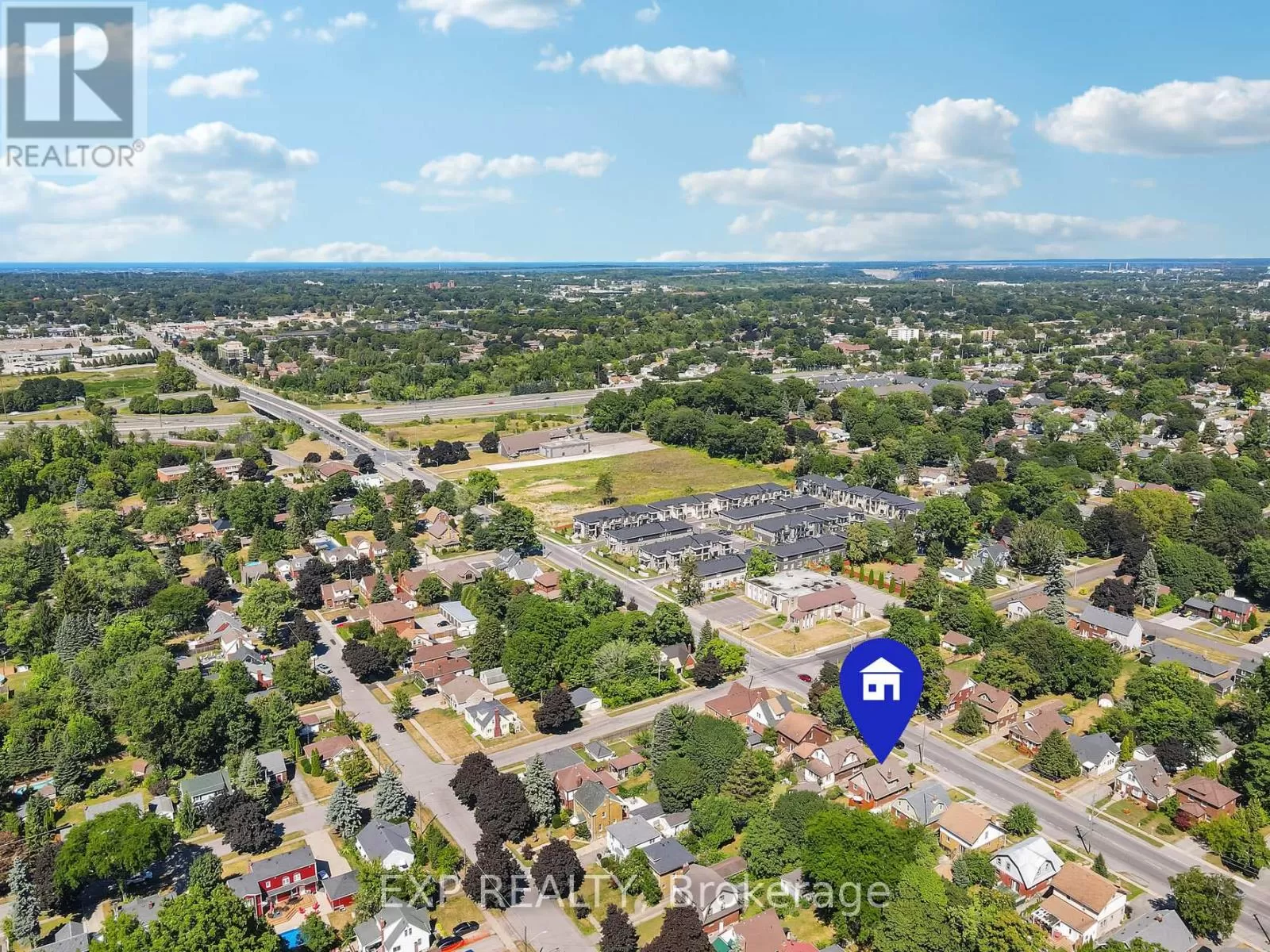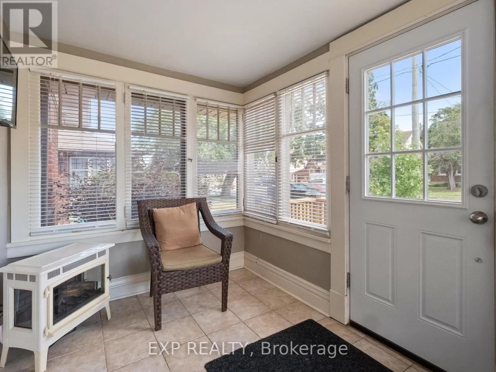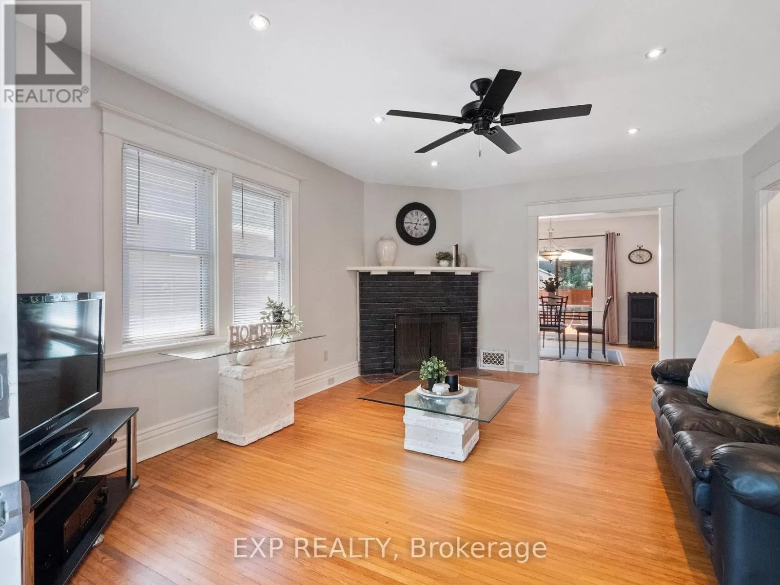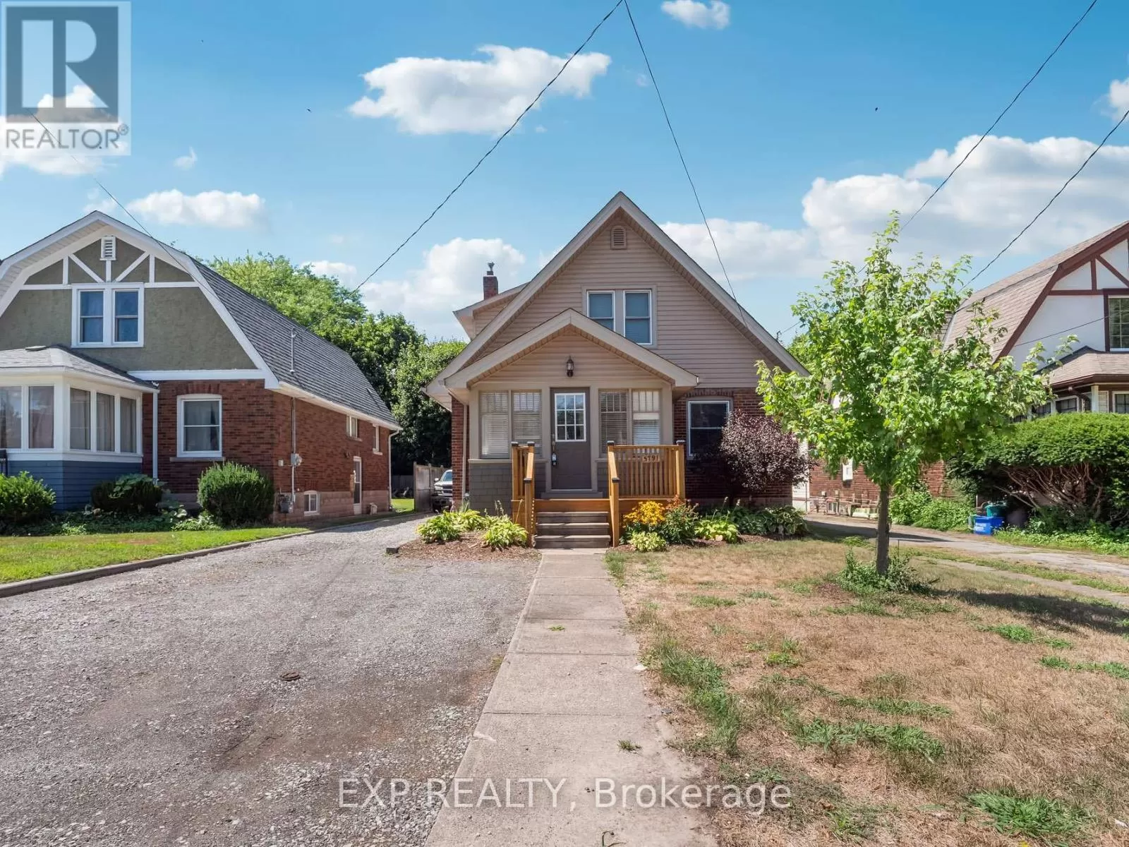 Cross Streets: Lundys Lane and Dorchester Rd. ** Directions: North from Dorchester & Lundys Lane intersection. CURB APPEAL, CHARACTER, AND CONVENIENCE! This 1.5-storey home in central Niagara Falls offers a blend of charm and functionality, starting with landscaped grounds, a welcoming front porch, and parking for five between the long double driveway and detached garage. Step inside through the enclosed sunroom with tile flooring and walls of windows, leading to a warm living room with hardwood floors, classic wood trim, pot lights, and a brick wood-burning fireplace. The dining area is filled with natural light and opens to the backyard deck, while the tiled kitchen offers two bright windows and easy flow to the main living spaces. A flexible main floor room provides the option of a bedroom or office. Upstairs, two spacious bedrooms feature hardwood floors and bright windows, complemented by a four-piece bath. The finished lower level, complete with a separate entrance, offers an in-law suite with a kitchen, island, living area, bedroom, three-piece bath, and laundry with added storage. Outside, enjoy a landscaped yard, private deck, and plenty of room for entertaining or relaxing. Updates include a newer roof, furnace, and hot water tank, making this home an ideal choice for families or those seeking versatile living options in a central location close to shopping, schools, parks, and highway access. (id:27476)