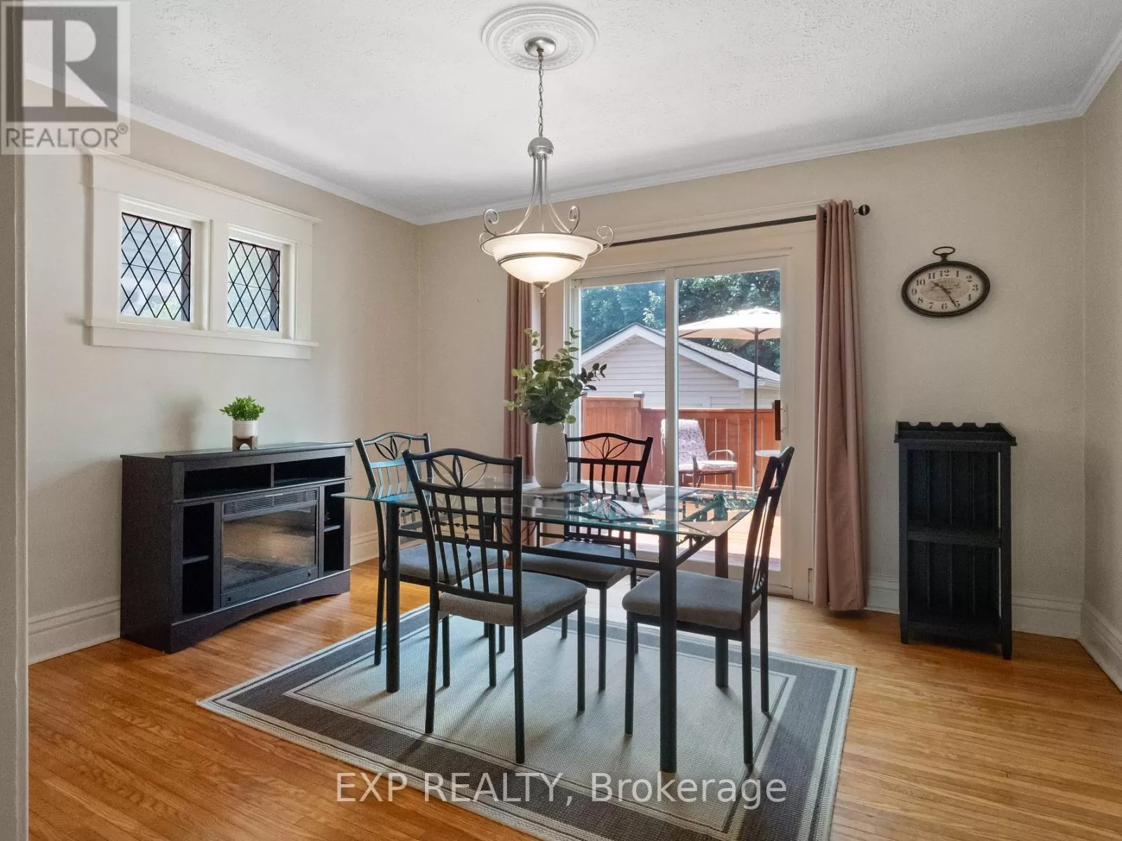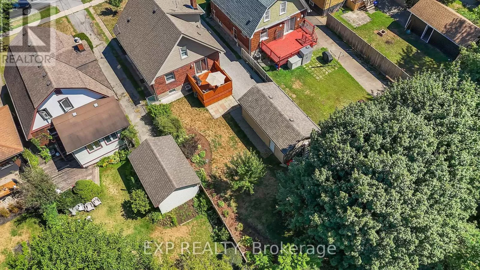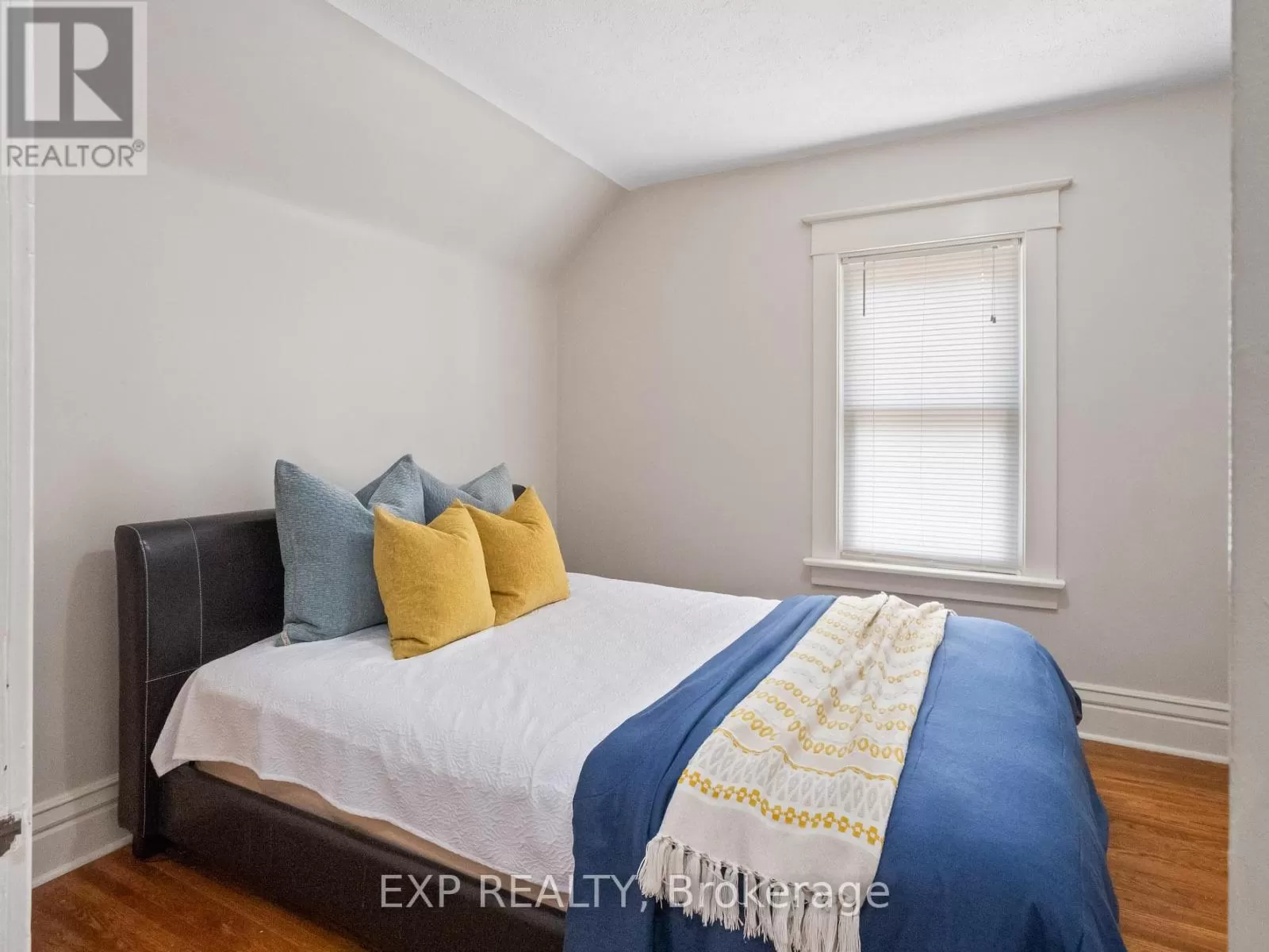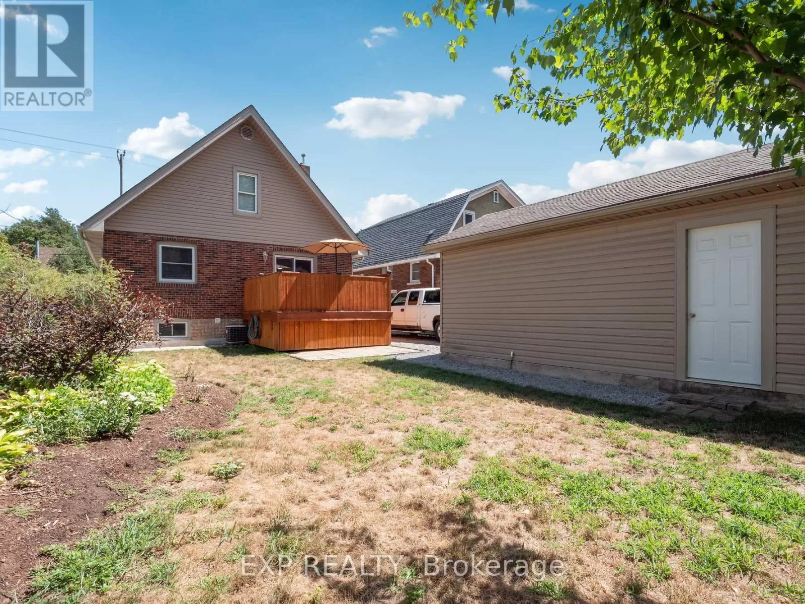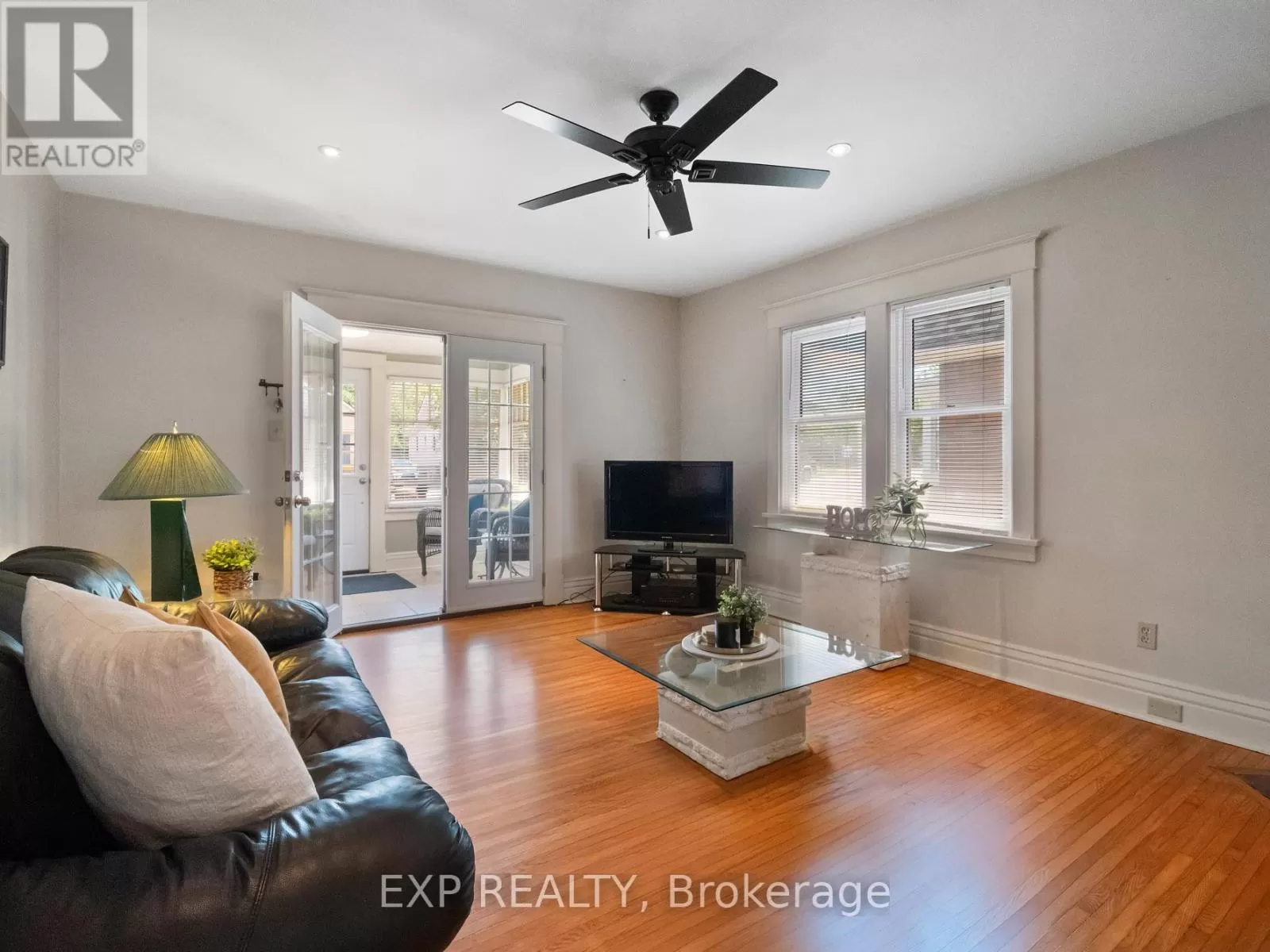 Cross Streets: Lundys Lane and Dorchester Rd. ** Directions: North from Dorchester & Lundys Lane intersection. CURB APPEAL, CHARACTER, AND CONVENIENCE! This 1.5-storey home in central Niagara Falls offers a blend of charm and functionality, starting with landscaped grounds, a welcoming front porch, and parking for five between the long double driveway and detached garage. Step inside through the enclosed sunroom with tile flooring and walls of windows, leading to a warm living room with hardwood floors, classic wood trim, pot lights, and a brick wood-burning fireplace. The dining area is filled with natural light and opens to the backyard deck, while the tiled kitchen offers two bright windows and easy flow to the main living spaces. A flexible main floor room provides the option of a bedroom or office. Upstairs, two spacious bedrooms feature hardwood floors and bright windows, complemented by a four-piece bath. The finished lower level, complete with a separate entrance, offers an in-law suite with a kitchen, island, living area, bedroom, three-piece bath, and laundry with added storage. Outside, enjoy a landscaped yard, private deck, and plenty of room for entertaining or relaxing. Updates include a newer roof, furnace, and hot water tank, making this home an ideal choice for families or those seeking versatile living options in a central location close to shopping, schools, parks, and highway access. (id:27476)