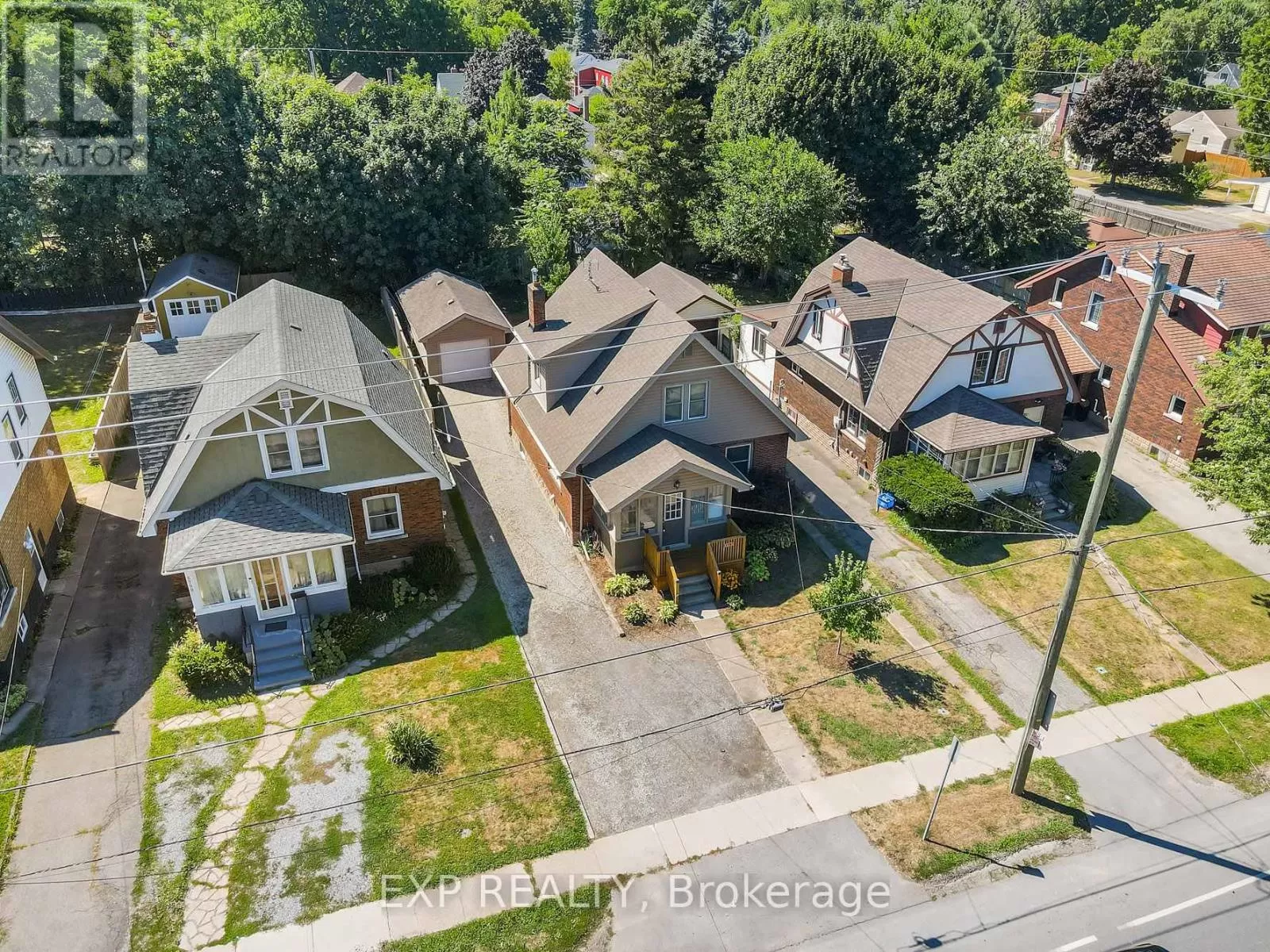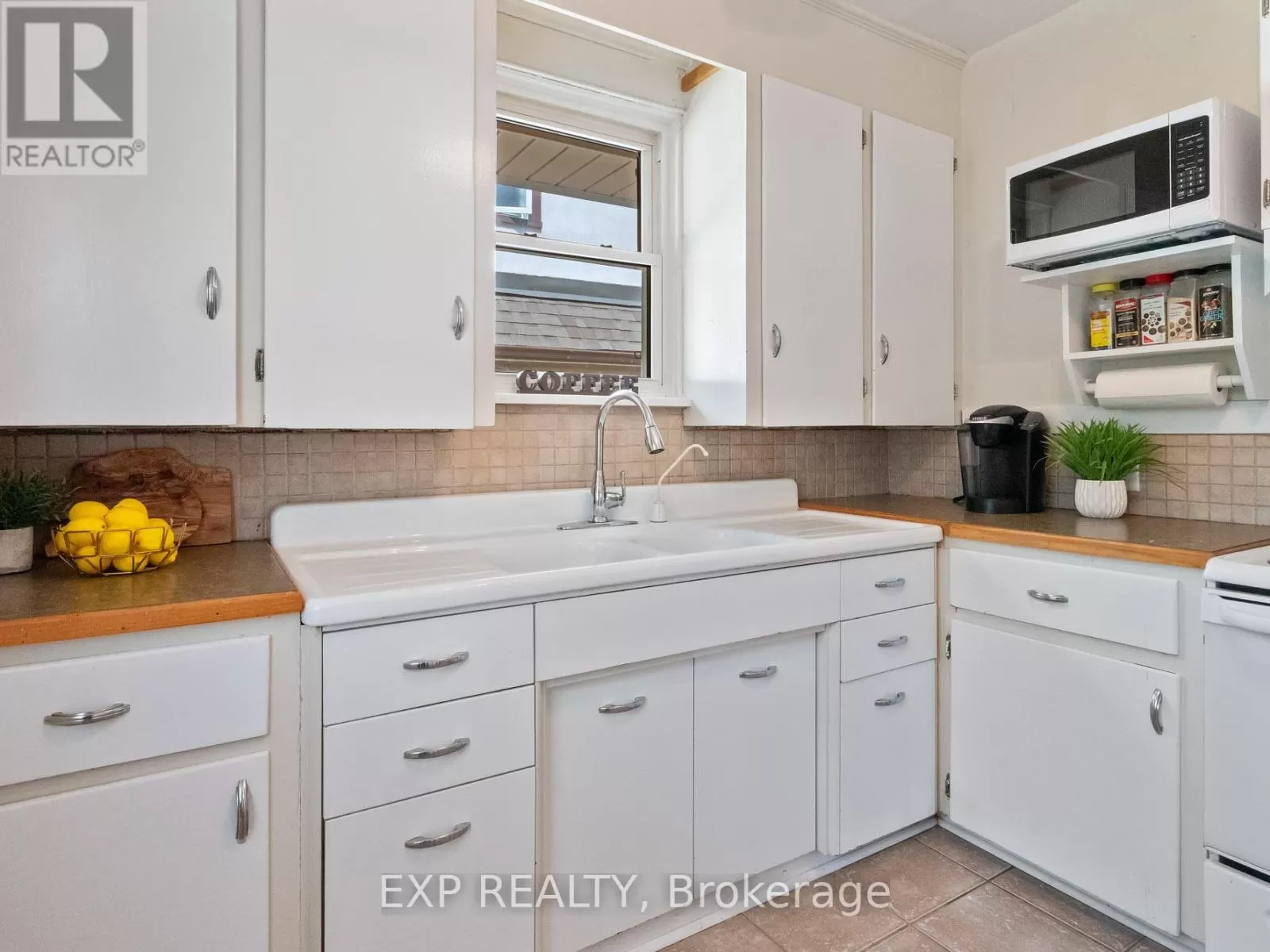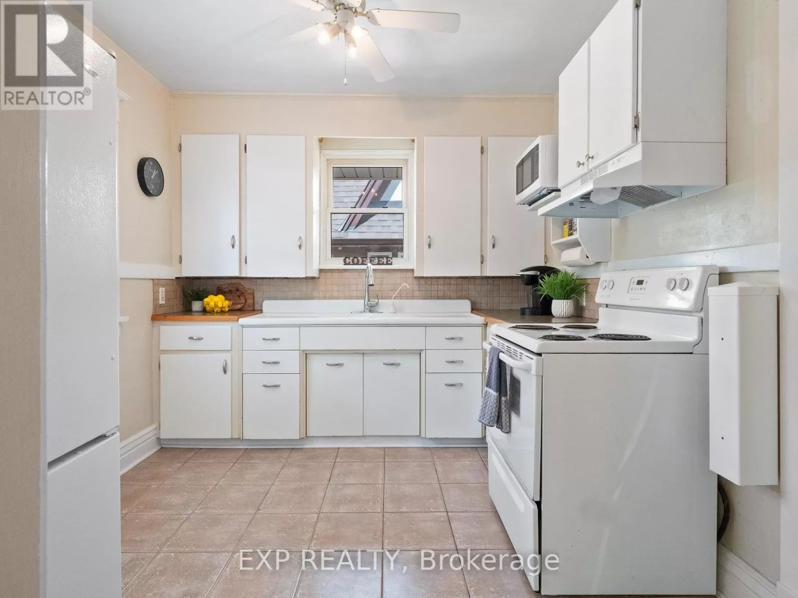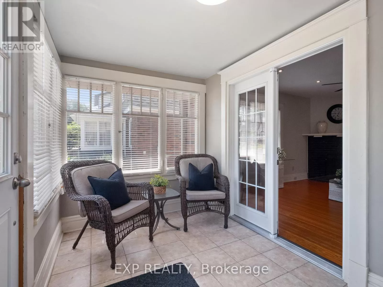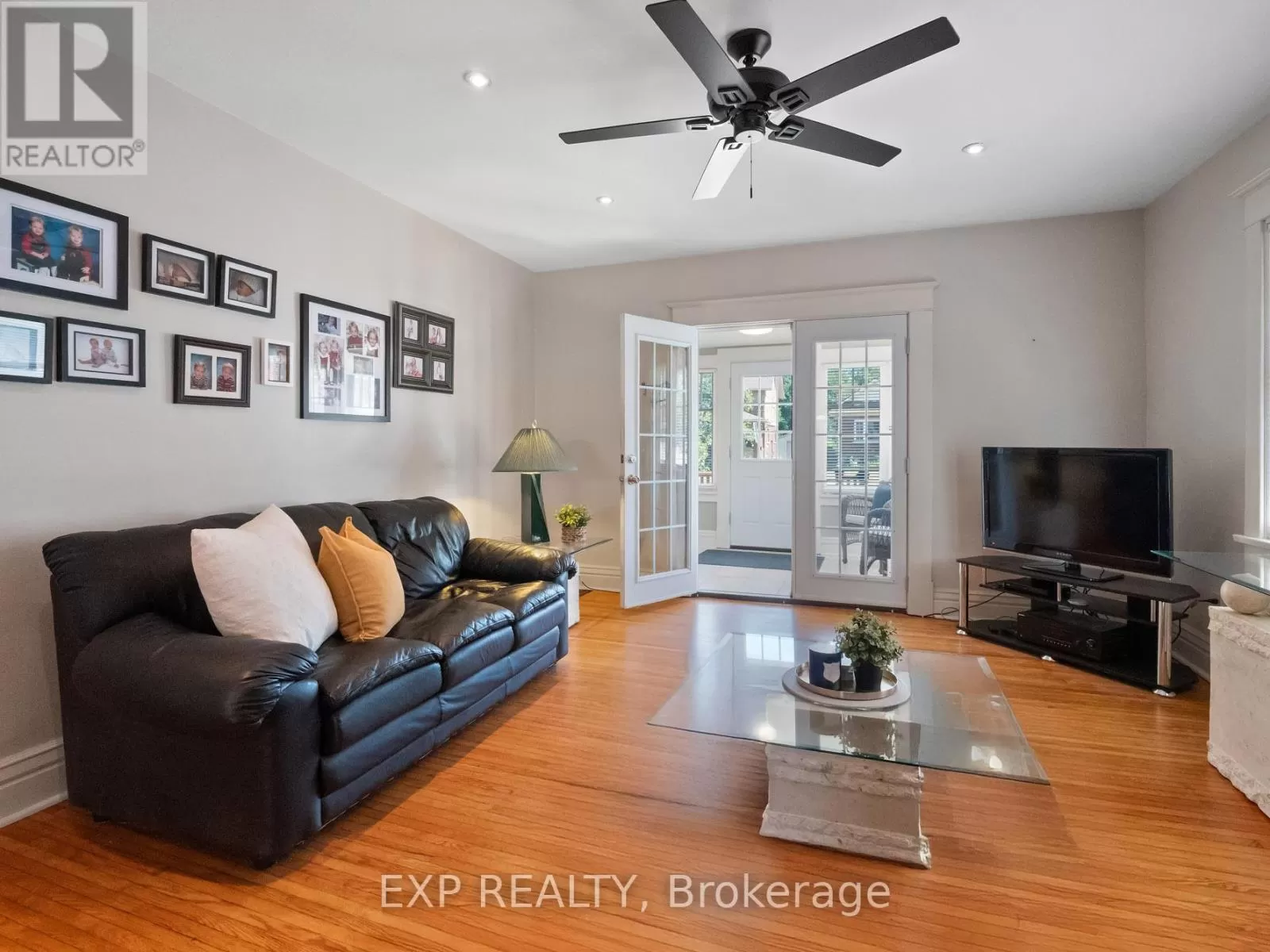 Cross Streets: Lundys Lane and Dorchester Rd. ** Directions: North from Dorchester & Lundys Lane intersection. CURB APPEAL, CHARACTER, AND CONVENIENCE! This 1.5-storey home in central Niagara Falls offers a blend of charm and functionality, starting with landscaped grounds, a welcoming front porch, and parking for five between the long double driveway and detached garage. Step inside through the enclosed sunroom with tile flooring and walls of windows, leading to a warm living room with hardwood floors, classic wood trim, pot lights, and a brick wood-burning fireplace. The dining area is filled with natural light and opens to the backyard deck, while the tiled kitchen offers two bright windows and easy flow to the main living spaces. A flexible main floor room provides the option of a bedroom or office. Upstairs, two spacious bedrooms feature hardwood floors and bright windows, complemented by a four-piece bath. The finished lower level, complete with a separate entrance, offers an in-law suite with a kitchen, island, living area, bedroom, three-piece bath, and laundry with added storage. Outside, enjoy a landscaped yard, private deck, and plenty of room for entertaining or relaxing. Updates include a newer roof, furnace, and hot water tank, making this home an ideal choice for families or those seeking versatile living options in a central location close to shopping, schools, parks, and highway access. (id:27476)