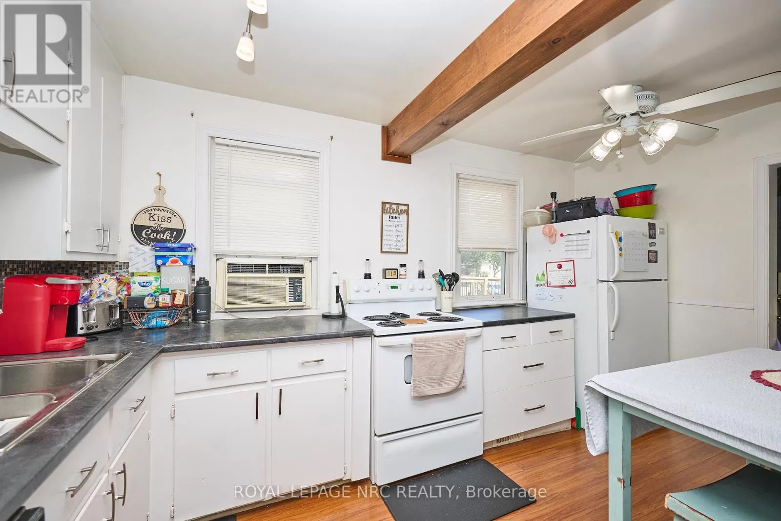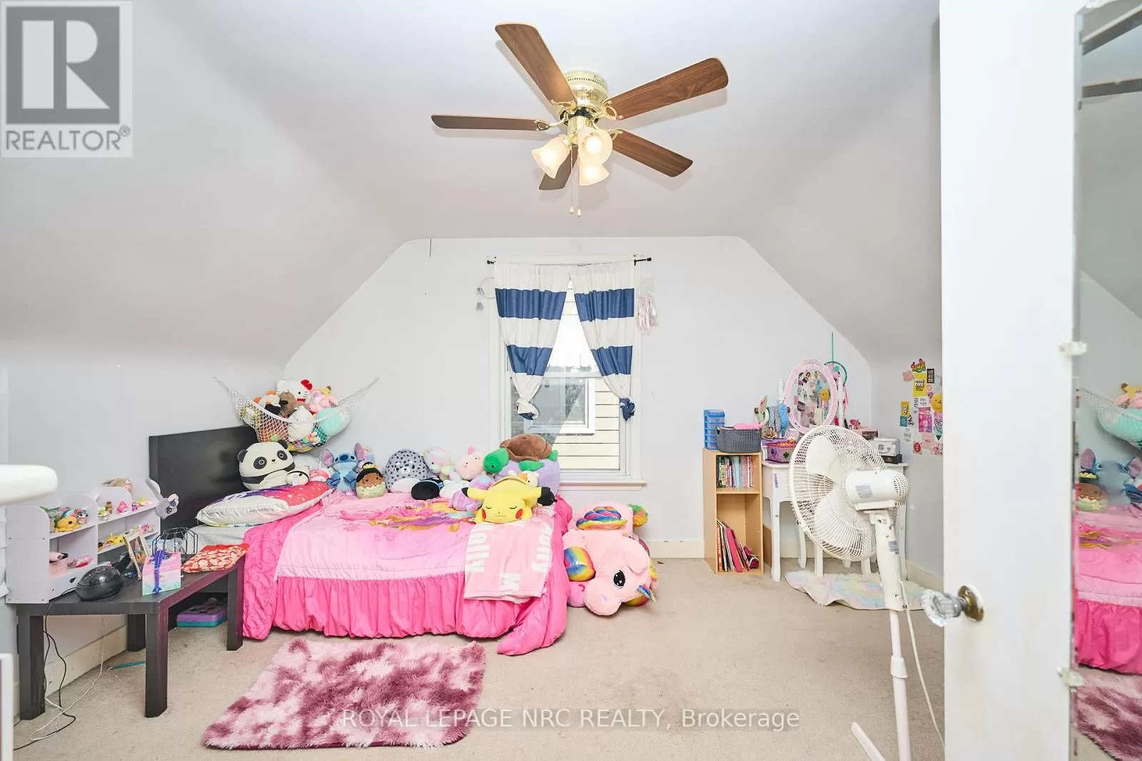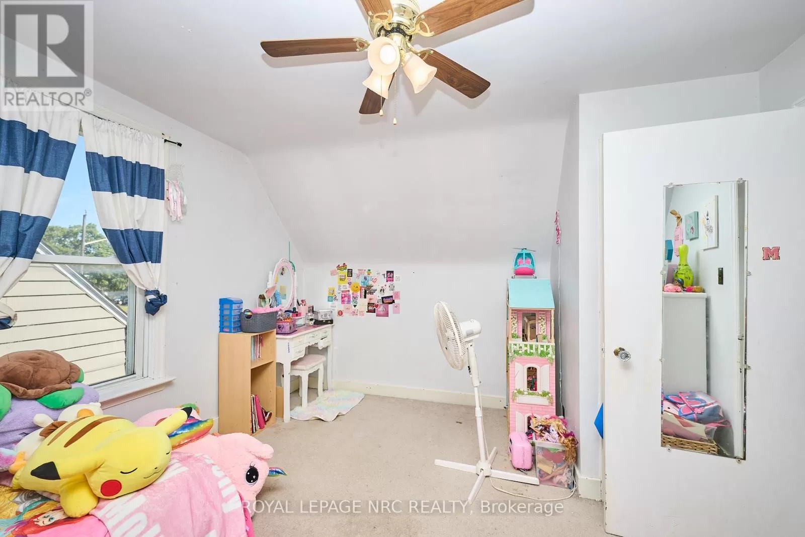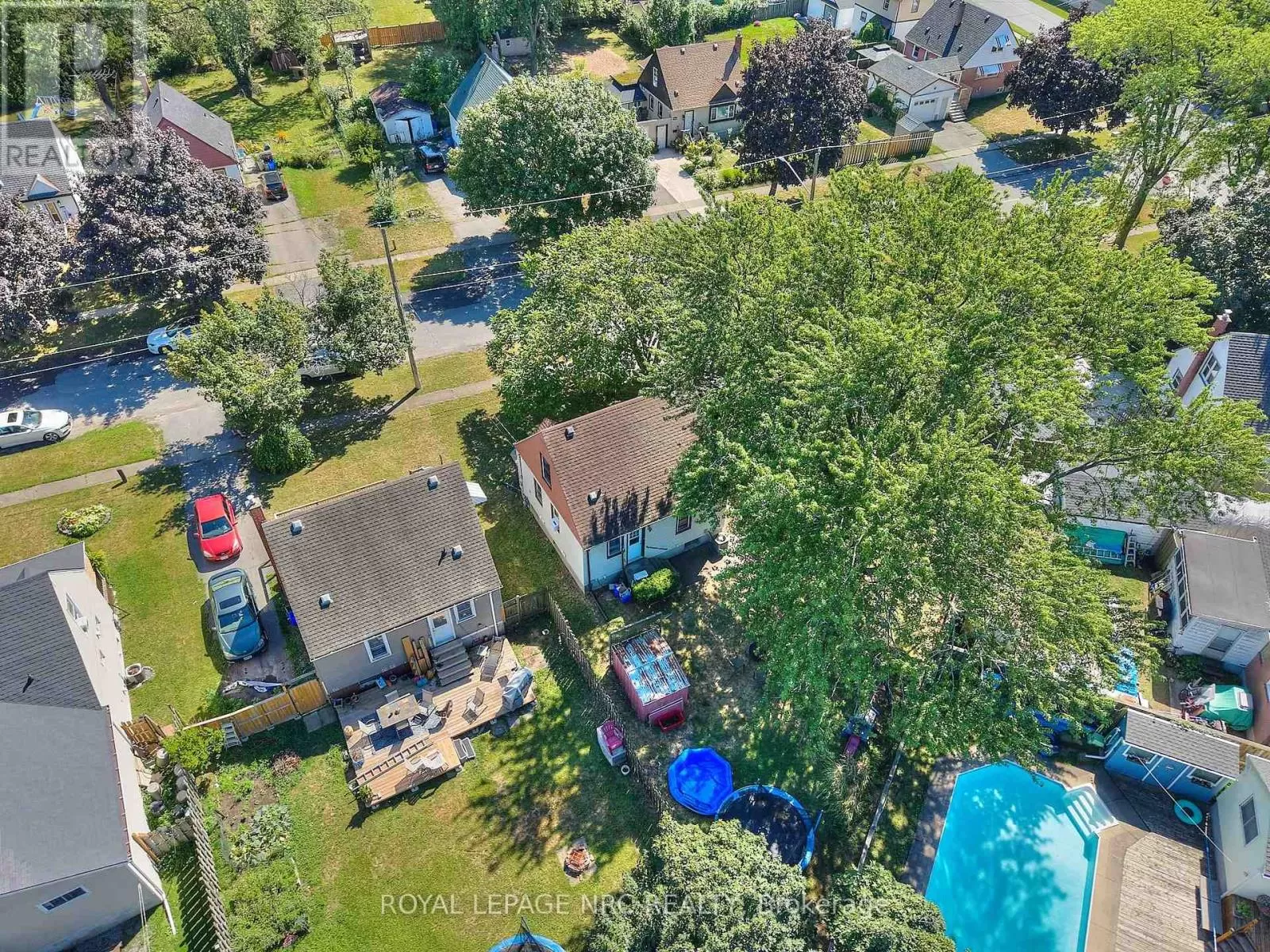 Cross Streets: LUNDY'S LANE AND ROYAL MANOR. ** Directions: ROYAL MANOR TO WINDSOR. Welcome to this charming 1.5-storey home, offering 950 sq. ft. of above-grade living + a finished basement for added comfort and living space. Perfectly situated on an impressive 90 x 115 ft treed lot, one of the largest lots on the street, this property provides a detached single-car garage and double asphalt driveway, plus plenty of extra space to the left of the garage for trailer/utility vehicle parking-making it ideal for families and guests. Inside, you'll appreciate a spacious living room, adorable eat-in kitchen and the convenience of a main-floor bedroom, complemented by two additional bedrooms on the upper level and two full bathrooms. The finished basement features a generous rec room and a second bathroom, as well as laundry room and utility room for extra storage. Located in a family-friendly neighborhood, this home is just minutes from Lundy's Lane, shopping, dining, tourist attractions, and easy highway access. With its massive backyard and unbeatable location, this property has everything you need to make it your own. Check out attached video tour! (id:27476)