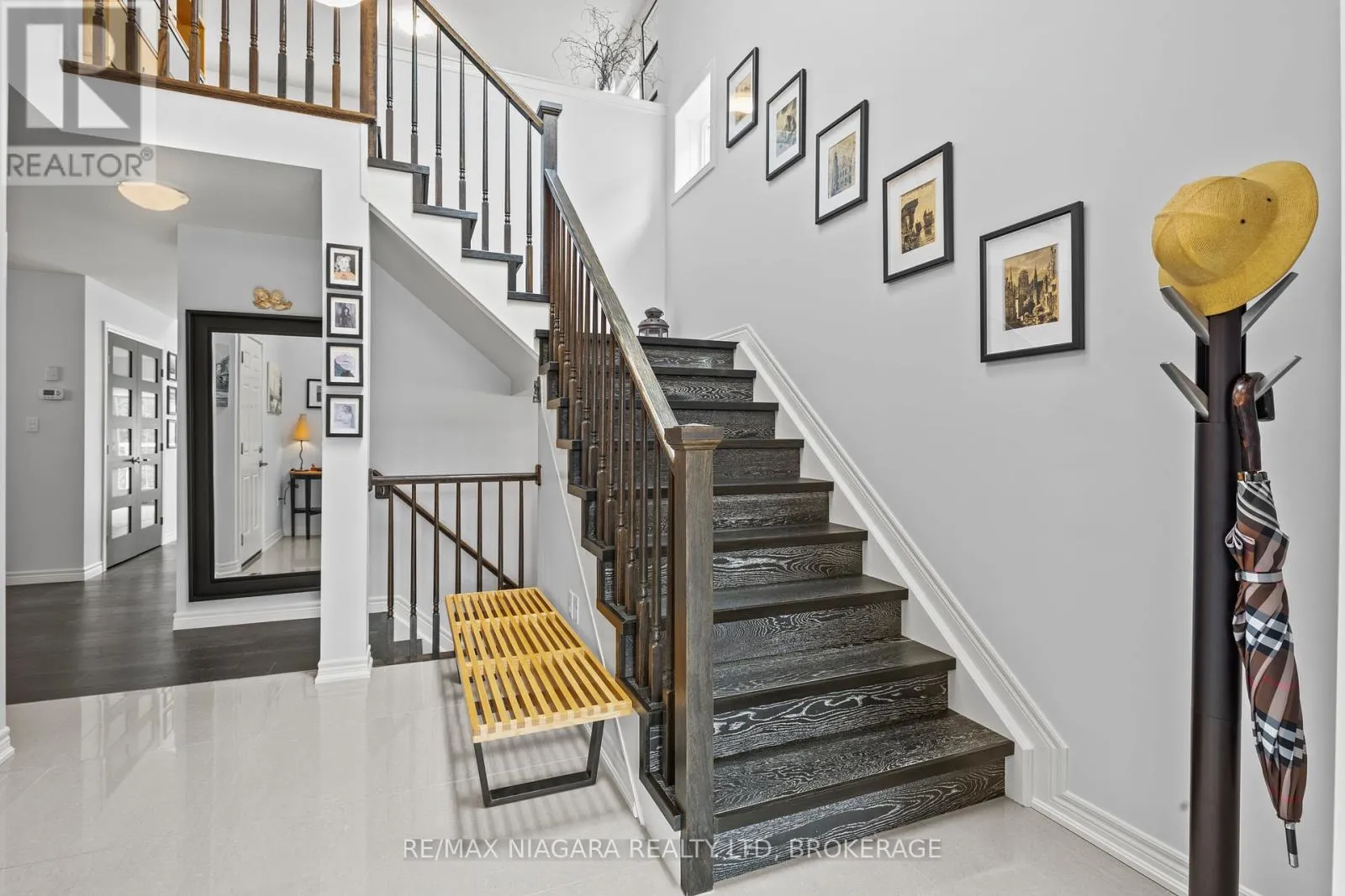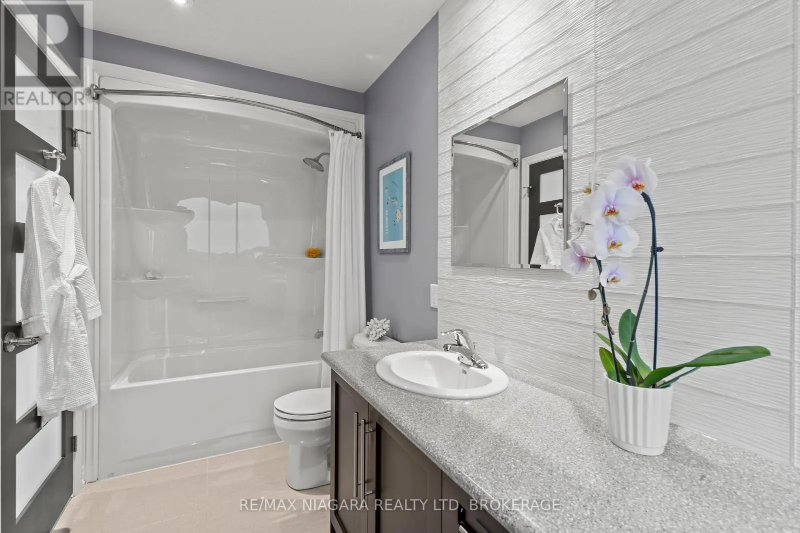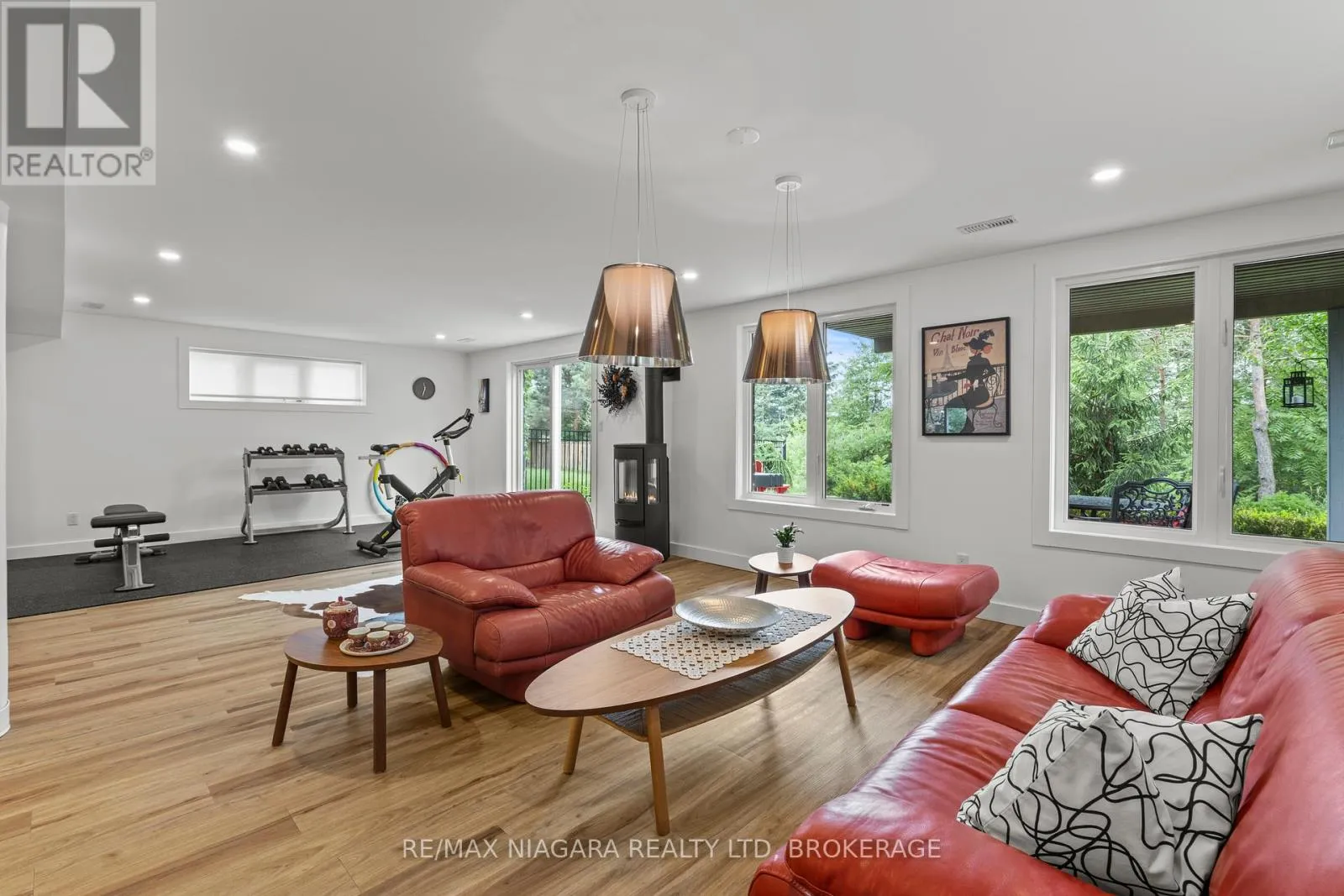 Lundy's Lane and Kalar Rd. BEAUTIFUL BUNGALOFT BACKING ONTO FOREST WITH 2400 SQ FT OF TOTAL LIVABLE SPACE! Located in a quiet and desirable neighbourhood of Niagara Falls, this home is filled with natural light, thanks to five skylights and large windows throughout. The well-designed floor plan features 2 spacious bedrooms, 3.5 bathrooms, and a thoughtfully laid-out open-concept living space. The heart of the home is the kitchen, which boasts a large island, perfect for meal prep or casual gatherings. It seamlessly flows into the living and dining areas, making this home an entertainer's dream. The main floor primary bedroom offers a peaceful retreat and is complemented by a luxurious 4-piece ensuite, providing a spa-like experience. Upstairs, you'll find a loft area with an office that overlooks the main floor, offering a quiet space to work or unwind while enjoying the view of the open living area below. The living room offers a garden door walkout to a composite deck terrace, complete with sleek glass aluminum handrails, perfect for outdoor dining or relaxing. Step outside and enjoy the beautifully landscaped gardens that surround the home, adding vibrant colour and curb appeal. The backyard offers serene wooden views, creating a peaceful and private retreat. The professionally finished basement includes a cozy gas fireplace stove and walkout access to a patio, ideal for entertaining or quiet evenings at home. Additional highlights include vaulted ceilings, an east-west orientation that provides ideal sun exposure, and a forest-facing backyard that adds privacy and tranquillity. This home is move-in ready and perfect for those seeking peace, space, and comfort, all within close proximity to amenities, parks, and highway access. (id:27476)
