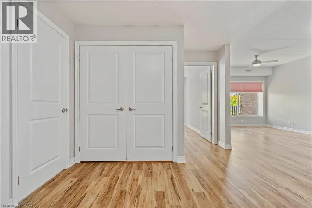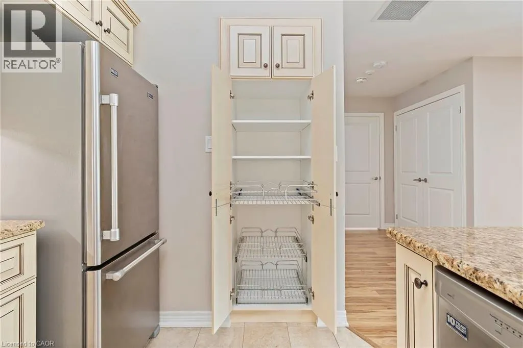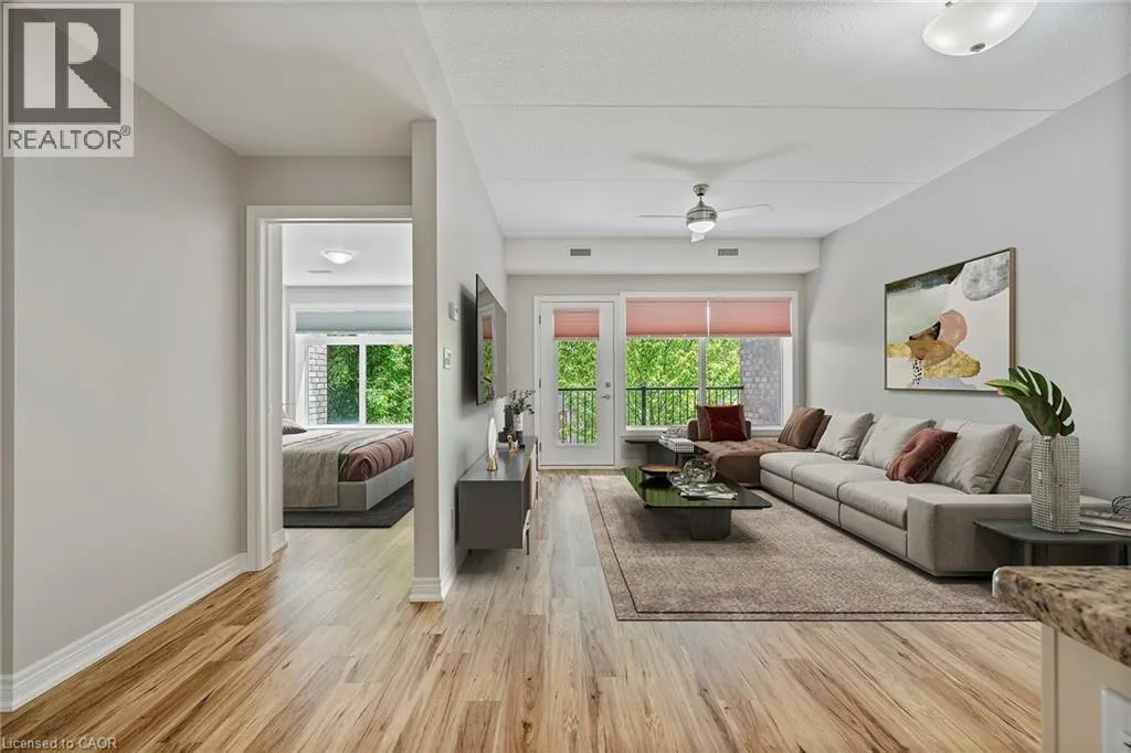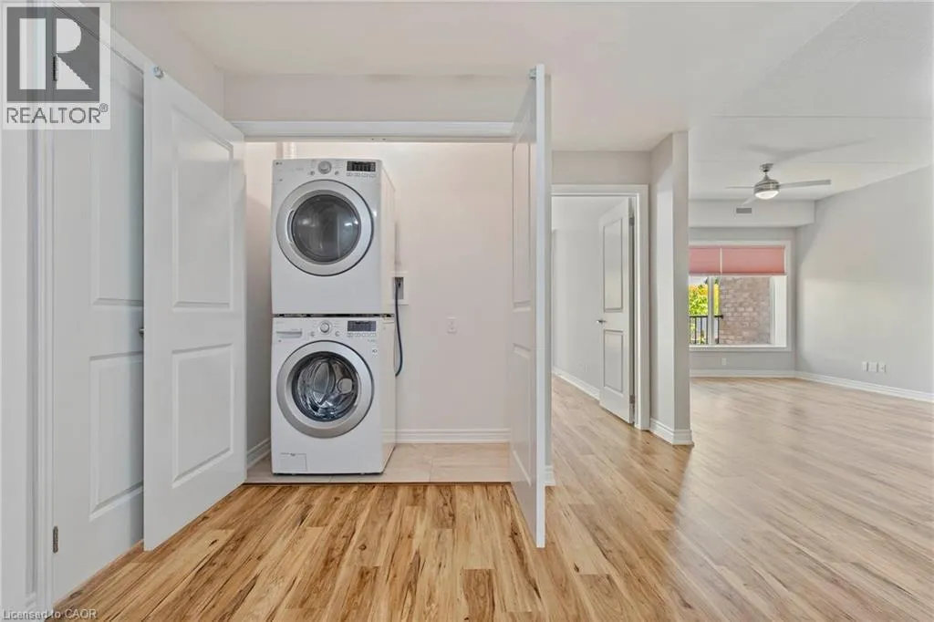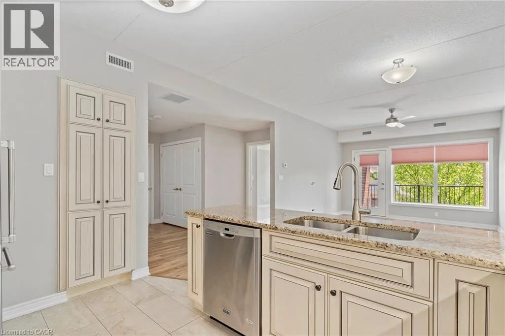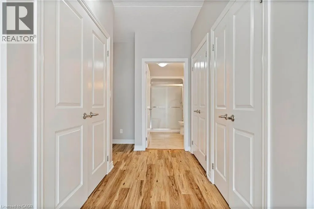Dorchester to Pettit. One of the only South-Facing Courtyard view units available. Have you been wanting to right-size but didn't want to give up the conveniences of a house? Welcome to easy, elegant living in this beautifully maintained south-facing condo, nestled in a sought-after adult-centred community in Niagara Falls. Offering all the comforts of a traditional home, without the upkeep, this spacious 1,185 square foot residence features your own private garage. This isn't just a parking spot-it's a secure garage that you own, plus an exclusive additional surface parking space and a personal storage locker. This suite is like no other in the building! Status Certificate available upon request. Freshly painted and overlooking the heated saltwater pool, the condo offers serene privacy with views framed by a mature ornamental pear tree. Inside, you'll find a warm, welcoming space finished with over $15,000.00 in upgrades. The custom upgraded Stone Natural Wood flooring in Pawnee Pecan, known for its style, comfort, and durability. The kitchen and both bathroom vanities are upgraded and fitted with Rev-A-Shelf wire pull-out organizers, while elegant tile backsplashes add a refined touch. Additional upgrades include wired-in motion-sensor closet lighting, Levolor Premium Top-Down Bottom-Up cordless blackout shades, and a steel garage door with a deadbolt for added peace of mind. You'll also enjoy granite countertops, full-sized in-suite laundry, and thoughtfully designed closet organizers that maximize functionality. All of this is set within a vibrant, friendly community that offers a community garden, a fully equipped exercise room, and a cozy building parlour perfect for socializing. Whether you're relaxing poolside or entertaining guests, this is low-maintenance retirement living at its finest. (id:27476)