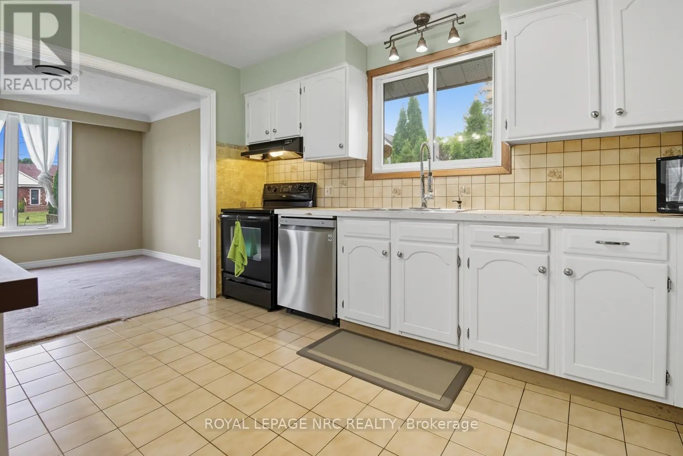 Cross Streets: Mercury. ** Directions: St. Paul to Riall. Welcome to Riall St. Prime North End neighbourhood. Oversized 4 level backsplit with 2,800 sq. ft +/- living space. Step into the enclosed atrium complete with 2 skylights. The home has a double foyer, perfect for separate entry for future in-law. Ceramic flooring through to the kitchen. sunken living room, sep. dining, dream size kitchen with wall to wall counter and under counter cabinetry overlooking living room. Only 2 steps up to 3 bedrooms. Primary with walk in closet and 2 pc bathroom (needs sink) redone 4pc main bath. Lower level complete with large finished recreation room (gas f/p) 4 th bedroom, newly done 3pc bath with walk in shower and storage. Basement level with finished office/craft/playroom. Cold room. Laundry/furnace room plus additional storage room. Furnace and air replaced. Windows replaced. Just needs some finishing touches. Fully fenced yard plus shed. Large covered patio with blinds on west side and lighting. Close to shopping, highway access, bus route and schools. (id:27476)