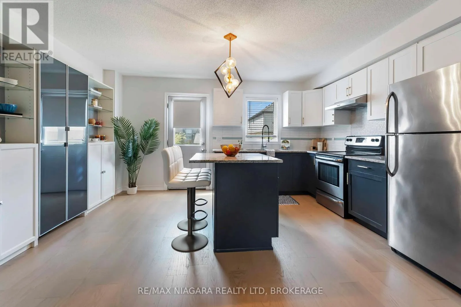 Cross Streets: kalar. ** Directions: Kalar to Angie. Stylish and move-in ready! This 2+1 bedroom condo townhouse w/ fin basement is located in the desirable Garner Estates area and offers a perfect blend of comfort and modern updates. Newly installed engineered hardwood flooring on the main level, fresh paint throughout, and a bright open-concept layout.The kitchen offers plenty of counter space and cabinetry, flowing seamlessly into the dining and living area with walkout access to a private deck. The upper level features two large bedrooms, including a primary with his and hers closet space, with ensuite privilege .Downstairs, the fully finished lower level includes a third bedroom, rec room complete with a built-in seating area and a full 3 pc bathroom. Located close to top-rated schools, parks, shopping, golf, and quick highway access ideal for first-time buyers, down-sizers, or investors! (id:27476)