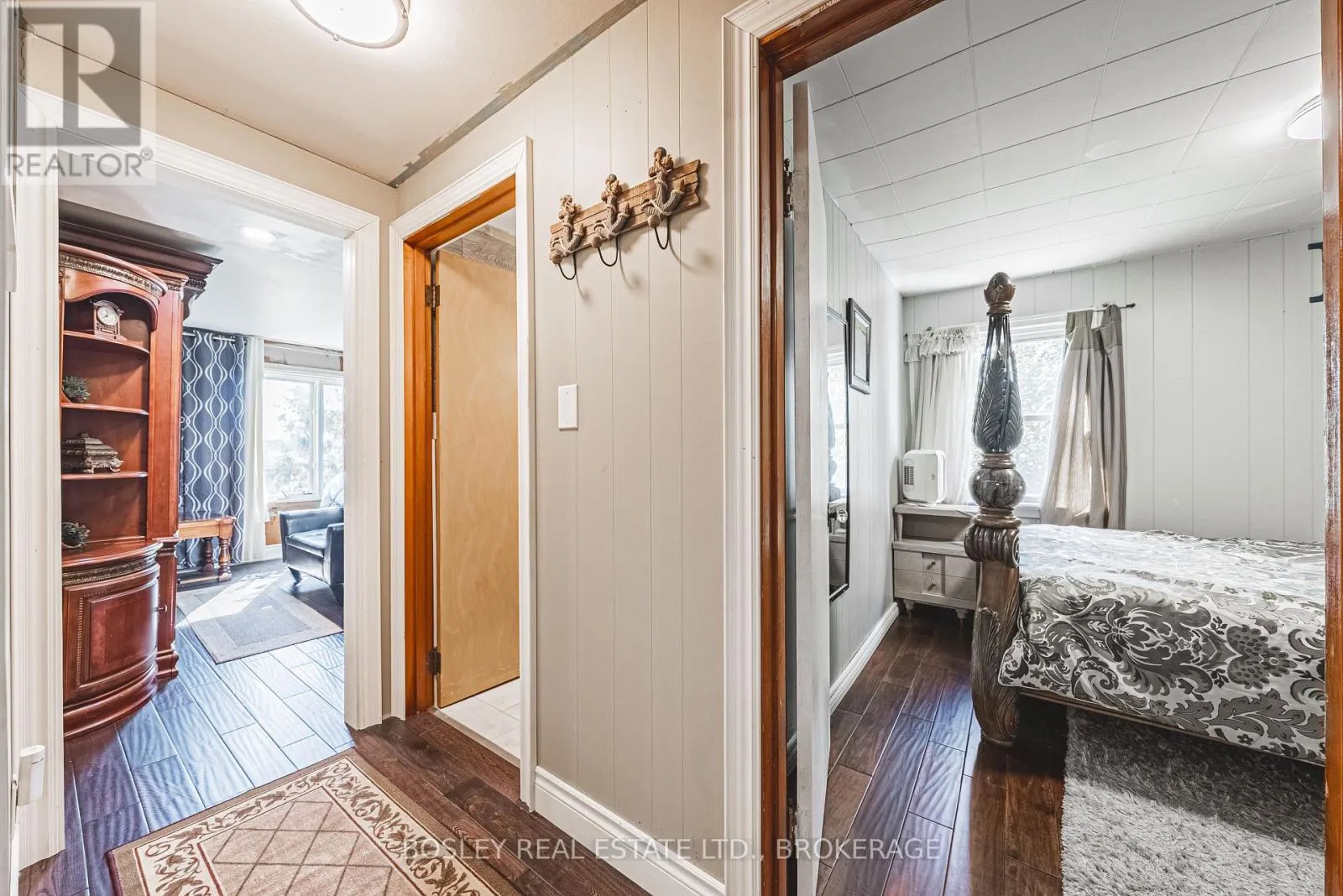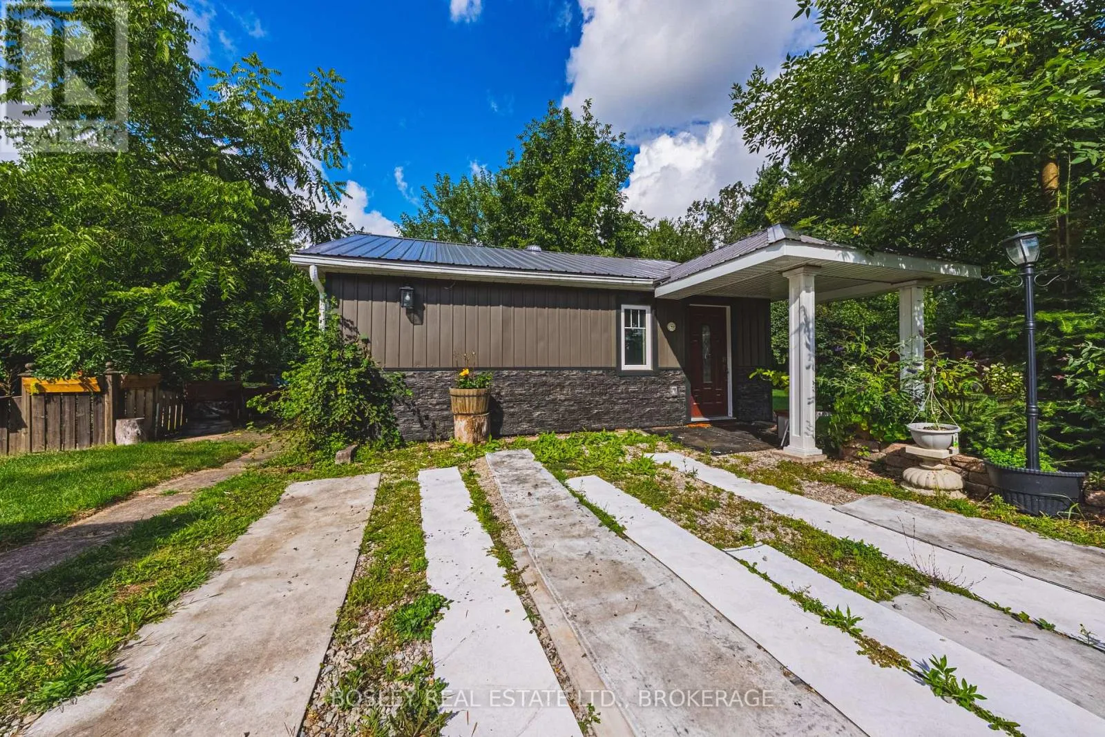 Cross Streets: Lyons Creek Rd/Main St Chippawa. ** Directions: Lyons Creek Rd, right onto Sodom Rd. Discover the charm and potential of this spacious two-bedroom bungalow nestled on a large 100ft X 215ft , private lot on Sodom Road, just minutes from stunning Niagara Falls. Perfectly positioned close to shopping, schools, and amenities, this home offers convenience with a country feel. Enjoy ample main floor living space including 2 bedrooms, eat-in kitchen, living room, and a versatile family room created by converting a large 20 x 22 double garage, easily reversible to suit your lifestyle. Set back on the lot, the property features a large driveway with ample parking and a welcoming front porch ideal for your morning coffee. The kitchen opens to a lovely covered back porch, while the sliding walkout from the family room leads to an expansive backyard that backs onto a creek, lined by trees, offering exceptional privacy. Additional highlights include an outbuilding currently being transformed into a secondary 1 bed, 1 bath dwelling, complete with hydro & gas. The property has another utility shed, gardens, and endless possibilities for expansion or income opportunity. This property is a rare blend of country charm and city convenience that invites you to create your perfect retreat or investment property in scenic Niagara Falls. Attached garage currently used as living room, can be converted back; doors still operate, and SQ ft includes garage. (id:27476)