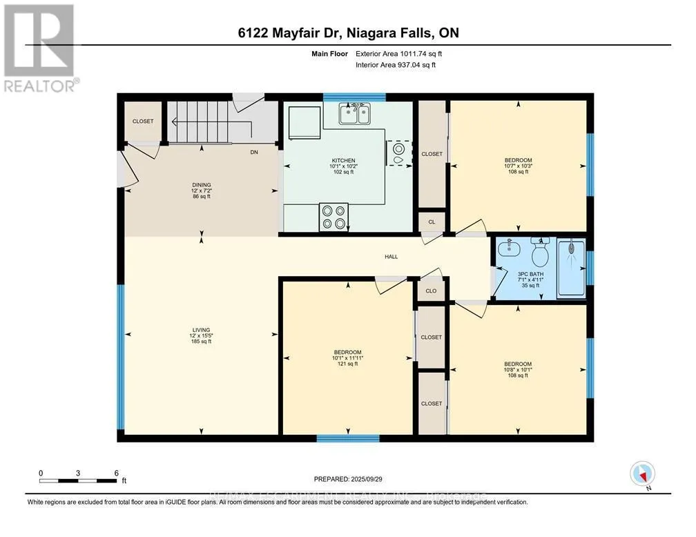 Cross Streets: Churchs Lane. ** Directions: QEW, exit 32 - Mountain Road, left onto Mountain, right on Dorchester Road, left onto Thoroldstone Road, right onto Montros Road, left on Church's Land, right on Mayfair Drive - Home is on the right. Welcome to 6122 Mayfair Drive, a beautifully updated home in a desirable Niagara Falls neighbourhood. The main floor features a stunning kitchen with rich cabinetry, granite countertops, skylight for natural light, and included appliances. The open-concept dining and living room showcase beautiful rich-colour flooring, creating a warm and inviting space. Three generous bedrooms and a completely redone 3-pc main bath complete the level. Freshly painted and updated, this home is move-in ready. The fully finished basement offers excellent potential for an in-law suite or multigenerational living, with a beautifully finished bath featuring a walk-in shower, and a large bright room with plenty of windows-perfect as a living/dining area, recreation room or extra bedroom. Modern mechanicals include forced air natural gas, air exchanger with HEPA filter, on-demand tankless water heater, and water softener. Outside, you will love the extended drive-through garage with front and rear doors, paved double-wide driveway, and a partially fenced yard. A 10x20 shed with a garage door, man door, and built-in shelving provides fantastic storage and hobby space. Centrally located between the QEW and Highway 405, just minutes from world-famous Niagara Falls and Clifton Hill, with plenty of nearby amenities including schools, shopping, and parks. Please note: some photos have been virtually staged. (id:27476)