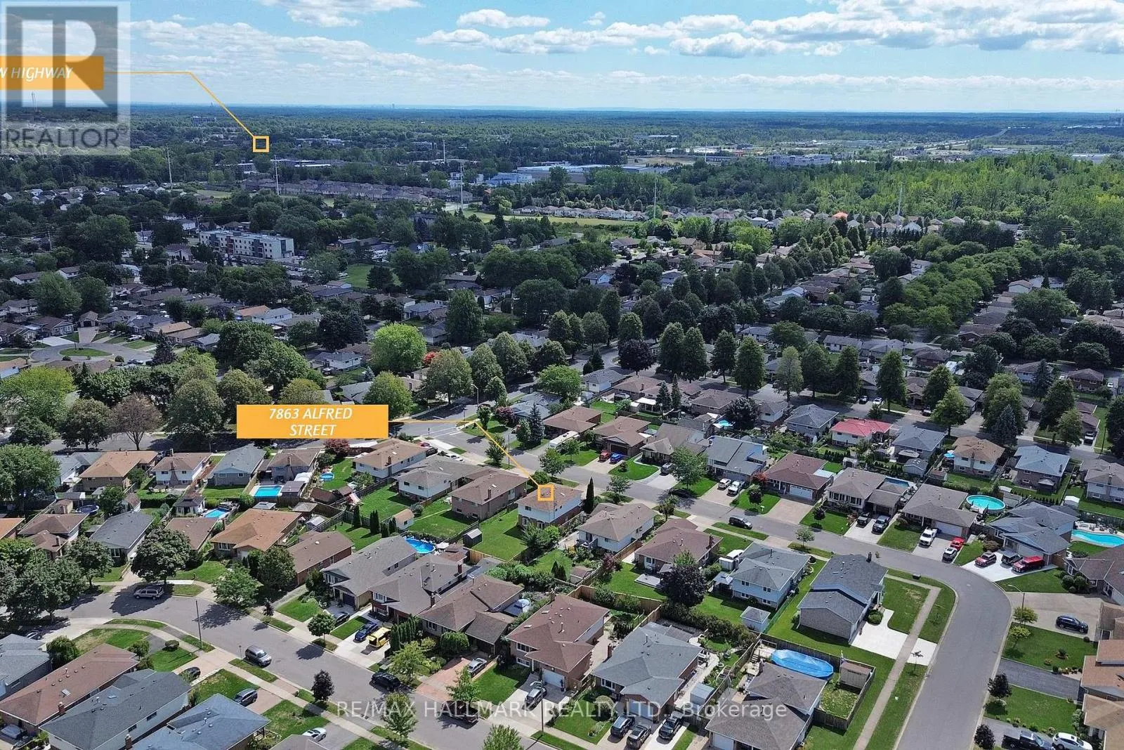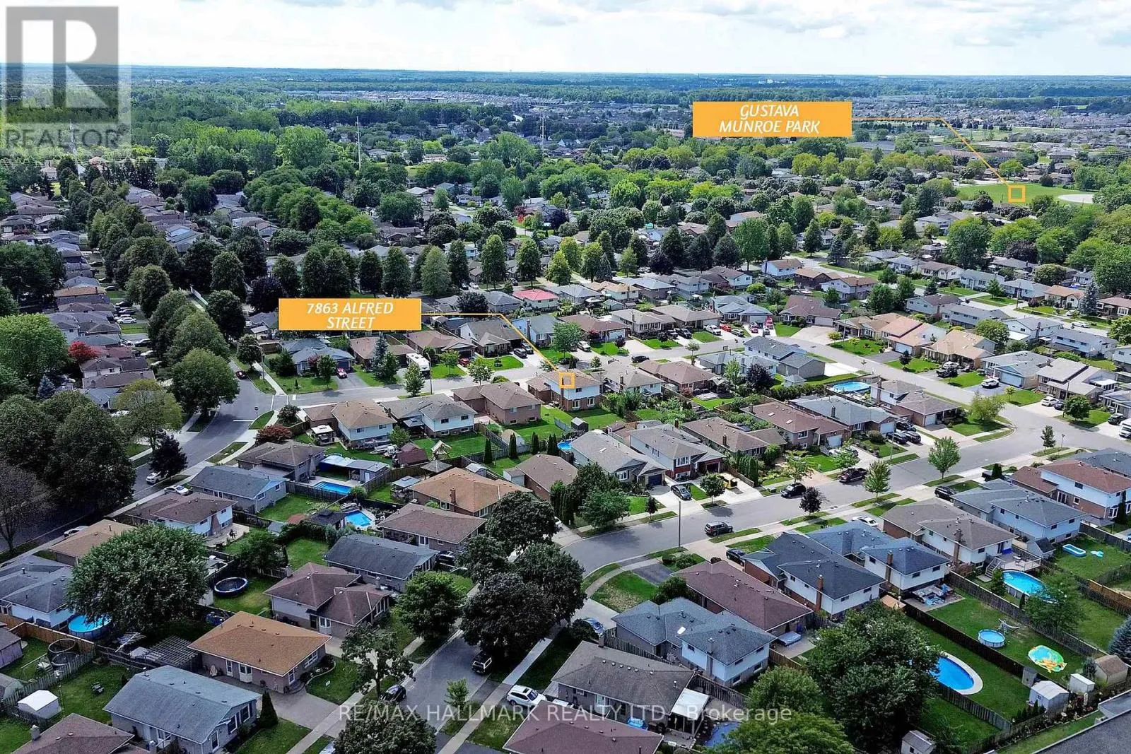 Cross Streets: Lundy's Ln & Montrose Rd. ** Directions: West from Chartwood Ave. Welcome to 7863 Alfred Street, Niagara Falls a beautifully maintained 3 bedroom, 3 washroom, 2 car garage, detached residence in the highly sought-after West Wood community. Situated on a 50 ft. x 124 ft. lot, this 2-storey home offers nearly 1,800 sq. ft. of finished living space with a balance of timeless design and modern updates. The main floor showcases an inviting open-concept layout with bright living and dining areas that flow seamlessly into a spacious eat-in kitchen, complete with quartz countertops. A skylight and California shutters enhance natural light throughout. A convenient 2-piece powder room and direct access to the attached garage ideal for use as a workshop or hobby space add to the functionality. The upper level offers 3 generous bedrooms, including a primary suite with dual closets and private ensuite. The additional bedrooms share a well-appointed four-piece bathroom, also finished with quartz counters. The separate-entrance finished basement is a standout feature, offering excellent potential for a secondary suite or rental unit to generate income and help offset monthly mortgage costs. This level also includes a cozy wood-burning fireplace, generous storage, and flexible space for guests or family. Recent upgrades include: new flooring, roof, A/C, select windows, and California shutters. Outside, enjoy a fully fenced and professionally landscaped backyard, perfect for entertaining, children, or pets, plus a newer shed for added utility. Located 10 minutes from downtown Niagara, ideally located close to top-rated schools, parks, shopping, and commuter routes, this property combines elegance, practicality, and investment potential in one of Niagara Falls most desirable neighborhood. Don't miss the opportunity to make this exceptional home yours. Book your private showing today. (id:27476)