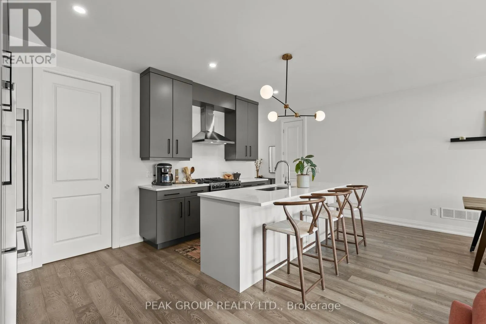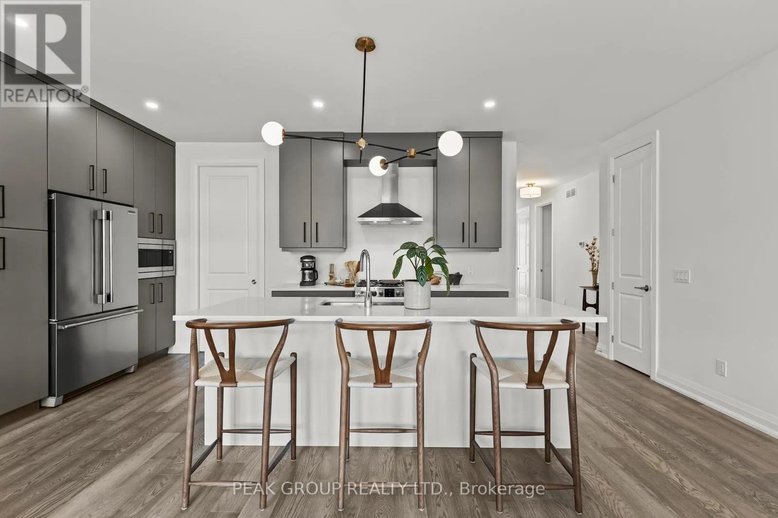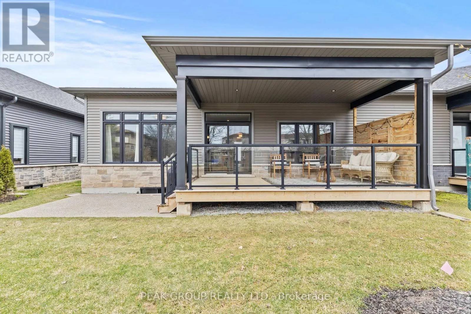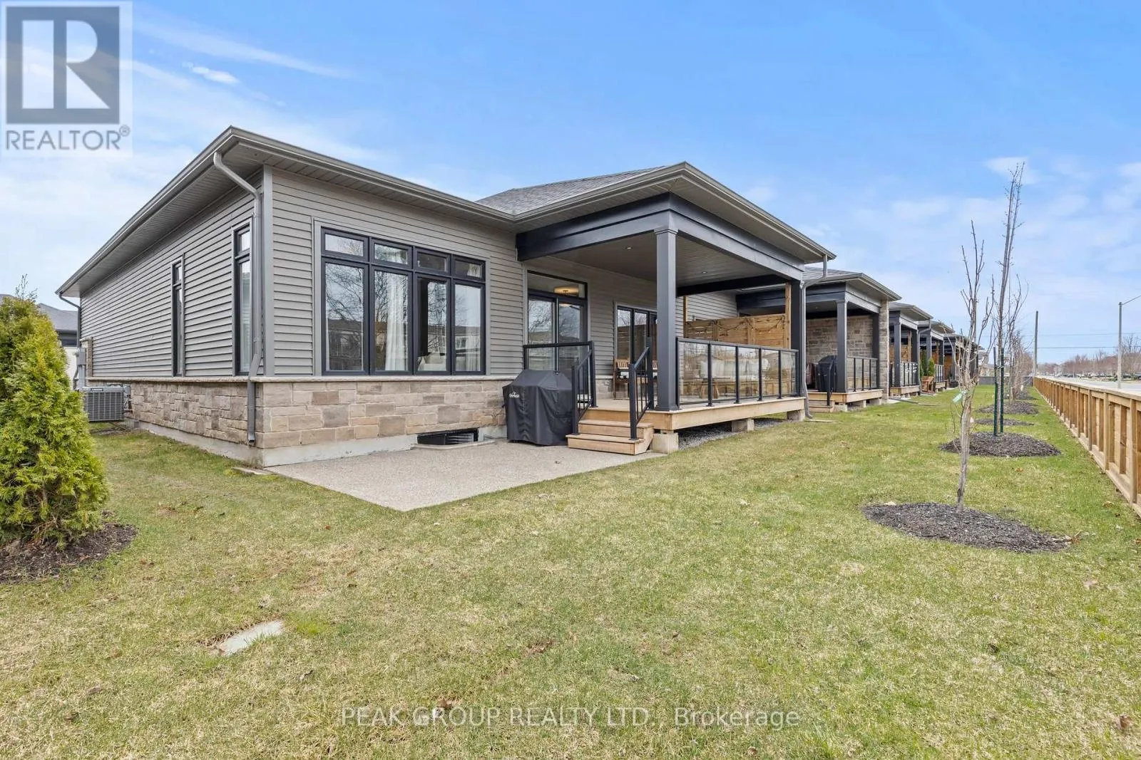 WILLOUGHBY DR AND WEINBRENNER Introducing 8-8974 Willoughby Drive, your dream home just minutes away from the picturesque Niagara Parkway, the renowned Legends Golf Course, and the breathtaking Niagara Falls. This exquisite end-unit bungalow townhome, by the award-winning Silvergate Homes, features three spacious bedrooms and three full bathrooms, along with a fully finished basement and a host of impressive upgrades. As you enter, you are welcomed by bright, airy interiors accentuated by large windows, nine-foot ceilings, and elegant eight-foot doors. The main floor is upgraded with engineered hardwood flooring and luxurious quartz countertops, while the bathrooms impress with designer vanities, exquisite finishes, and beautiful tile selections. The thoughtfully designed kitchen is a chef's delight, offering ample cabinet space, a large island with seating for four, an under-mount sink, a gas range, and soft-close ceiling-height cabinets adorned with high-end stainless steel appliances. The open-concept layout seamlessly connects the kitchen to the great room and dining area, making it an entertainer's paradise. Retreat to the primary bedroom, a luxurious haven complete with a five-piece ensuite featuring a glass shower and a generous walk-in closet. A custom oak railing staircase leads you down to the fully finished basement, which includes a spacious recreation room, custom flooring, an additional bedroom, a modern bathroom with a glass and tile shower, and a stylish custom wet bar with a wine fridge perfect for entertaining and convenience. Storage is abundant, with plenty of closet space, a large unfinished mechanical room, and a cold cellar.Additional highlights of this remarkable townhome include an elegant tile inlay at the entryway, a two car garage with EV rough-in, a complete central vacuum rough-in, main floor laundry, and a main floor walkout to a covered back deck with an upgraded exposed aggregate concrete patio pad perfect for summer barbecues or relaxing with friends and family. (id:27476)