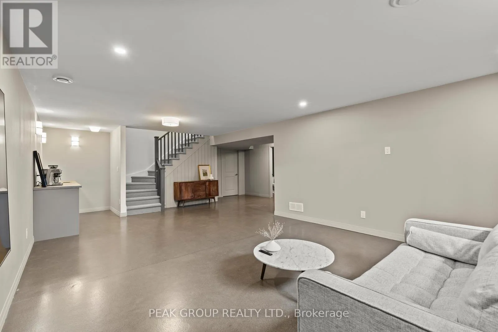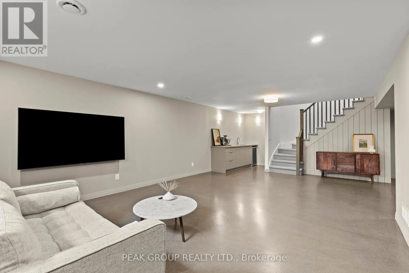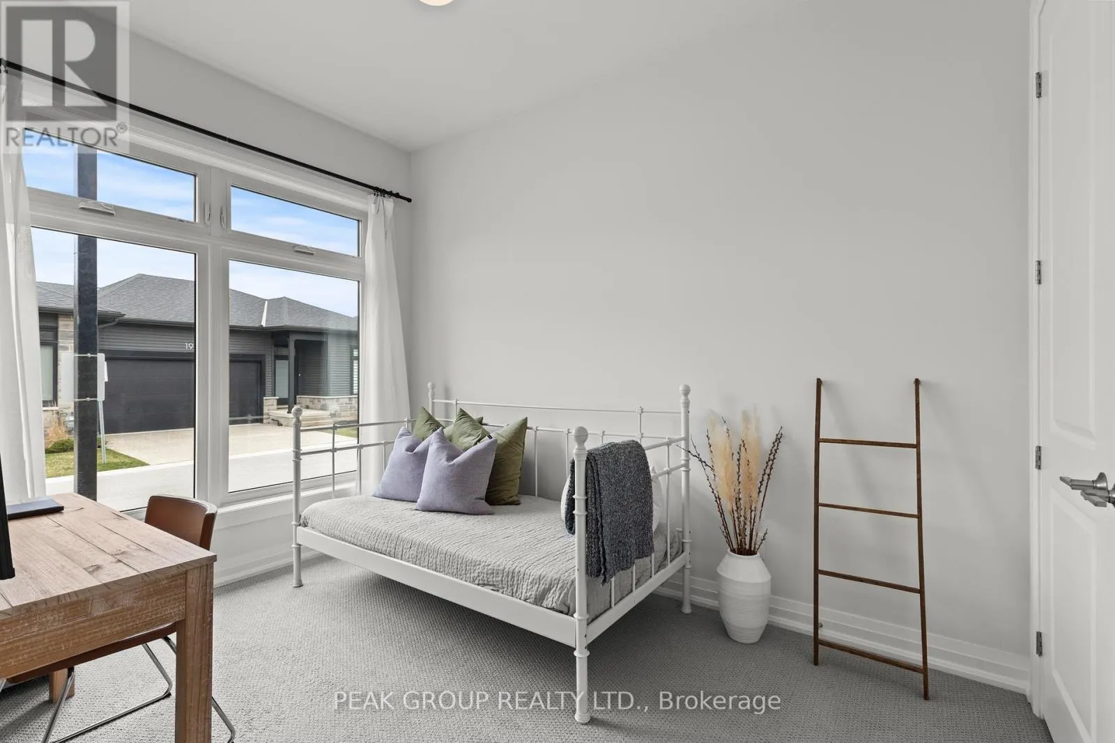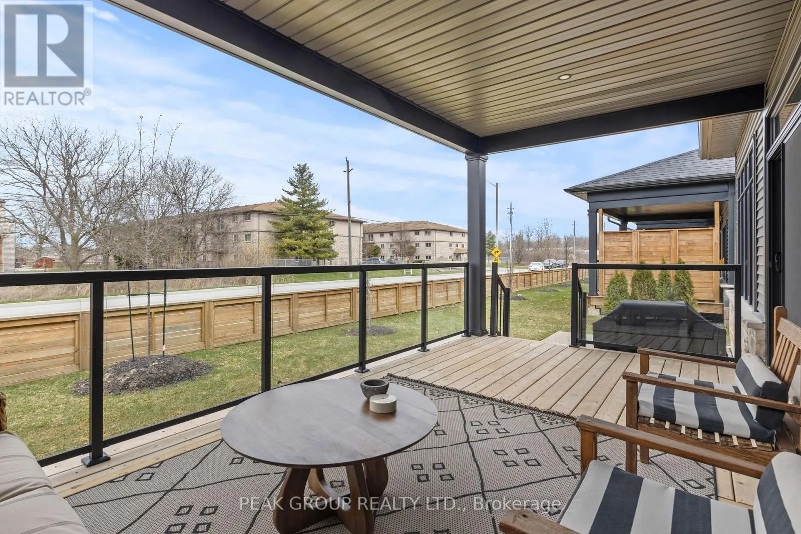 WILLOUGHBY DR AND WEINBRENNER Introducing 8-8974 Willoughby Drive, your dream home just minutes away from the picturesque Niagara Parkway, the renowned Legends Golf Course, and the breathtaking Niagara Falls. This exquisite end-unit bungalow townhome, by the award-winning Silvergate Homes, features three spacious bedrooms and three full bathrooms, along with a fully finished basement and a host of impressive upgrades. As you enter, you are welcomed by bright, airy interiors accentuated by large windows, nine-foot ceilings, and elegant eight-foot doors. The main floor is upgraded with engineered hardwood flooring and luxurious quartz countertops, while the bathrooms impress with designer vanities, exquisite finishes, and beautiful tile selections. The thoughtfully designed kitchen is a chef's delight, offering ample cabinet space, a large island with seating for four, an under-mount sink, a gas range, and soft-close ceiling-height cabinets adorned with high-end stainless steel appliances. The open-concept layout seamlessly connects the kitchen to the great room and dining area, making it an entertainer's paradise. Retreat to the primary bedroom, a luxurious haven complete with a five-piece ensuite featuring a glass shower and a generous walk-in closet. A custom oak railing staircase leads you down to the fully finished basement, which includes a spacious recreation room, custom flooring, an additional bedroom, a modern bathroom with a glass and tile shower, and a stylish custom wet bar with a wine fridge perfect for entertaining and convenience. Storage is abundant, with plenty of closet space, a large unfinished mechanical room, and a cold cellar.Additional highlights of this remarkable townhome include an elegant tile inlay at the entryway, a two car garage with EV rough-in, a complete central vacuum rough-in, main floor laundry, and a main floor walkout to a covered back deck with an upgraded exposed aggregate concrete patio pad perfect for summer barbecues or relaxing with friends and family. (id:27476)