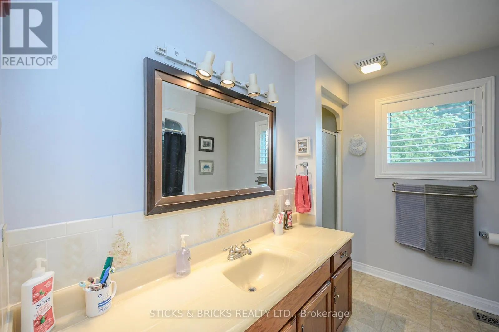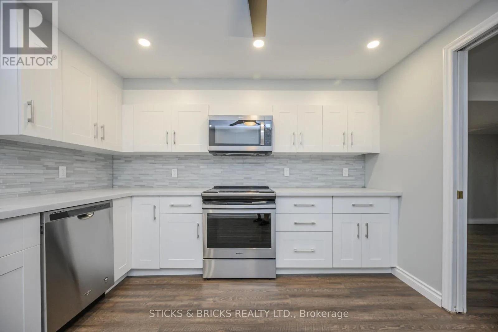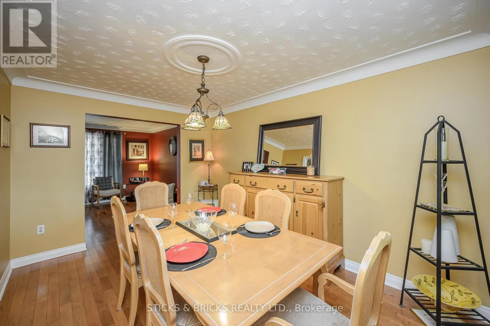 Cross Streets: THOROLD STONE RD AND BURBANK CRES. ** Directions: THOROLD STONE RD TO BURBANK CRES. Welcome to Burbank Crescent! This north end closed circle street offers this Solid Brick Two Storey home with over 3,000 sq. ft. of finished living space. Including a fully finished in law suite on the lower level and a two car garage. The main level has a generous entrance leading to the large, well-appointed kitchen and sunken family room with gas fireplace. You have a formal dining room and big, bright living room, and convenient main floor laundry. The second level offers 3 good sized bedrooms and a 5 pc. bath. The freshly completed in law downstairs offers a bright, newer kitchen with Quartz counters and stainless steel appliances. There's also a bedroom and a spa-like 5 pc. bath with soaker tub, separate glass shower, double sinks and heated flooring to complete the package! Updates to this extremely well cared for home include newer steel roof (2016), newer HVAC, triple wide exposed aggregate driveway, Grohe' Smart water controller, newer windows, and much more. You'll love the large, private backyard with deck and pergola with no rear neighbours. All this in this top north end neighbourhood, close to access to the QEW, top area schools, shopping and more. You know what they say about location, this is it !! (id:27476)