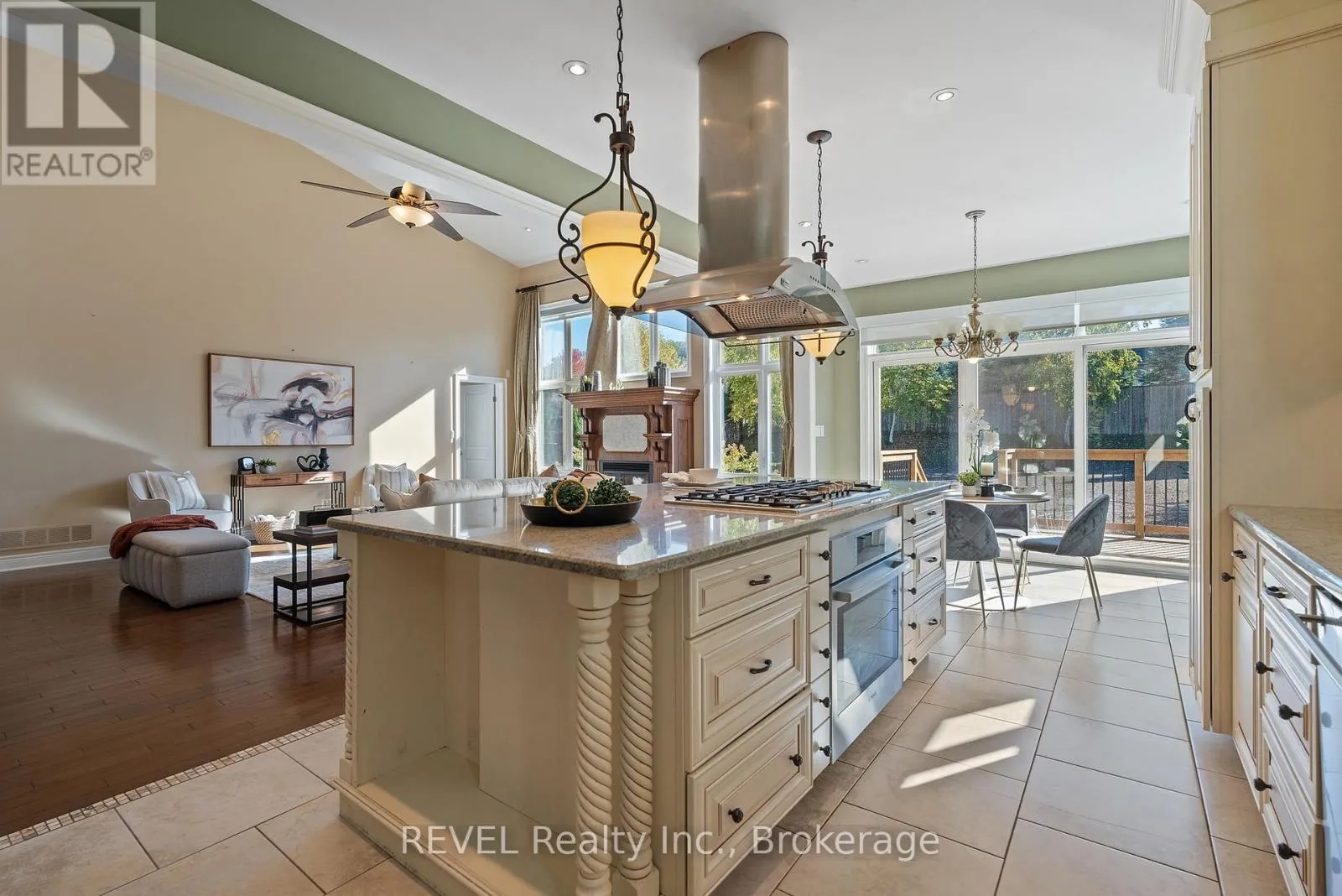 Calaguiro to Domenic Nestled in one of Niagara's most prestigious neighbourhoods, Calaguiro Estates in North-End Niagara Falls, 6718 Domenic Crescent offers an extraordinary residence on a 100 x 193 ft estate-sized lot. With approximately 3,000 sq.ft. of above-grade living space, this custom-built home is designed with sophistication and comfort in mind. The main floor impresses with 20-ft soaring vaulted ceilings, a fireplace, and an open-concept layout that perfectly blends elegance and function. The custom kitchen features granite countertops and ample cabinetry, flowing seamlessly into the bright living and dining areas filled with natural light. The main floor primary suite offers a 5-piece ensuite and walk-in closet, while main floor laundry and a dedicated office add everyday convenience. Upstairs, the open-concept family room overlooks the main level, enhancing the homes spacious, connected feel.The basement features a finished bedroom and a 5-piece bathroom, with plenty of additional space to complete another bedroom, a workout room, and a recreation area. It also offers a walk-up to the backyard. Outside, the expansive, fully fenced yard lined with mature cedars provides exceptional privacy and the potential to create your dream resort-like retreat. Ideally located near the QEW, top schools, and all North-End Niagara Falls amenities, this stunning property embodies luxury living in one of Niagara's most coveted communities. (id:27476)