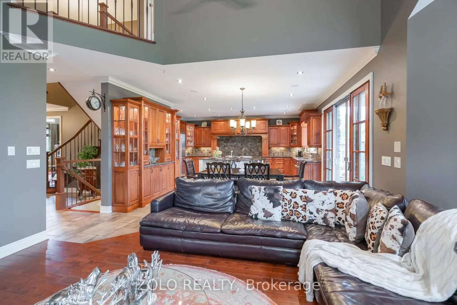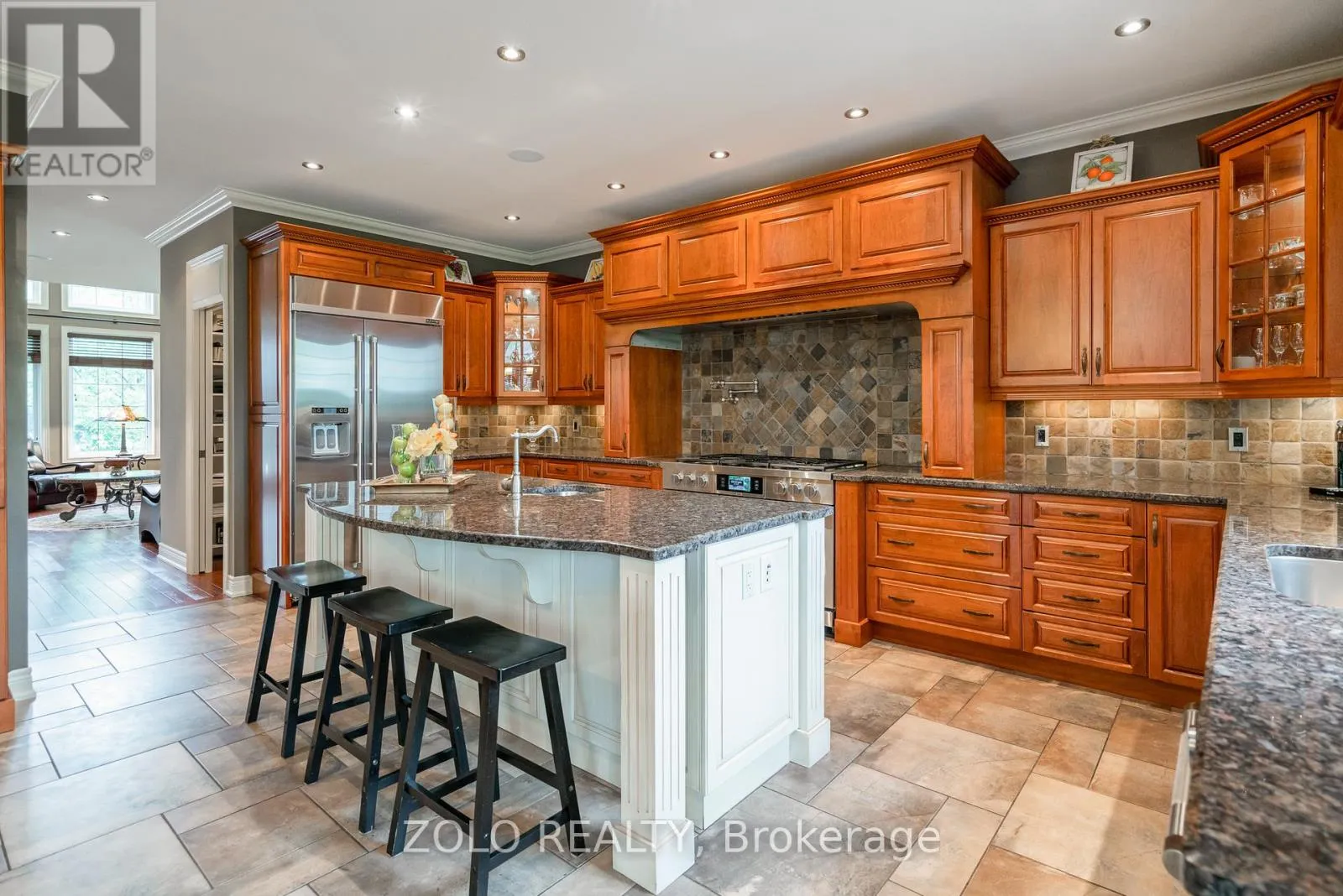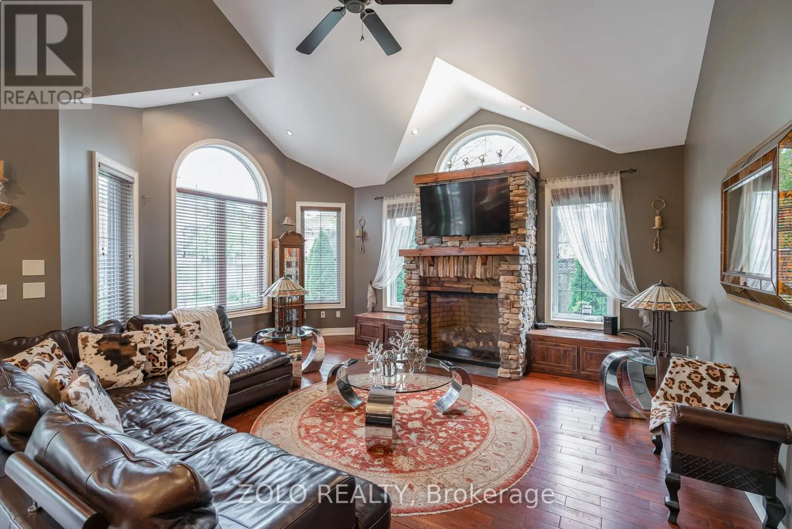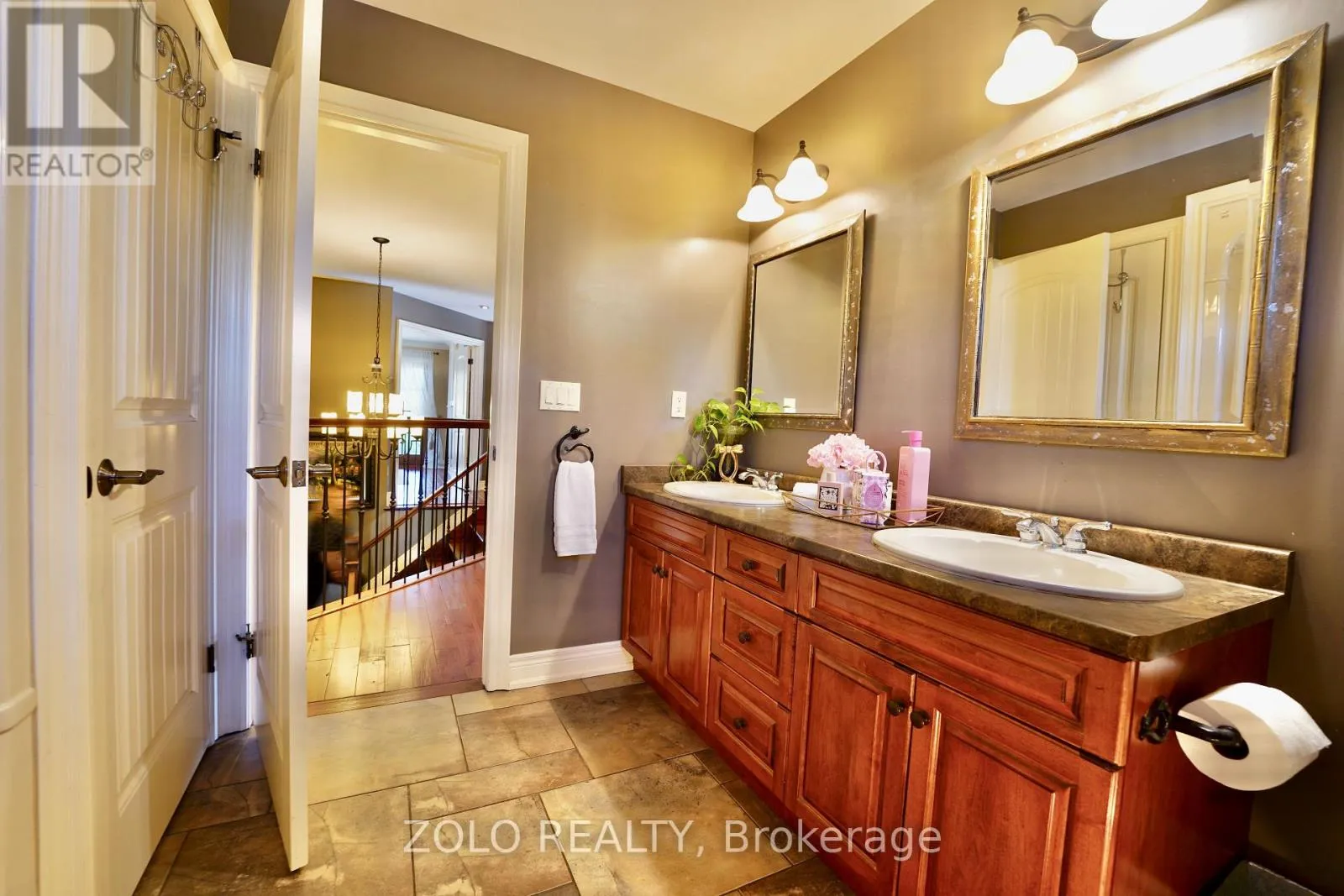 Cross Streets: Lyons Creek Rd & Sodom Rd. ** Directions: Lyons Creek & Lyons Pky. Discover luxury living in this stunning custom built home situated on a private Cul-de-sac. This breathtaking home boasts over 4000 sqft of living space with 5 bedrooms and 4 bathrooms, an oversized concrete driveway and finished walk-out basement with heated floor. The inviting open concept layout seamlessly connects the kitchen to the dining & family room, creating a perfect space for entertaining guests. The chef's kitchen features granite countertops, solid wood cabinetry, premium stainless steel appliances, including a 48" gas range stove, and ample storage with walk-in pantry. The upper level features a generously sized primary bedroom showcasing a large covered balcony, gas fireplace, his/her walk-in closets, and a luxurious 6pc ensuite bathroom. Downstairs, the finished walk-out basement offers two bedrooms, heated floors throughout, and an open concept kitchen with a combined family and dining area. This home is a must-see and many updates have been completed in recent years including: Tankless water heater (2025), A/C (2024), Central vacuum unit (2024), Washing machine (2022), 9 car concrete driveway (2022), Kitchenette in basement (2022) and Furnace (2020) (id:27476)