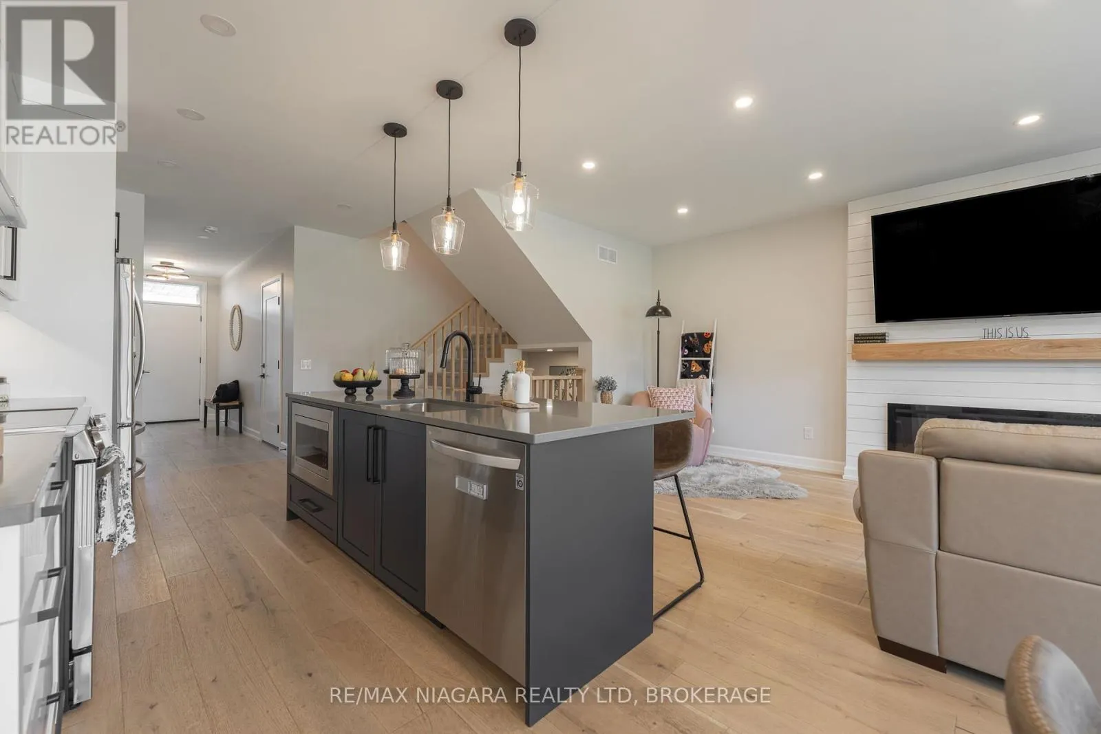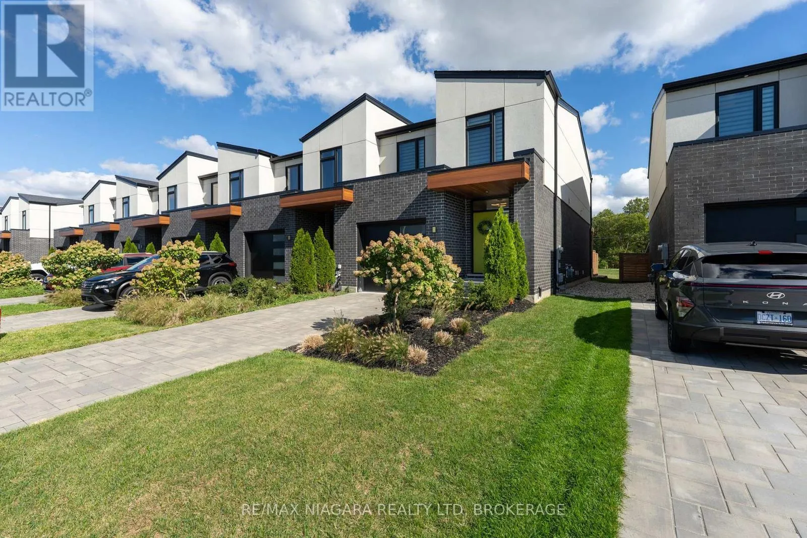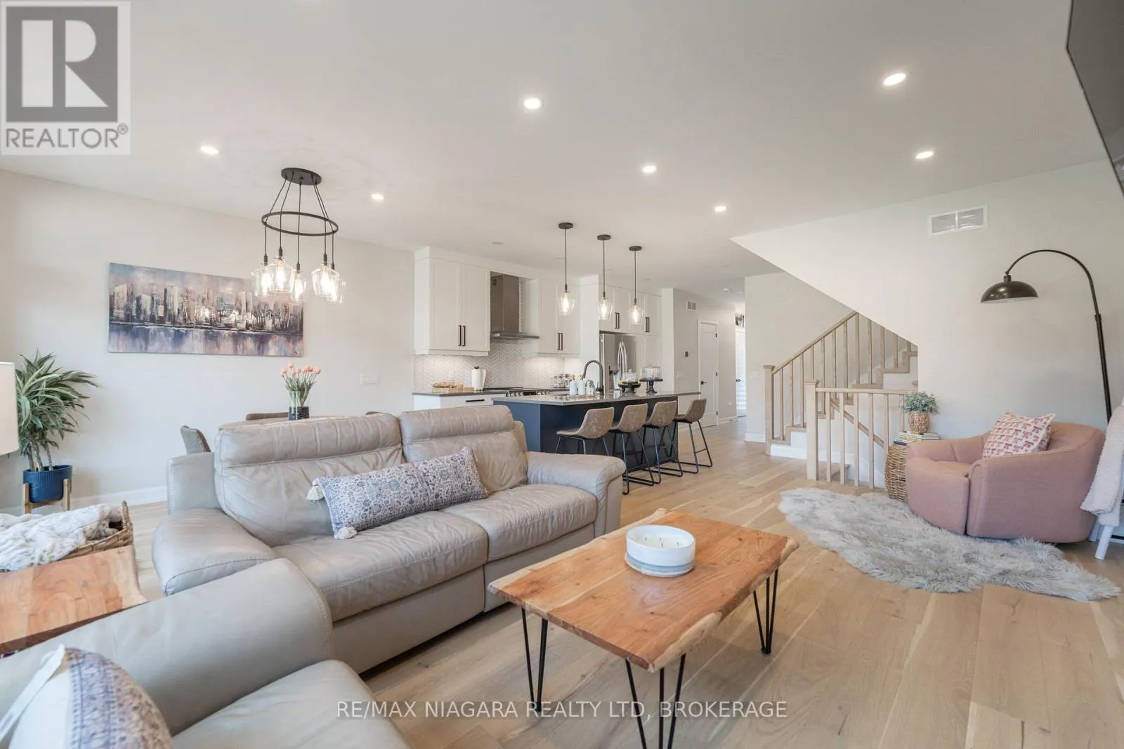 Cross Streets: McLeod Rd & Garner Rd. ** Directions: Head West on McLeod Rd Turn Left onto Matteo Dr. Welcome to 7194 Parsa Street in Niagara Falls, a stunning modern end townhome built in 2022 by Rinaldi Homes, one of the Niagara Regions most reputable builders known for exceptional craftsmanship and contemporary design. This beautifully upgraded home features 3 bedrooms, 2 full bathrooms and 2 half baths, offering a perfect blend of comfort, style and quality. The main floor showcases wide plank ash hardwood flooring, a spacious kitchen with granite countertops, upgraded drawer-style cabinetry, sliding shelving in the tall pantry and a bright living area with a custom shiplap wall and a 60 Napoleon electric fireplace that opens to a covered corrugated back deck. Upstairs features hardwood flooring throughout, a laundry area with added sink and cabinetry, and a primary suite with a large tiled shower, double sinks and glass shower doors. The finished lower level offers a generous family room with an additional powder room, ideal for relaxing or entertaining. Additional upgrades include pot lighting throughout, quartz or Caesarstone countertops, an Ecobee Bluetooth thermostat, tankless water heater and sump pump. Located just off McLeod Road near shopping, schools and highway access, this home is a perfect example of modern Niagara living at its finest. (id:27476)