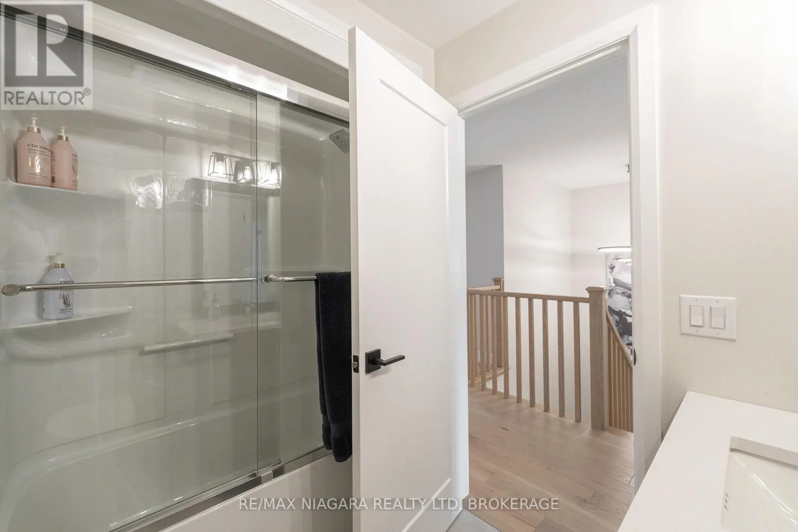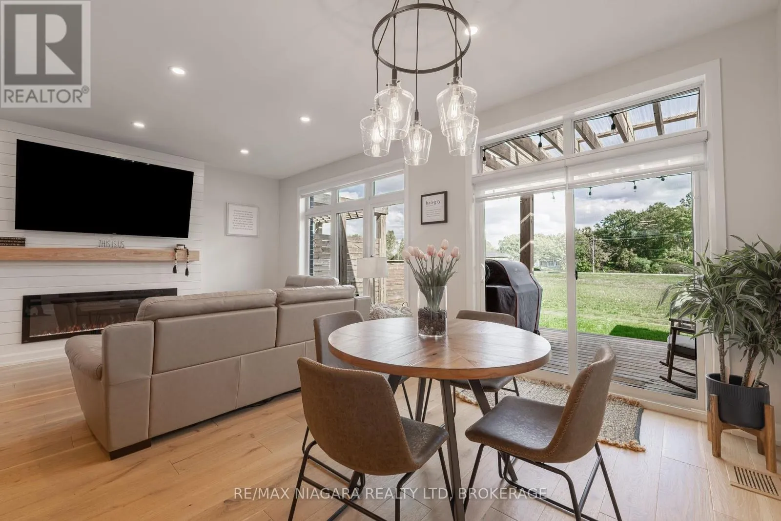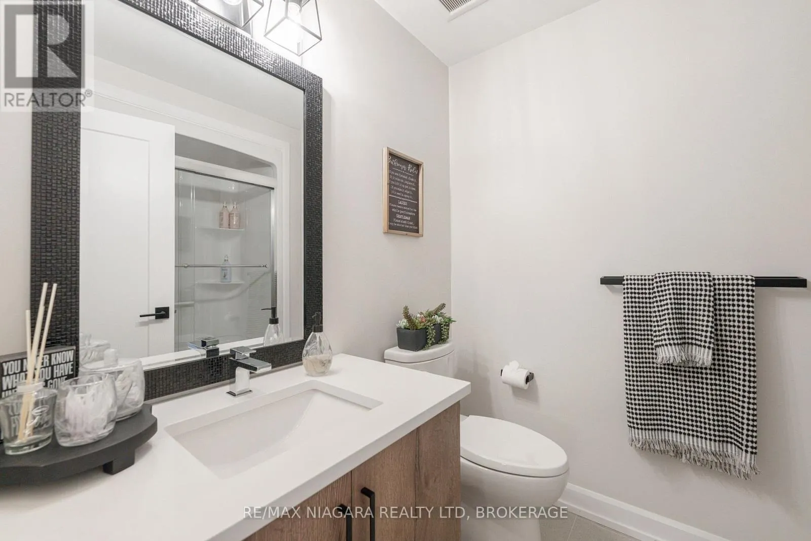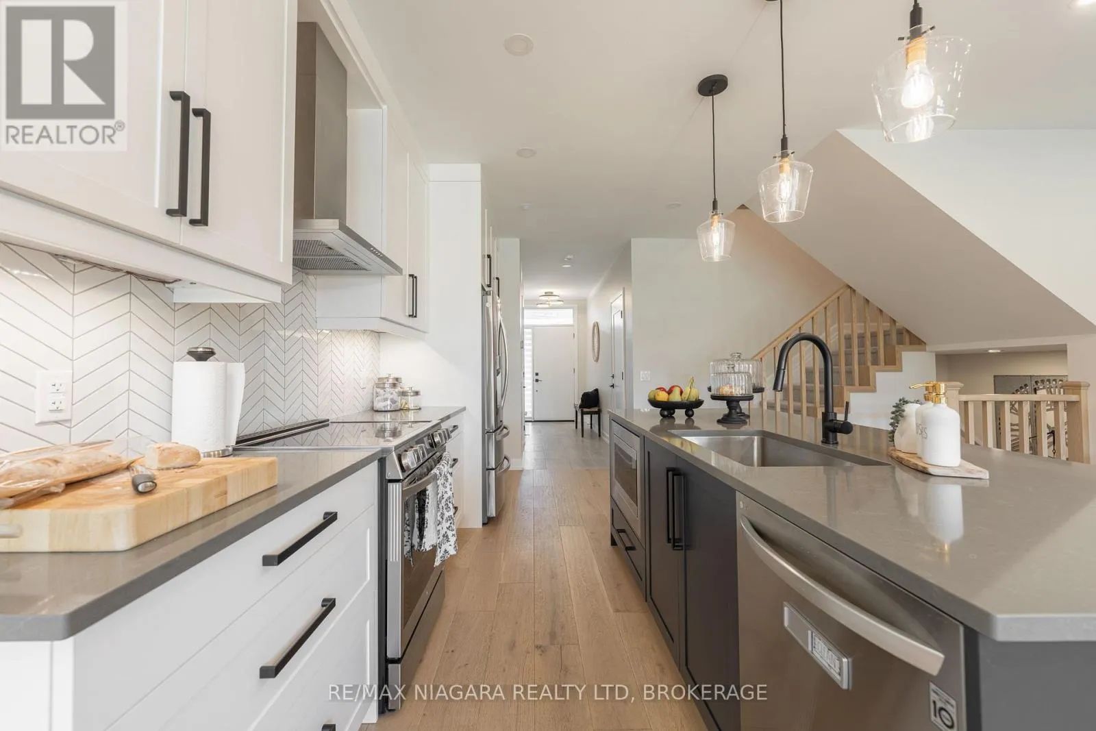 Cross Streets: McLeod Rd & Garner Rd. ** Directions: Head West on McLeod Rd Turn Left onto Matteo Dr. Welcome to 7194 Parsa Street in Niagara Falls, a stunning modern end townhome built in 2022 by Rinaldi Homes, one of the Niagara Regions most reputable builders known for exceptional craftsmanship and contemporary design. This beautifully upgraded home features 3 bedrooms, 2 full bathrooms and 2 half baths, offering a perfect blend of comfort, style and quality. The main floor showcases wide plank ash hardwood flooring, a spacious kitchen with granite countertops, upgraded drawer-style cabinetry, sliding shelving in the tall pantry and a bright living area with a custom shiplap wall and a 60 Napoleon electric fireplace that opens to a covered corrugated back deck. Upstairs features hardwood flooring throughout, a laundry area with added sink and cabinetry, and a primary suite with a large tiled shower, double sinks and glass shower doors. The finished lower level offers a generous family room with an additional powder room, ideal for relaxing or entertaining. Additional upgrades include pot lighting throughout, quartz or Caesarstone countertops, an Ecobee Bluetooth thermostat, tankless water heater and sump pump. Located just off McLeod Road near shopping, schools and highway access, this home is a perfect example of modern Niagara living at its finest. (id:27476)