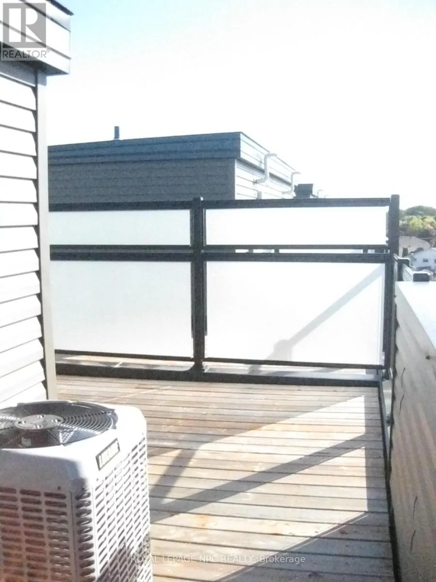Cross Streets: Dorchester Road & Morrison. ** Directions: Dorchester Road, turn onto Cropp Street. At stop sign (University Avenue), turn left. The Cannery District was designed to offer new, stylish living in the heart of Niagara. An amazing opportunity to rent this brand new upper Stacked Townhome with roof terrace. Open concept floorplan, bright kitchen, quartz counter tops throughout, featuring a combination living/dining room, convenient 2 pc washroom, vinyl plank flooring, air conditioner and 2 bedrooms, both containing a 4 piece washroom. Fridge, stove, dishwasher, stackable washer and dryer, window coverings to be installed, in-suite laundry, expansive 352 sq. ft. of intimate and private roof terrace, perfect for entertaining. The tenant is responsible for snow removal on the stairs and walkway in front of their designated parking spot. First and last month's rent, rental application, TransUnion credit report, proof of income, photo of Driver's Licence, letter of employment, references and 2 most current pay stubs. $2,195 per month plus utilities, rental hot water heater and $100 refundable key deposit. (id:27476)