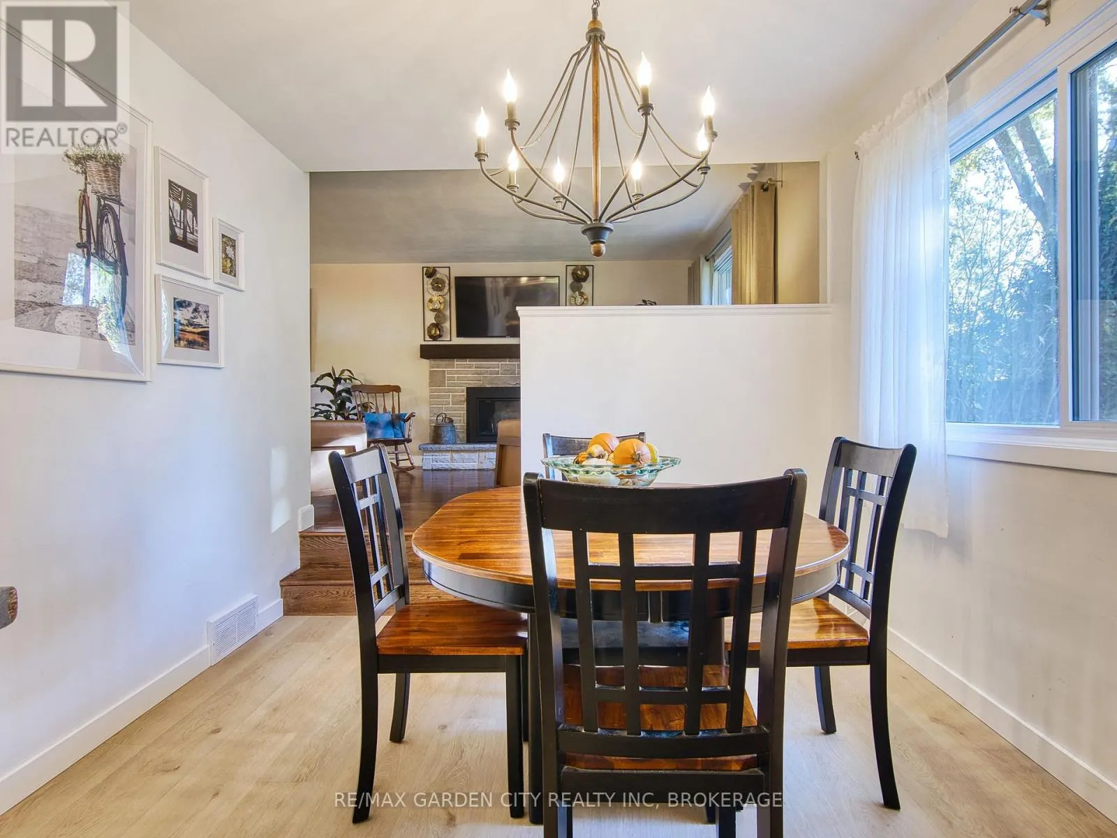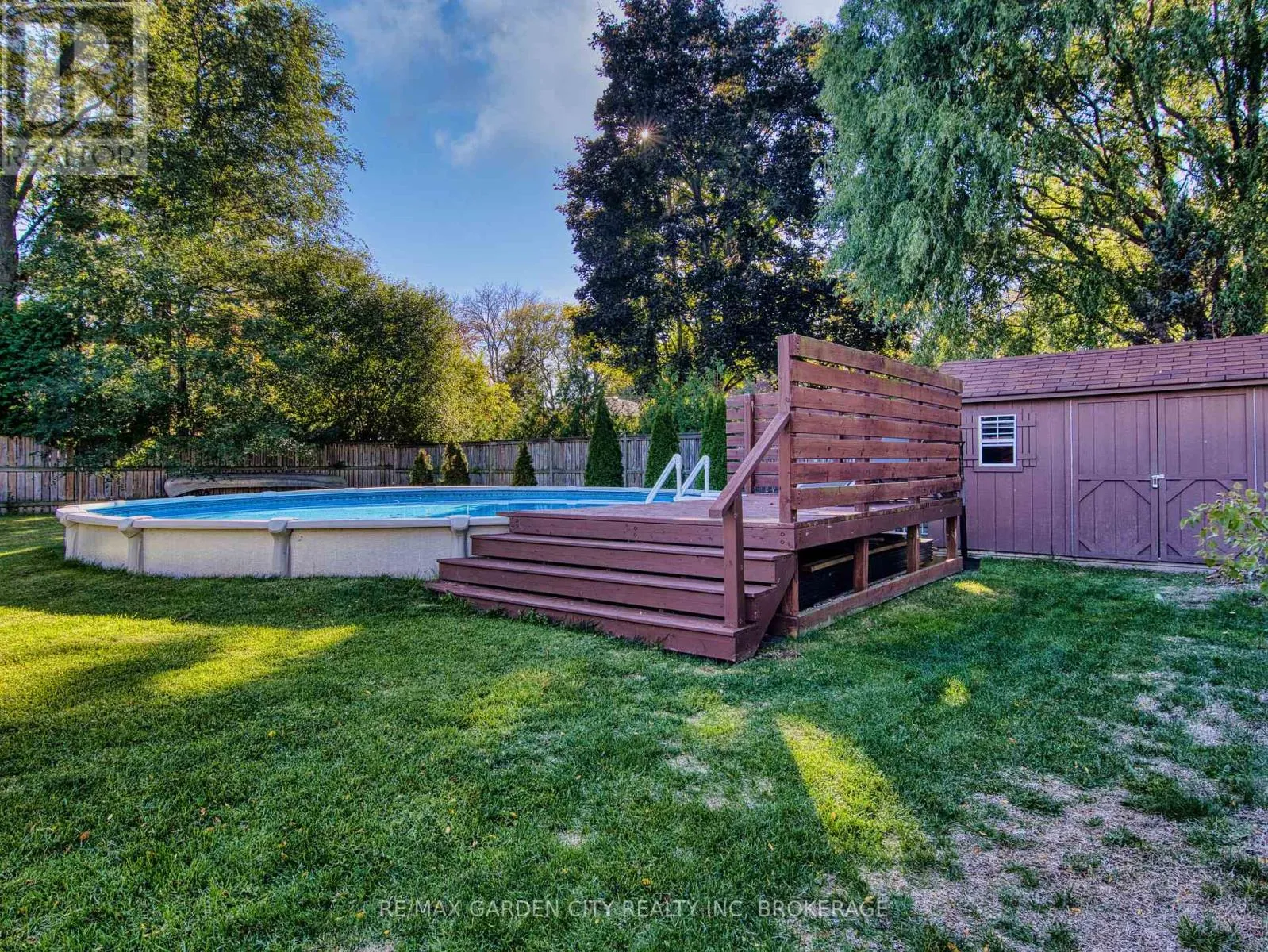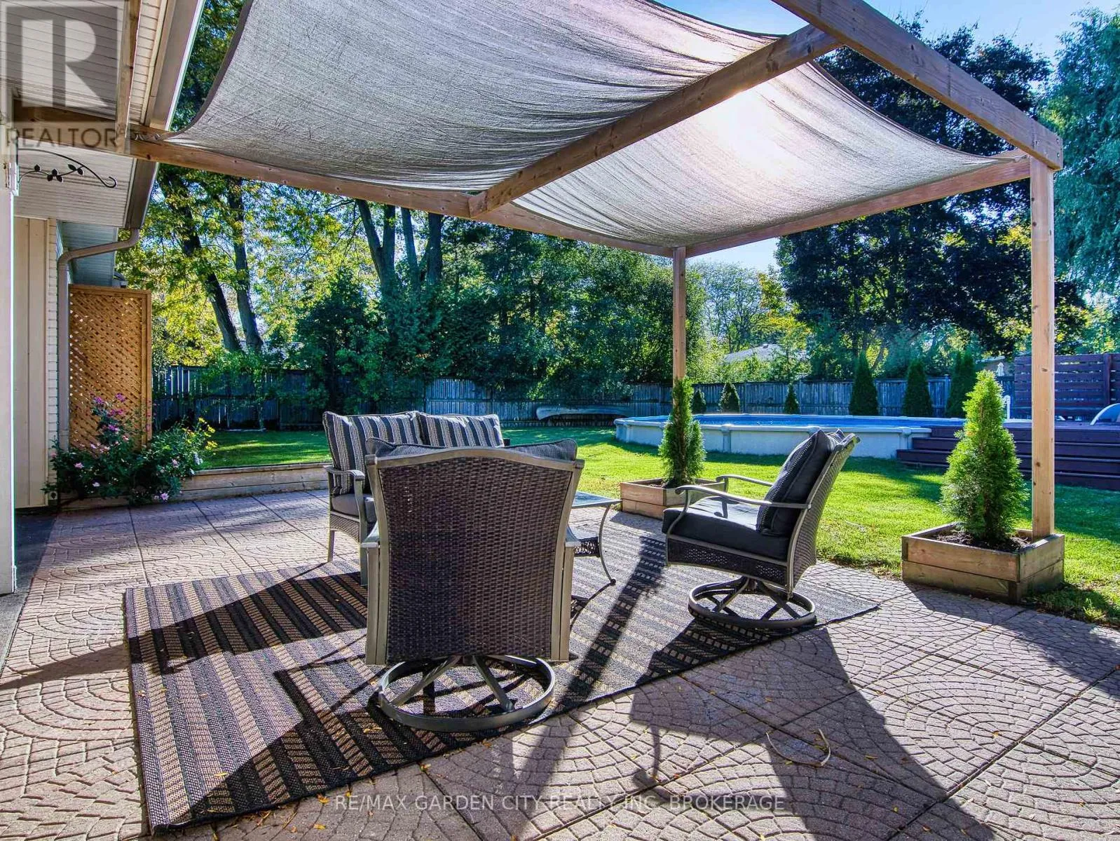 Cross Streets: Dorchester Rd & Thorold Stone RD. ** Directions: North of Thorold Stone Rd, West of Dorchester. Desired Rolling Acres area. Walk to your choice of schools, park, minutes to the QEW for the commuter and all amenities. Solid, spotless, 3+1 bedroom brick family home with attached double car garage and paved, double private driveway. Fully fenced, large backyard with covered concrete patio/BBQ area overlooking the sunken above ground pool and deck. Garden shed, landscaped. Covered tiled front porch entryway to foyer. Great floor plan with oversized, bright replacement windows throughout. Inviting hardwood floored living room with gas fireplace, large, formal dining room. Open concept dinette, kitchen with walkout to backyard. Redone 3 piece bathroom with spacious walk-in shower plus a newer 4 piece bathroom upstairs. 3 bedrooms and a walk-in pantry. Comfortable, cozy rec room, high ceilings and pot lights. 4th bedroom, laundry room, storage room, 8 year new FAG furnace and CA unit. 200-amp breakers having enough power for that backyard hot tub you've always dreamed of. Start or move your family into a neighbourhood where you can leave your doors unlocked! This is it! (id:27476)